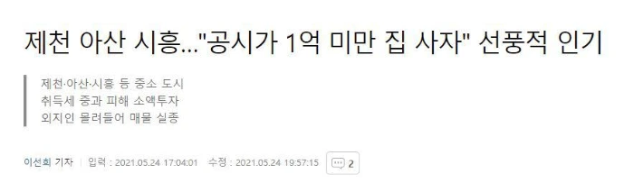 이렇게 갭 가격도 적고, 매매에 필요한 부수비용도 적은 공시지가 1억 원 주택. 접근하기에 큰 부담은 없어 보입니다. 실제로 많은 투자자들은 이미 공시지가 1억 원 미만 주택을 사들였고, 지금 이 순간에도 공시지가 1억 원 미만 주택들은 많은 사람들의 관심을 받고 있고, 뉴스와 유튜브 등에도 자주 언급됩니다.