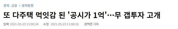 제목 : 공시지가 1억 원 미만 주택 추가 매수 (다주택자의 길)