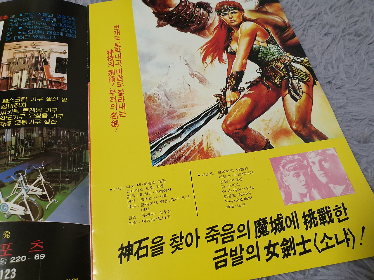 <레드 소냐>는 81년도 작품인 <코난>의 히트로 시작되어 쏟아져 나온 판타지 시대의 영웅물의 끝자락에 만들어진 85년 작품이다. 신인이었던 '브리짓 닐슨'이 주연으로 데뷔했지만, 당시 <코난 - 바바리안>을 시작으로 <터미네이터 2>로 인기를 한껏 끌어올린 '아놀드 슈왈제네거'가 주연의 한 축을 맡고 신인인 '브리짓 닐슨'이 주연으로 데뷔했었다. 흥행에 참패했기 때문에 잘 알려지지는 않았지만 극장에서 봤을 때 그렇게까지 나쁘지는 않았다는 생각을 했었던 기억이 어렴풋이 난다.