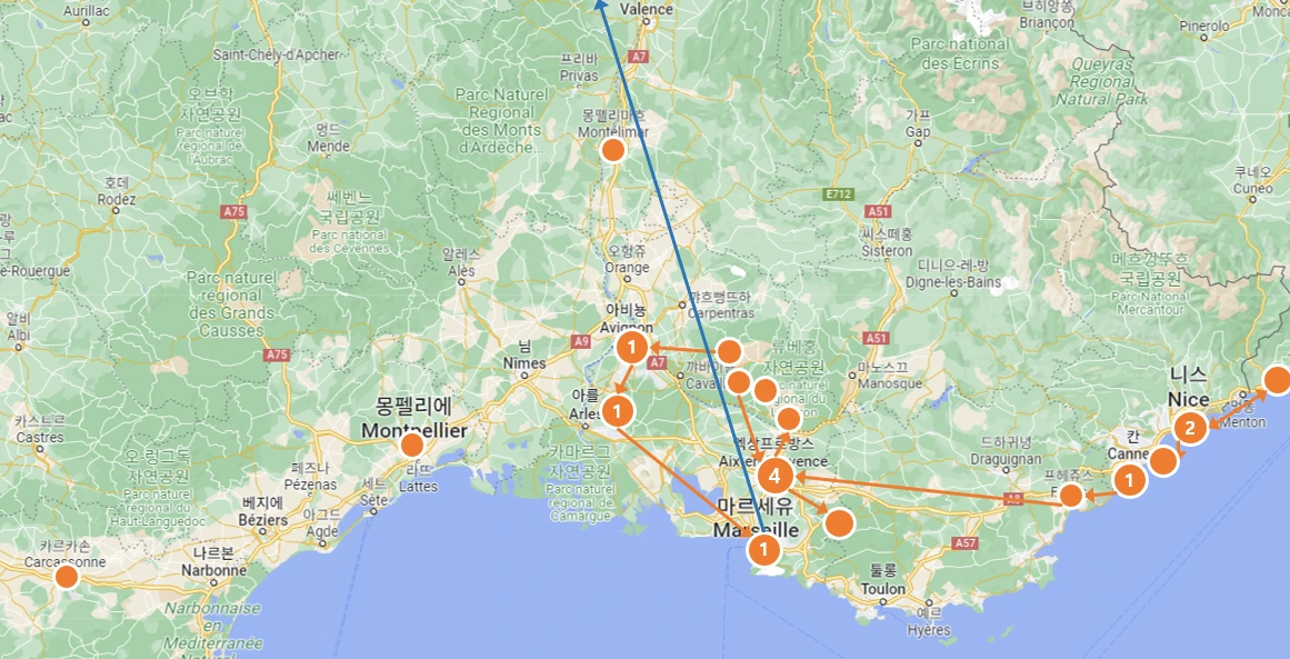 내 맘속의 가고 싶은 여행지의 위쪽에 프랑스 소도시들이 자리하고 있다. 따스한 햇살과 함께 느껴지는 소도시의 아름다운 풍경이 마음 속으로 들어온 건 꽤 오래전 부터다. 프랑스 남부 소도시들을 소개한 책들을 구매해서 읽으면서 가고 싶은 도시들을 고르고, 꿈꾸고 여행 루트를 그렸다.
