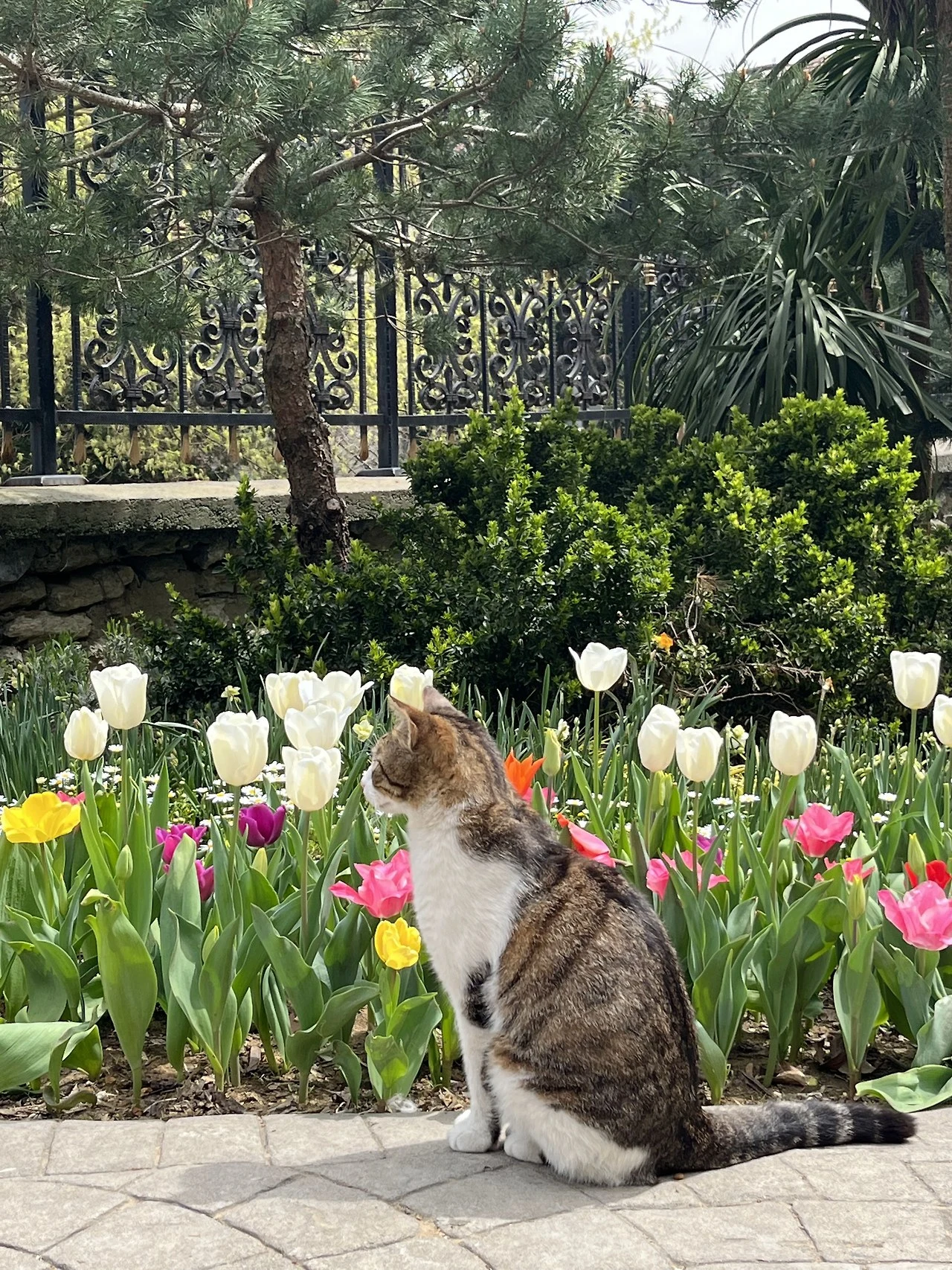 그렇다면 튀르키예에 봄이 없느냐, 있다. 우중충한 이스탄불의 겨울 장막을 걷어내고 화려한 색색의 튤립들이 이스탄불 곳곳을 물들인다. 따스한 날씨에 꽃나들이 온 사람들 틈엔 봄볕을 쬐러 나온 고양이도 있다.