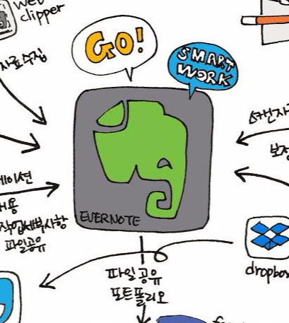 에버노트는 소스와 아이디어가 모이고, 일한 결과를 쌓아두고, 자료를 공유하는 허브(hub)역할을 하고 있습니다.