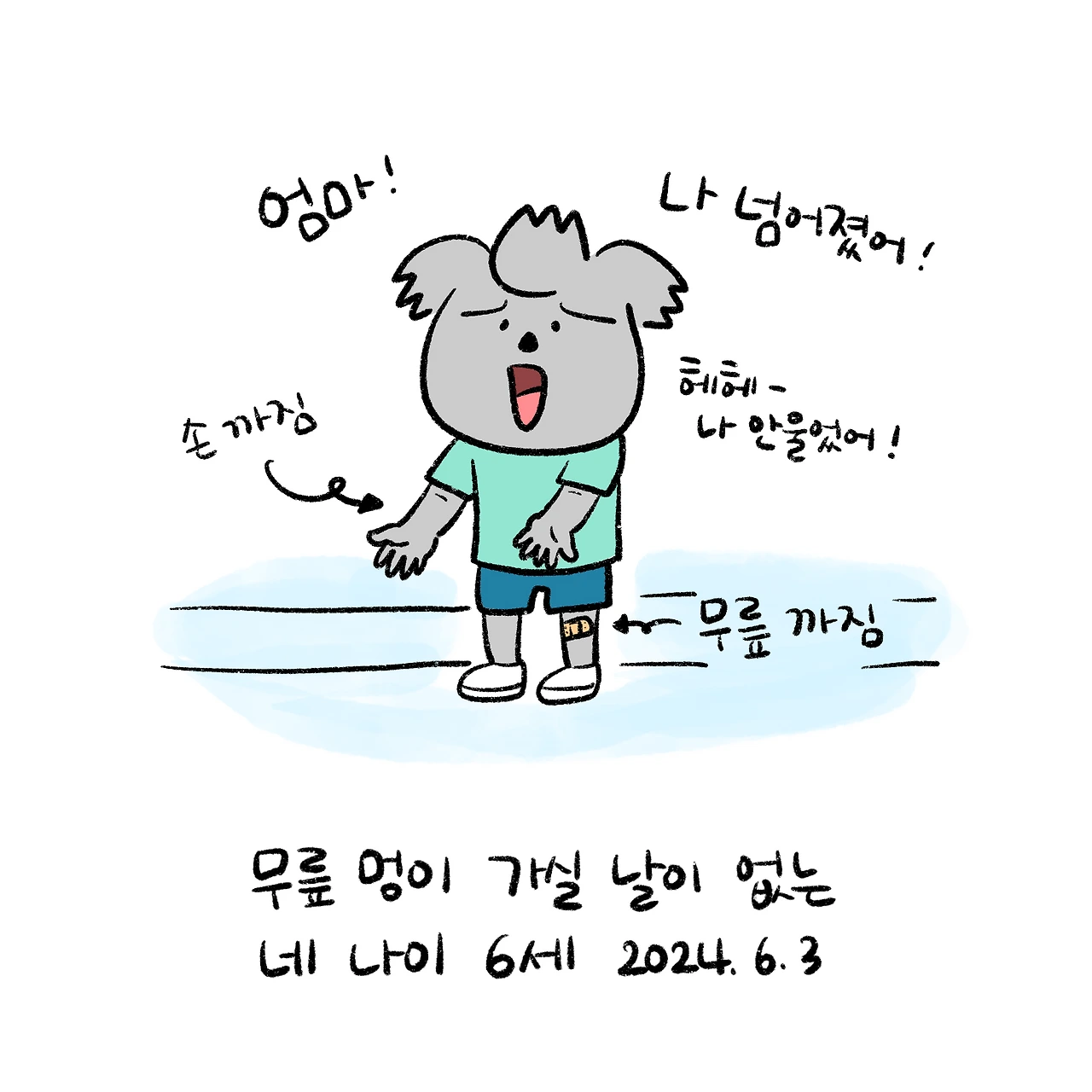 “아이들이 이제 몸을 잘 움직이면서 오히려 자주 다치게 됩니다. 손이나 무릎이 까져서 가더라도 너무 놀라지마세요. 자라는 과정이라고 보아주세요…”