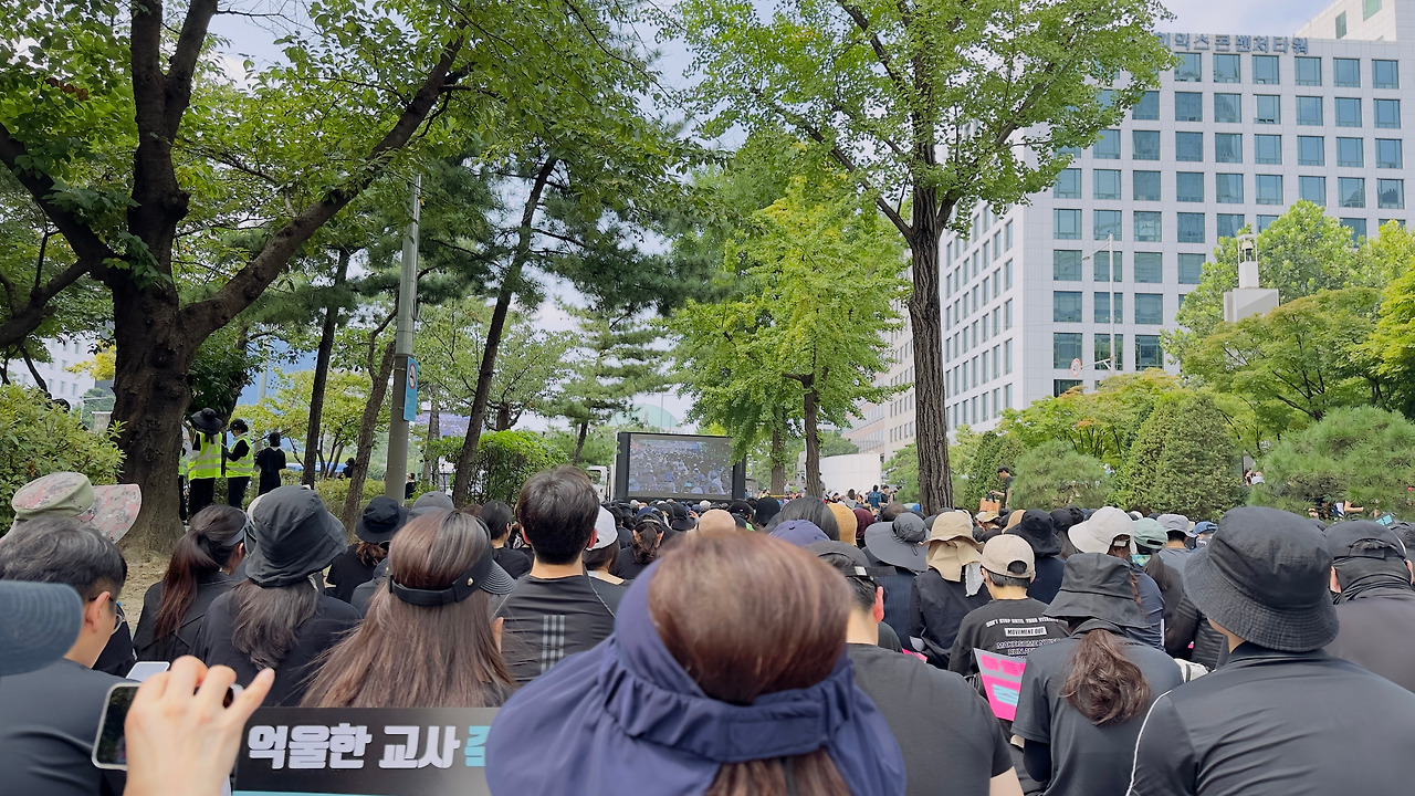 그 뜨거운 도로에 5만 명의 선생님이 앉아 한 목소리로 연대하며 우리의 일자리를 지켜달라고 소리쳤다