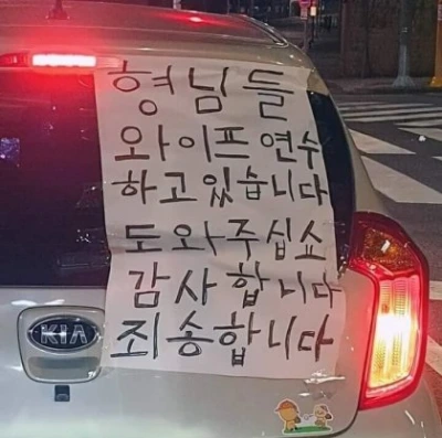 특히나 새싹들에게는 절박함이 중요한데, 결과적으로 내가 '주행연습 일단죄송합니다'를 A4에 써 붙이고 도로 위를 절면서 기어 다녔을 때 약 90%의 선배님들이 내 앞뒤로 끼어주지 않으시거나, 나를 피해주시거나, 차간 거리를 과하게 충분하게 달려주시거나, 크락션을 덜 울려 주셨다. 당연하게도 내 운전 실력에 단단히 화나신 선배님들이 종종 크락션을 때릴 때도 있다. 일단 '아 내가 잘못했구나'를 깨닫고 당황하거나 놀라지 말고 세모 모양 깜빡이를 눌러 죄송한 마음을 전하도록 하자.
