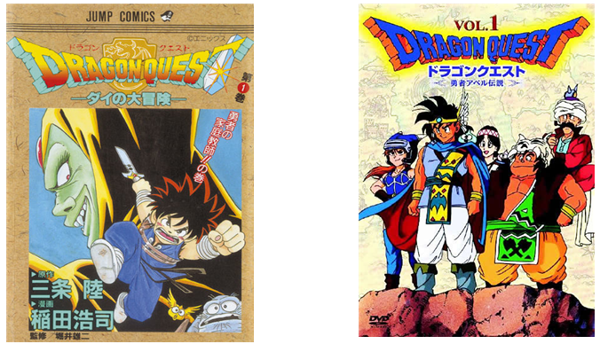 다이의 대모험(좌)과 아벨탐험대(우). 두 작품 모두 드래곤 퀘스트 게임이 원작이다.WRPG와 JRPG를 구분하는 가장 핵심적인 차이는 캐릭터라고 볼 수 있다. 드래곤 퀘스트는 게임 특성상 소년 만화와 애니메이션의 영향력을 많이 받았다. 초기작부터 드래곤 퀘스트의 일러스트를 맡은 사람이 <드래곤볼>, <닥터 슬럼프>와 같은 명작 만화로 히트를 치며 당대 최고의 주가를 올리고 있었던 만화가 토리야마 아키라였다는 점은 JRPG가 만화에 영향력을 받았다는 결정적인 근거다. 드래곤 퀘스트 자체도 시리즈가 거듭되면서 드래곤 퀘스트의 설정을 원작으로 하여 <다이의 대모험>각4), <아벨탐험대>와 같은 명작 만화가 탄생하기도 했다. JRPG는 소년 만화와 상호 간 영향력을 주고받았던 것이다. <드래곤볼>이라는 만화를 생각할 때 제목인 드래곤볼보다도 손오공과 베지터를 먼저 떠올리듯이, 만화에서 가장 중요한 요소는 캐릭터다. 드래곤 퀘스트 역시도 수많은 인기 캐릭터를 만들어냈으며 드래곤 퀘스트에서 매우 큰 비중을 차지하게 됐다. 그만큼 캐릭터성이라는 요소는 JRPG에서 결코 빼놓을 수 없는 중요한 요소다.