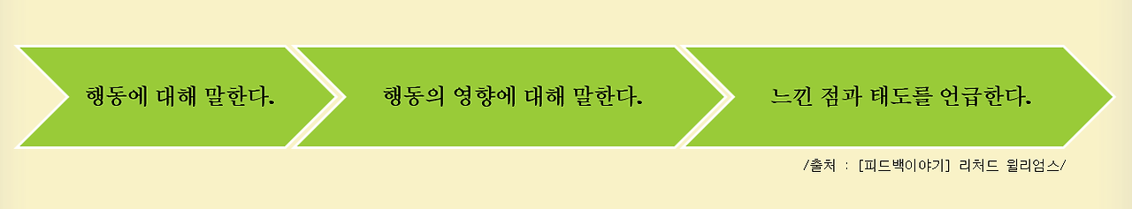 위 내용은 아래의 단계 중 3단계만 적용한 교정적인 피드백이다. 만약, 3단계에서도 개선의 의지가 보이지 않는다면 좀 더 단호하게 마지막 단계까지 적용하면 된다.
