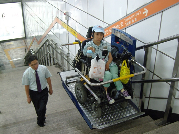 80년대는 희망의 시대였다. 1기 지하철, 올림픽대로, 잠실 경기장, 예술의 전당 등 서울시민이 애용하는 굵직굵직한 시설들은 그때 모두 지어졌다. 그중 지하철 2호선 개통 영상을 보면 에어컨과 공중전화, 에스컬레이터 등 시민을 배려하여 수많은 시설을 설치했다는 내용이 나온다. 시민을 위한 친절함이 느껴지는가? 그런데 1980년대의 시청역과 2019년의 시청역이 다른 것 한 가지가 눈에 띈다. 영상에서는 엘리베이터를 전혀 찾아볼 수 없었다. 이대역에 아름다운 조명을 설치하고 타일로 마감한 예술적인 벽화를 설치했다는 자랑은 담겨 있어도, 시민의 편의를 위한 엘리베이터를 설치했다는 이야기는 전혀 등장하지 않는다. 옛날이라고 휠체어를 탄 장애인이 없었을 리도 없을 터인데, 엘리베이터를 설치하지 않은 것이 지금의 입장으로는 이해가 가지 않는다. 물론 건설비를 아껴야 했을 수도 있다. 그럼 그동안 장애인들은 어떻게 지하철을 탔을까? 아마 못 탔을 것이다.