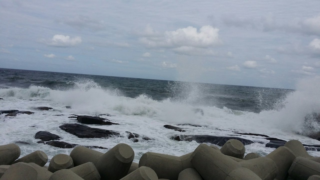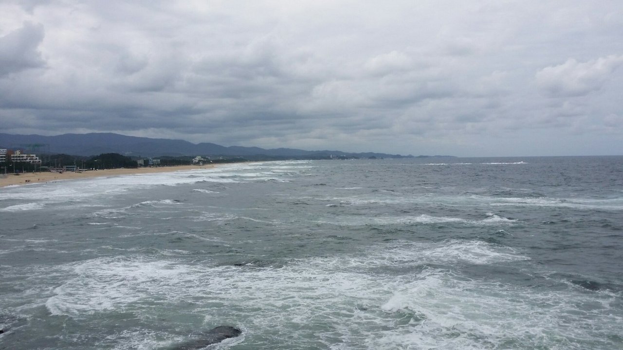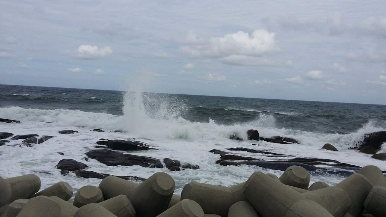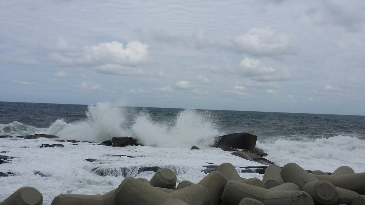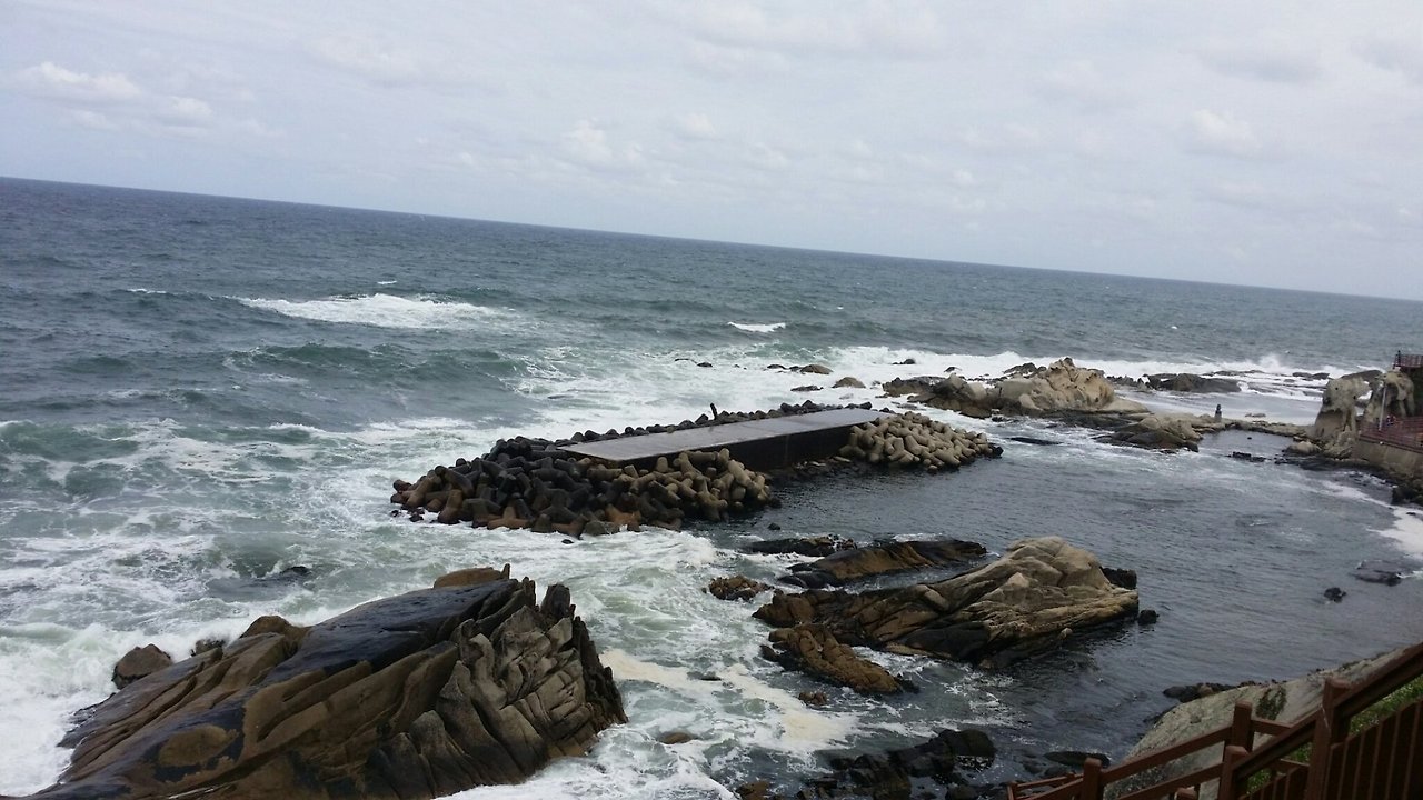 두 번째 파도는 중간의 갯바위에 부딪혀 쓰러지고