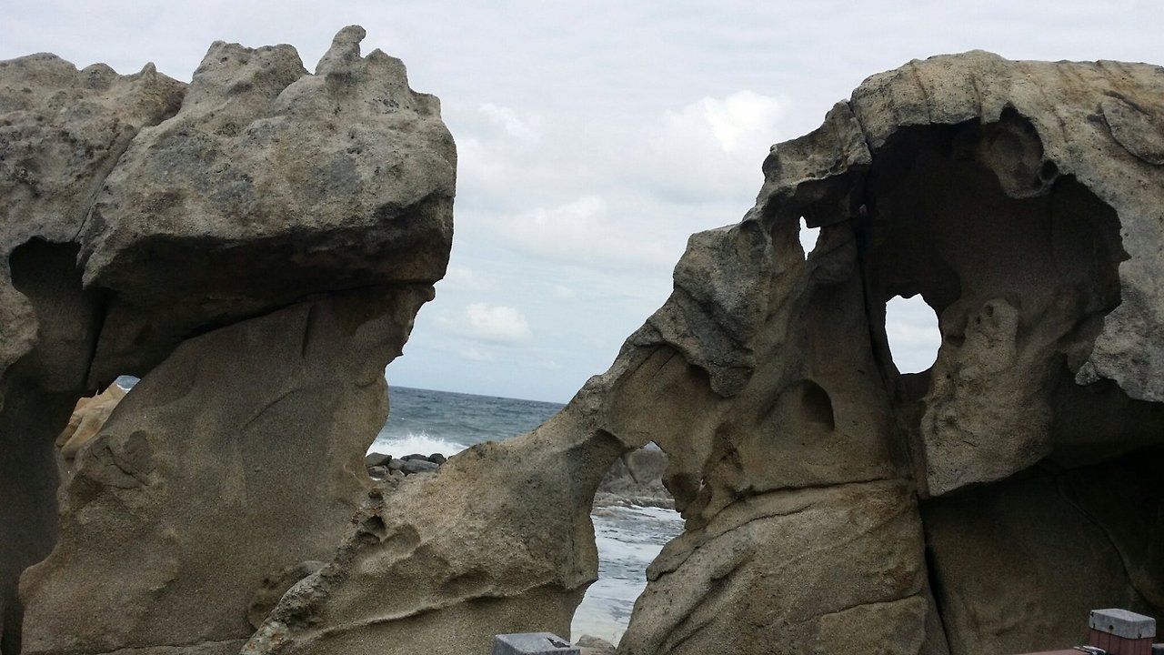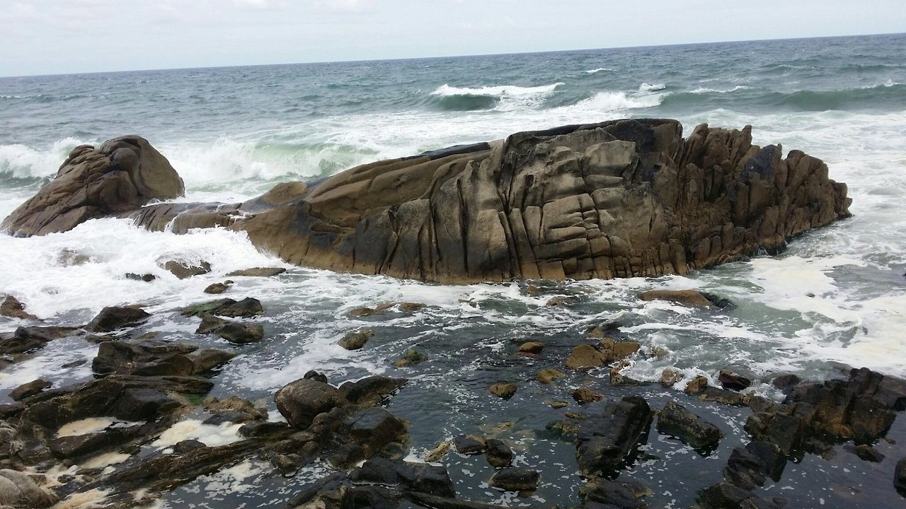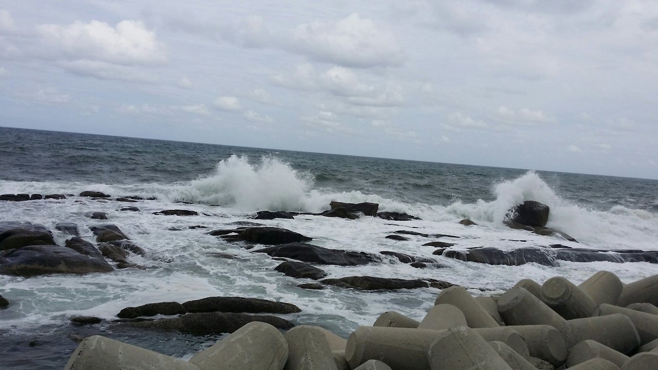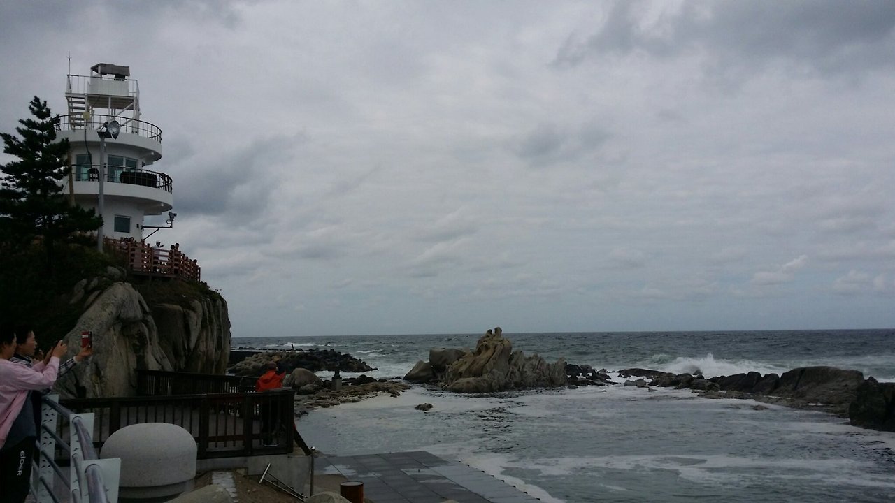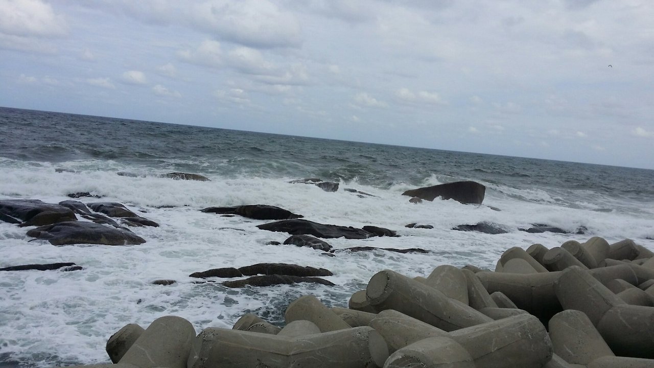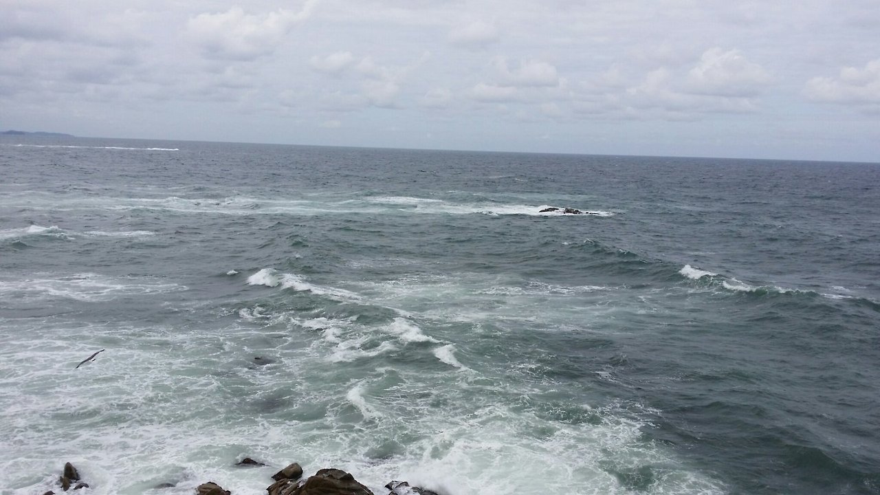 두 번째 파도는 중간의 갯바위에 부딪혀 쓰러지고