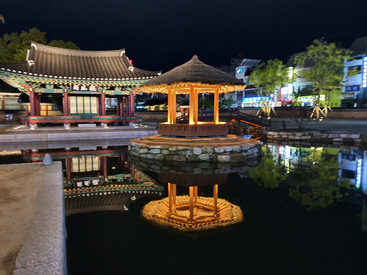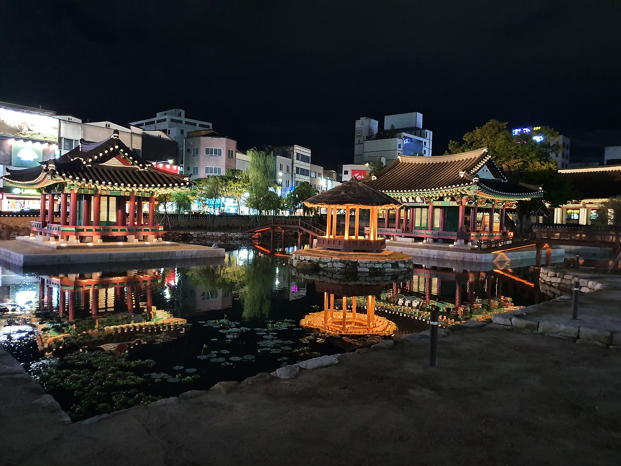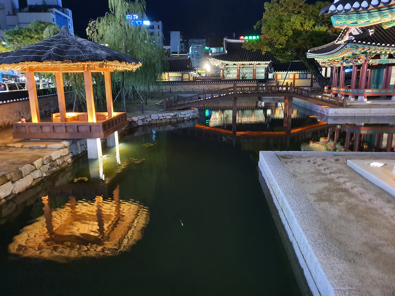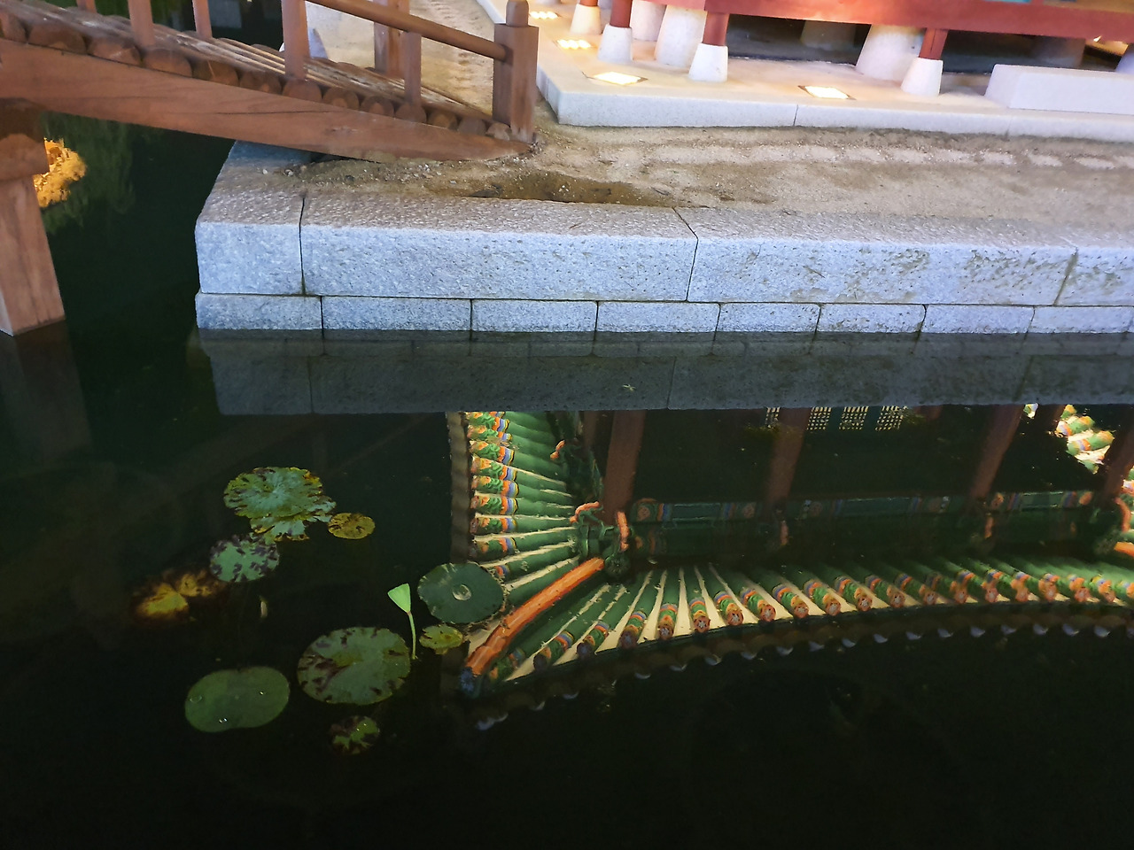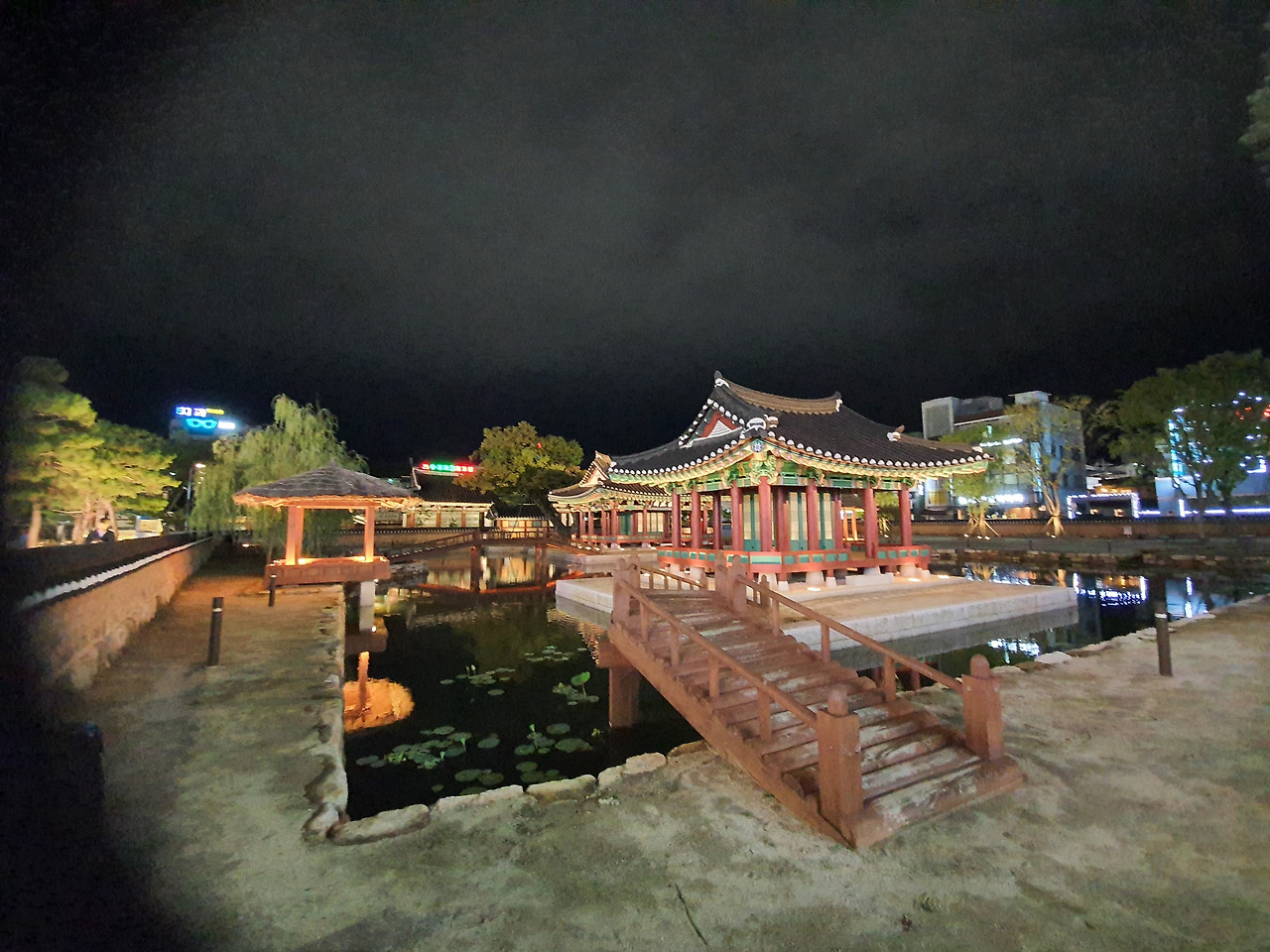 방지 연못가 월영에 드리운