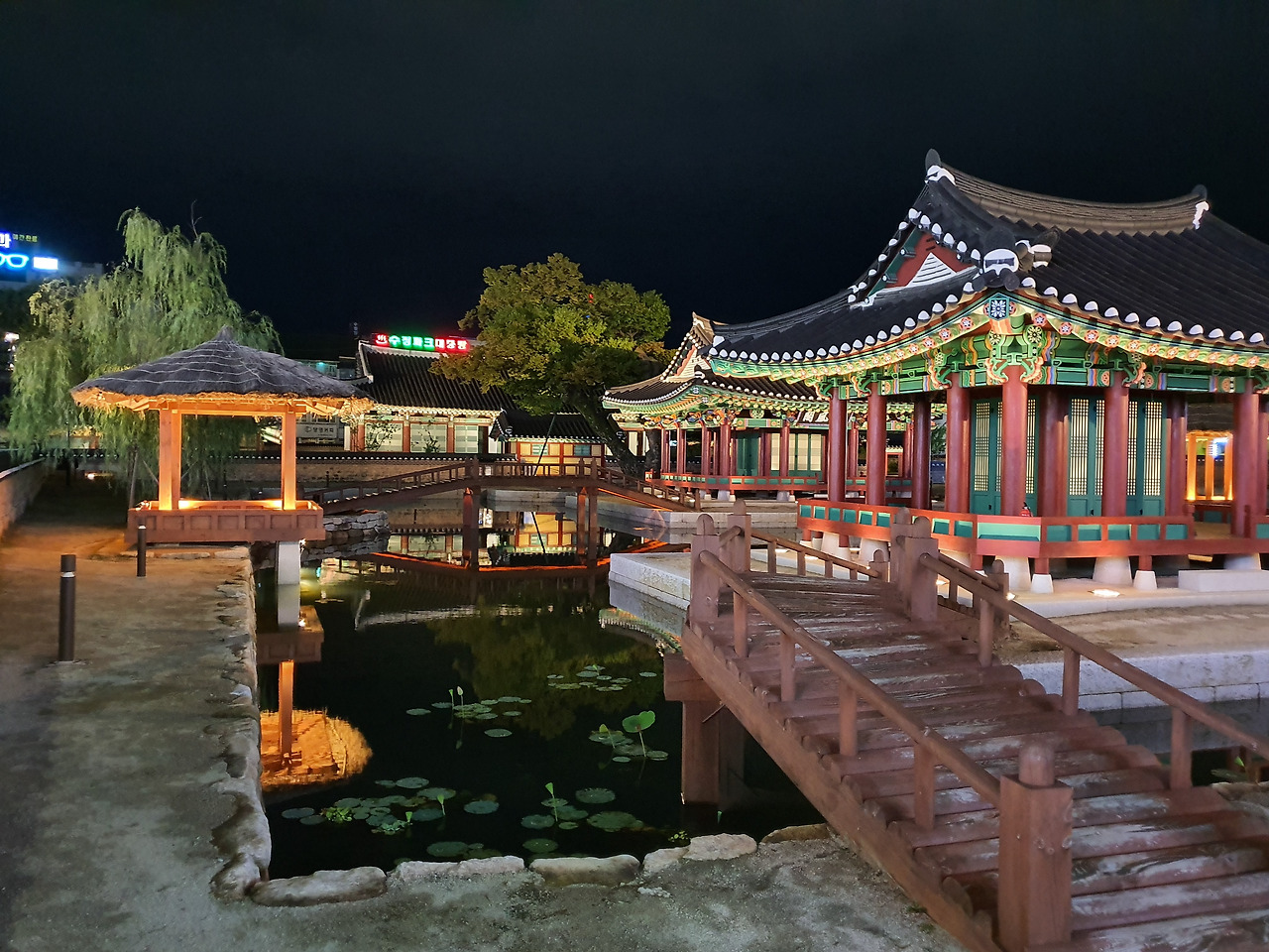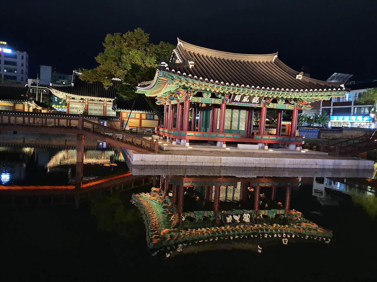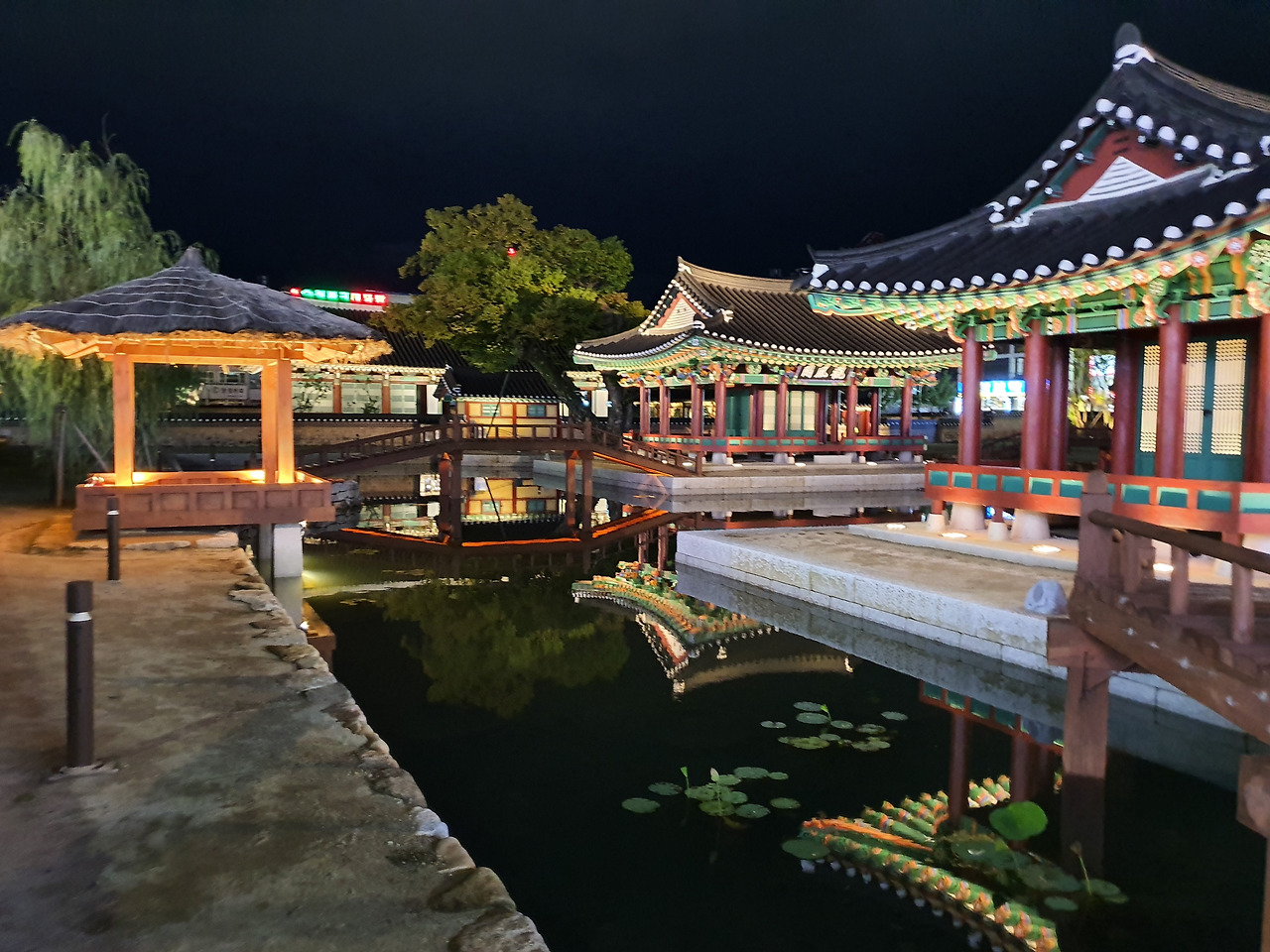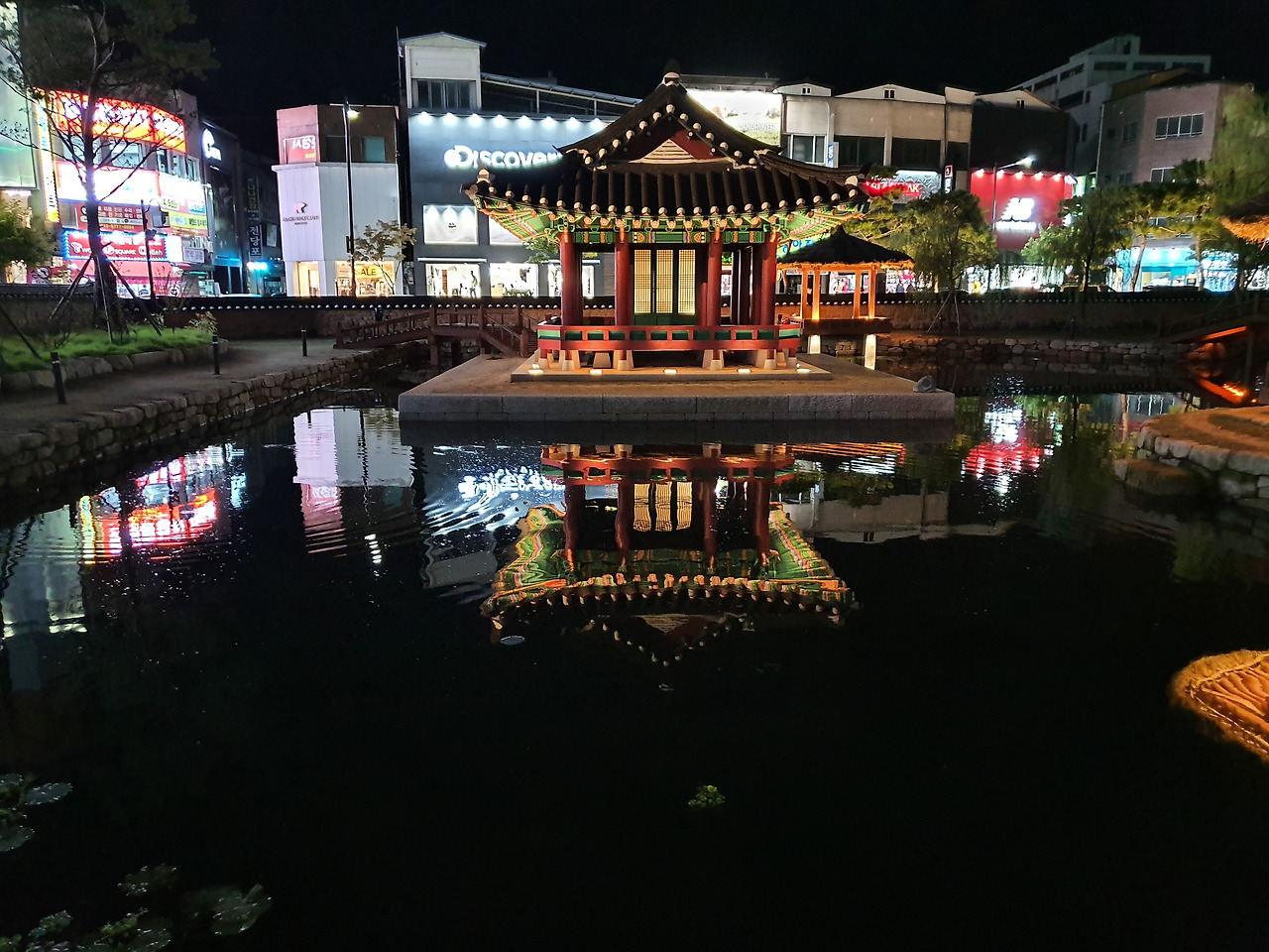방지 연못가 월영에 드리운