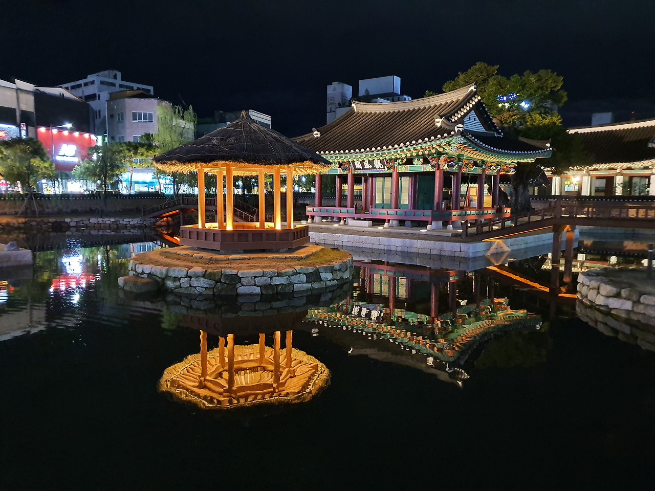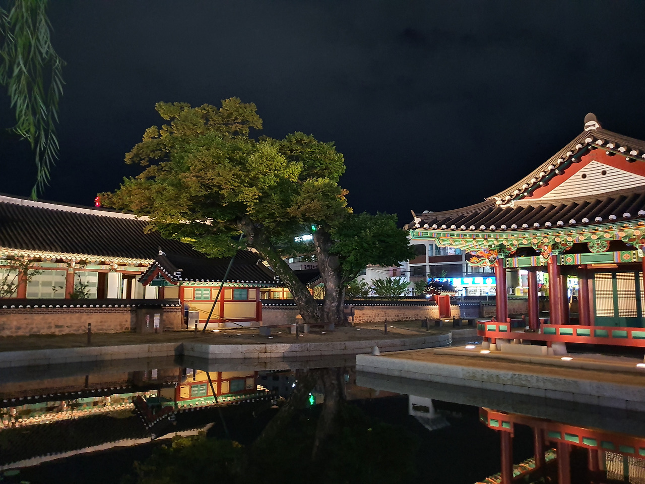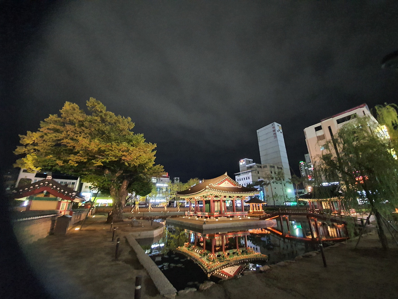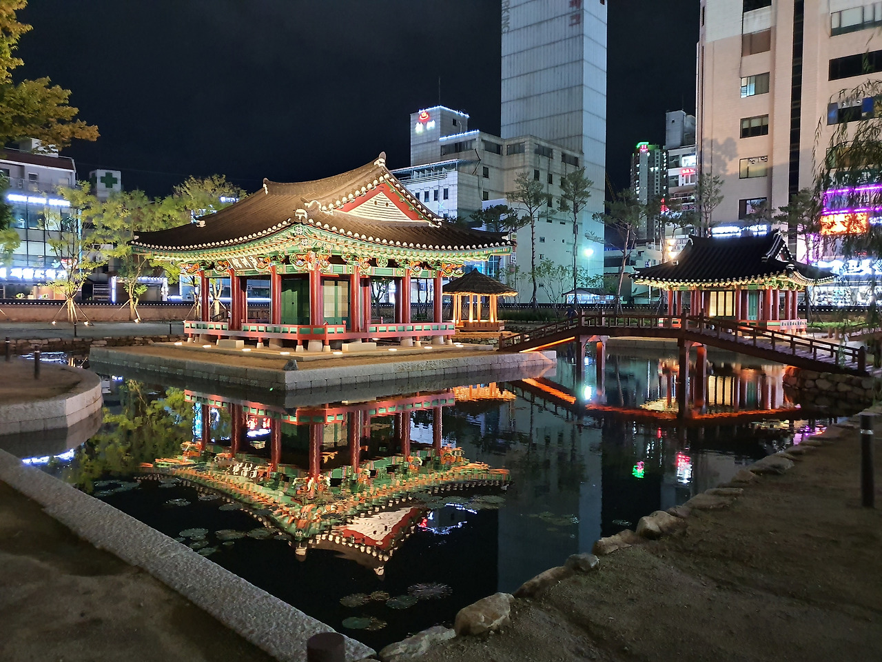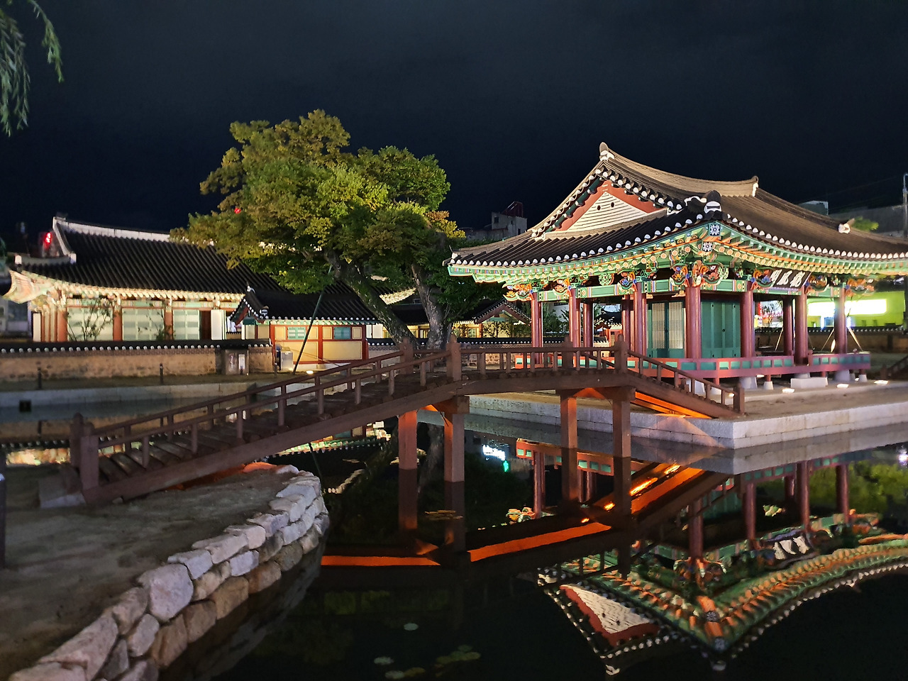 방지 연못가 월영에 드리운