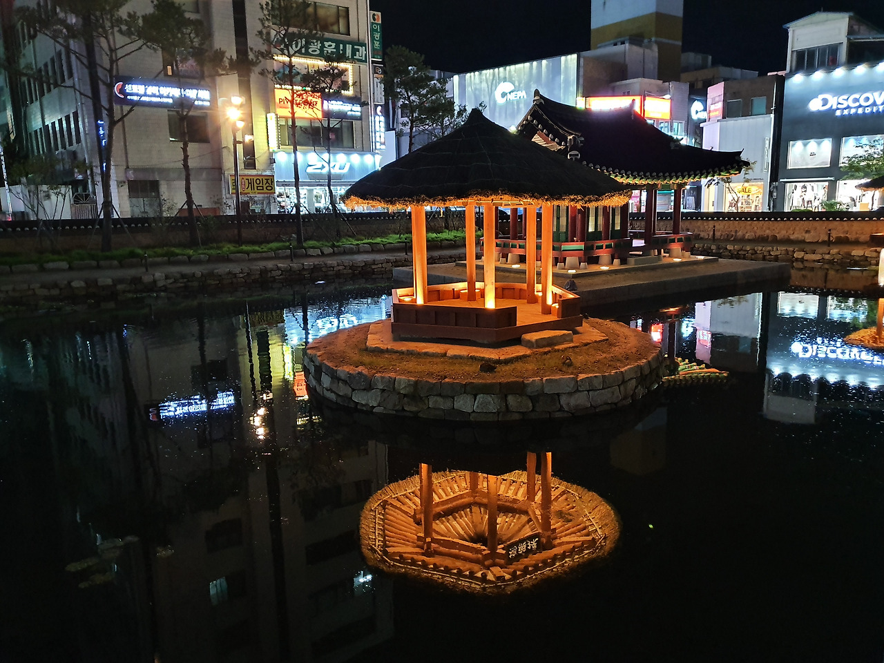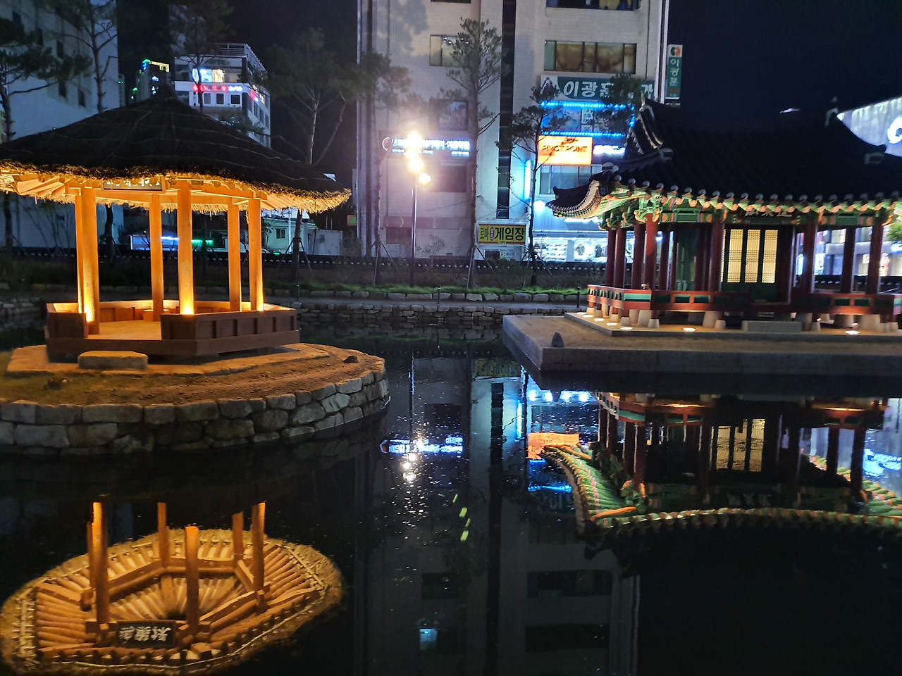 작은 연못 비추는 저 달에