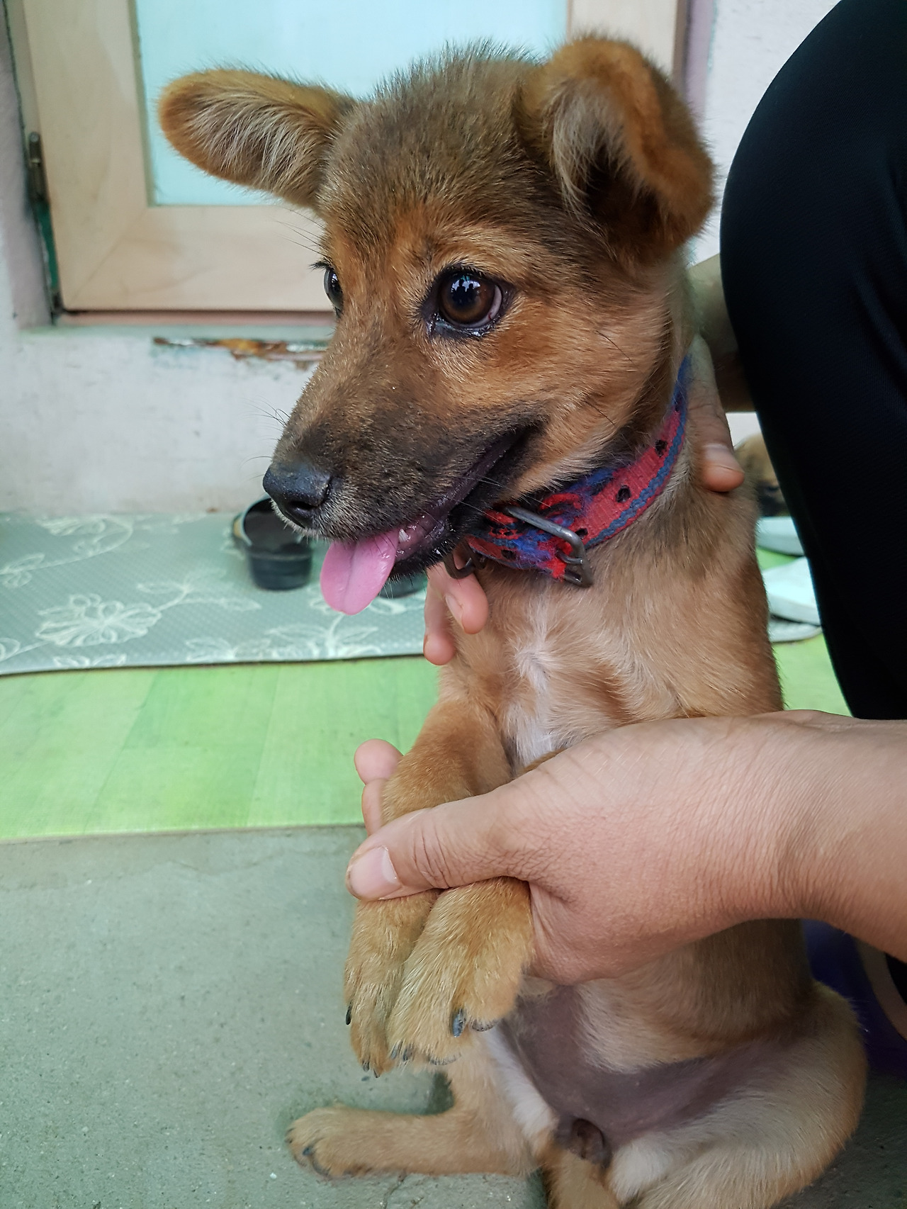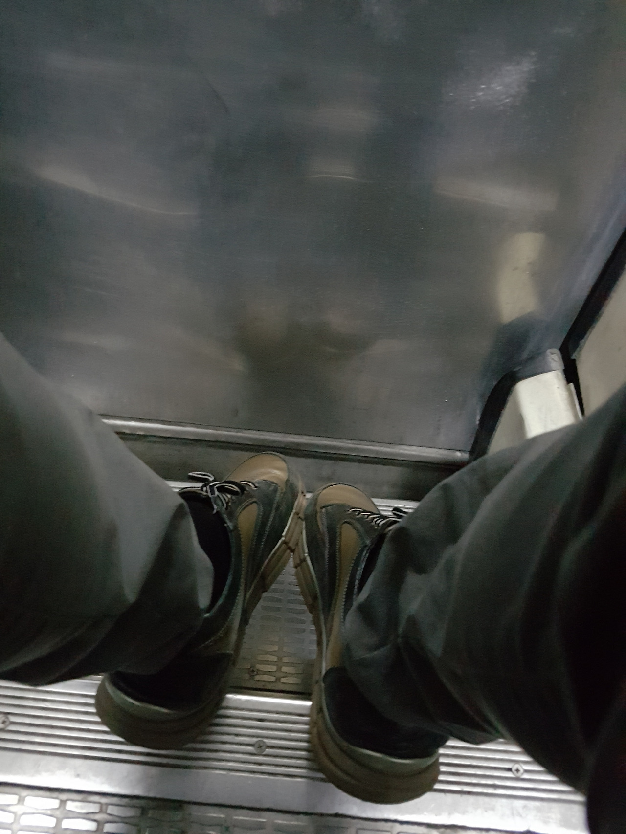 한쪽 느슨하게 덜 묶인 신발이 안보인지라