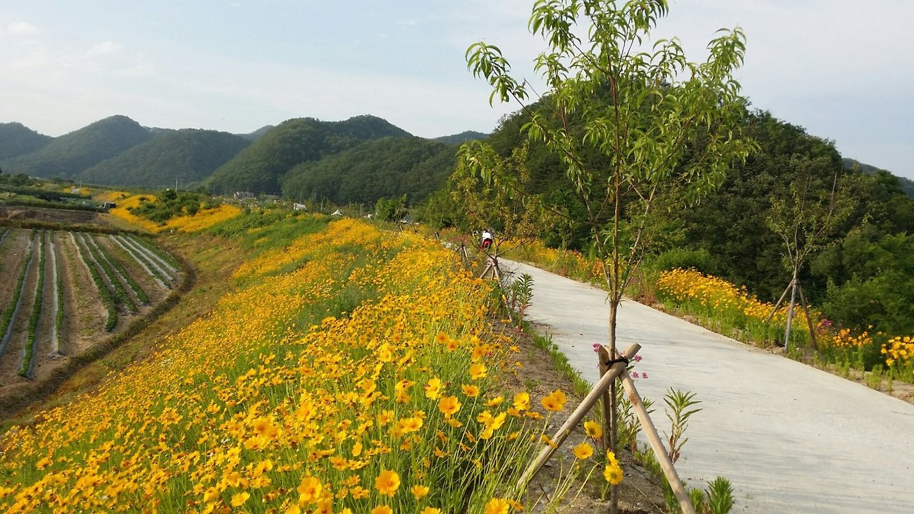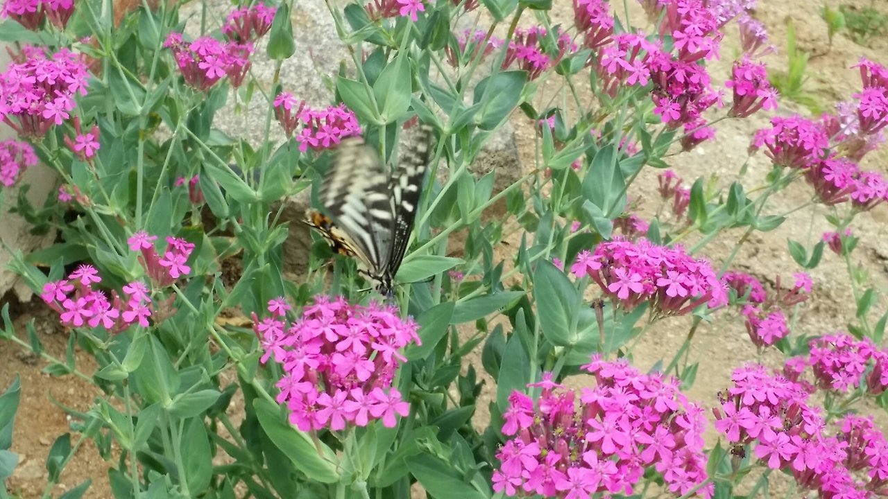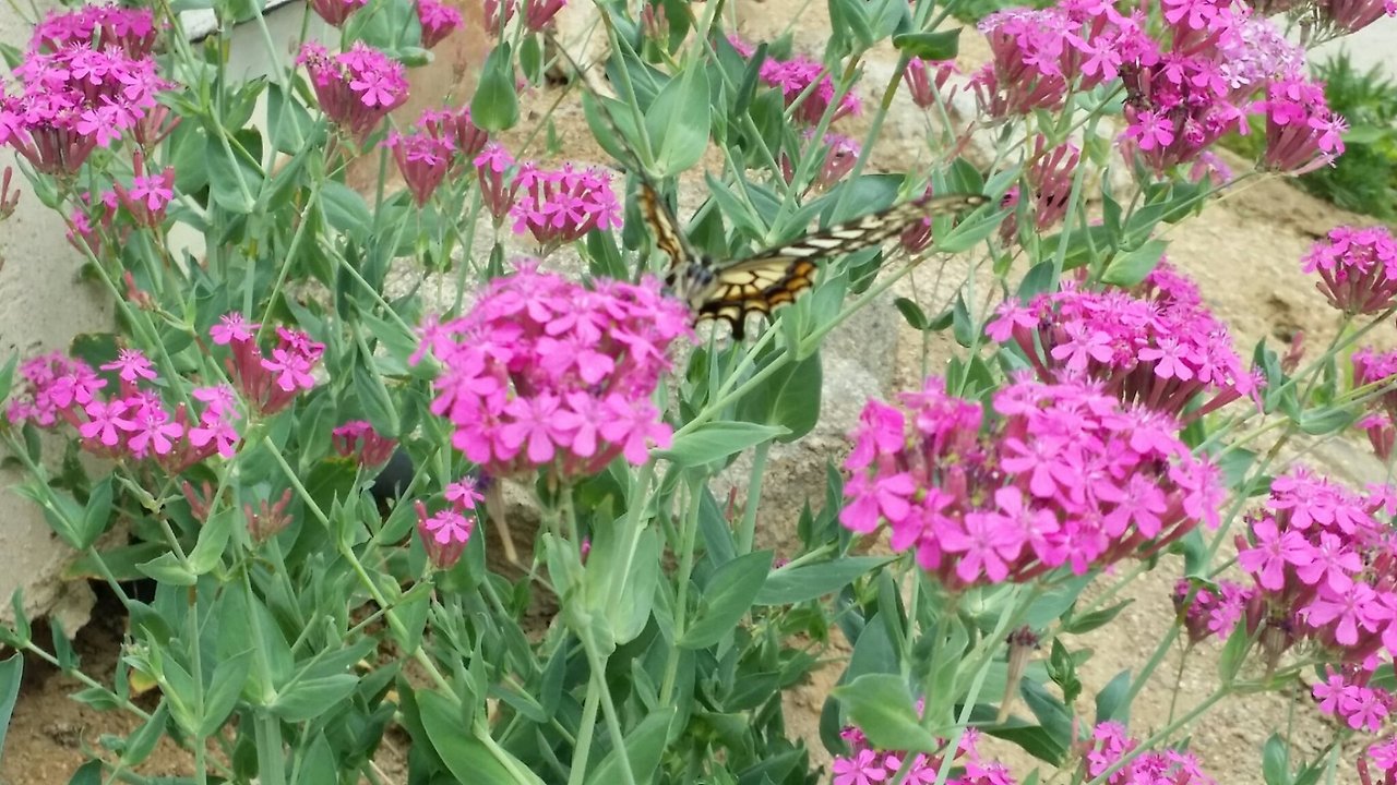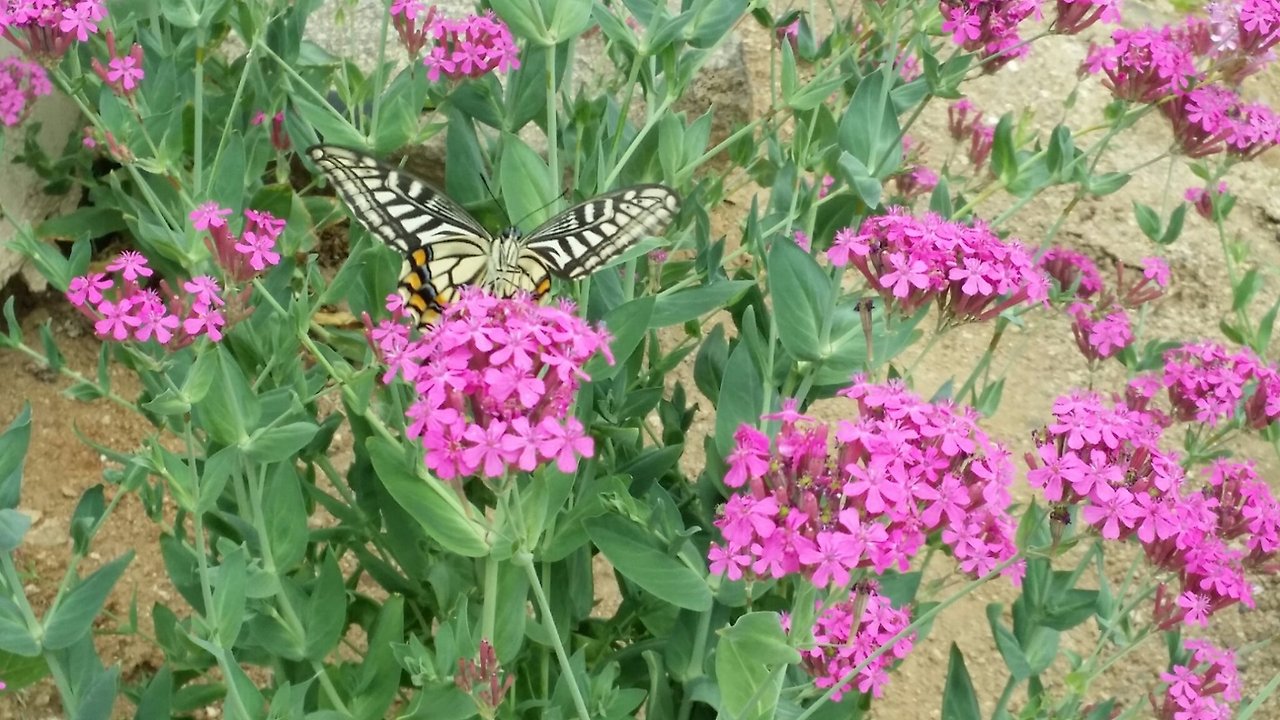수줍게 활짝 핀 그대는 나비가 날아들어