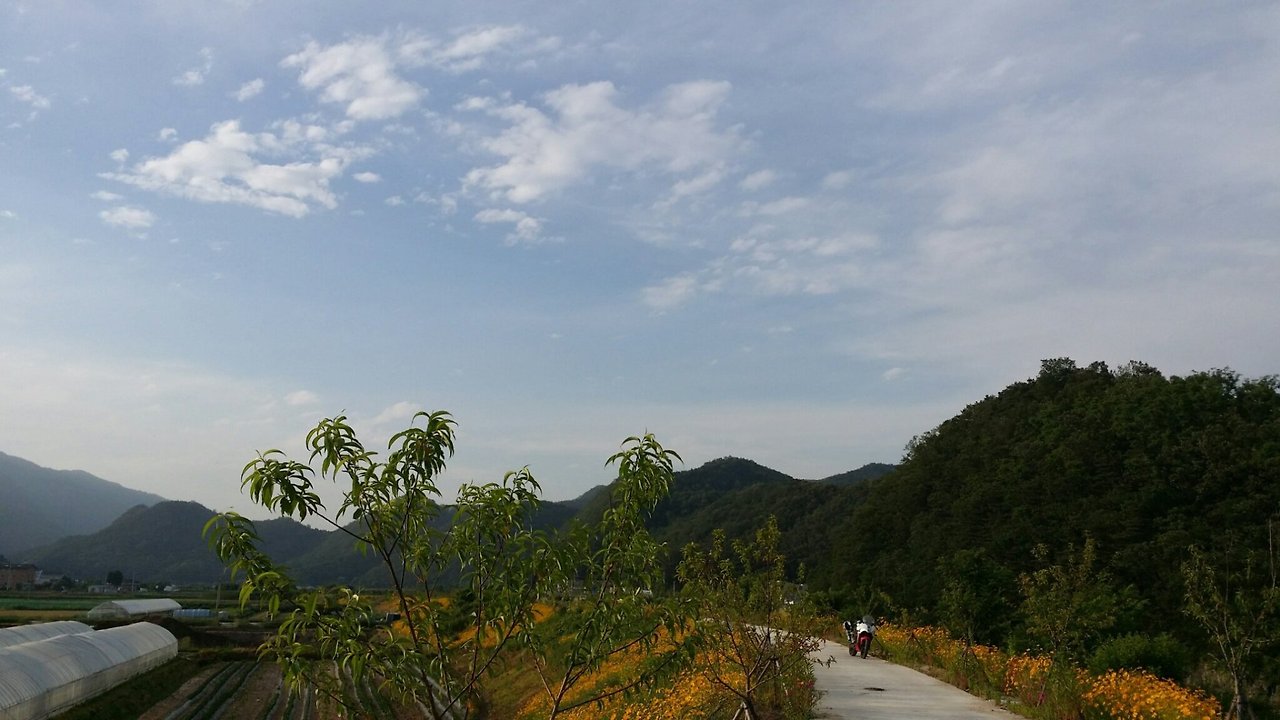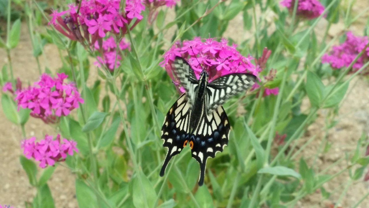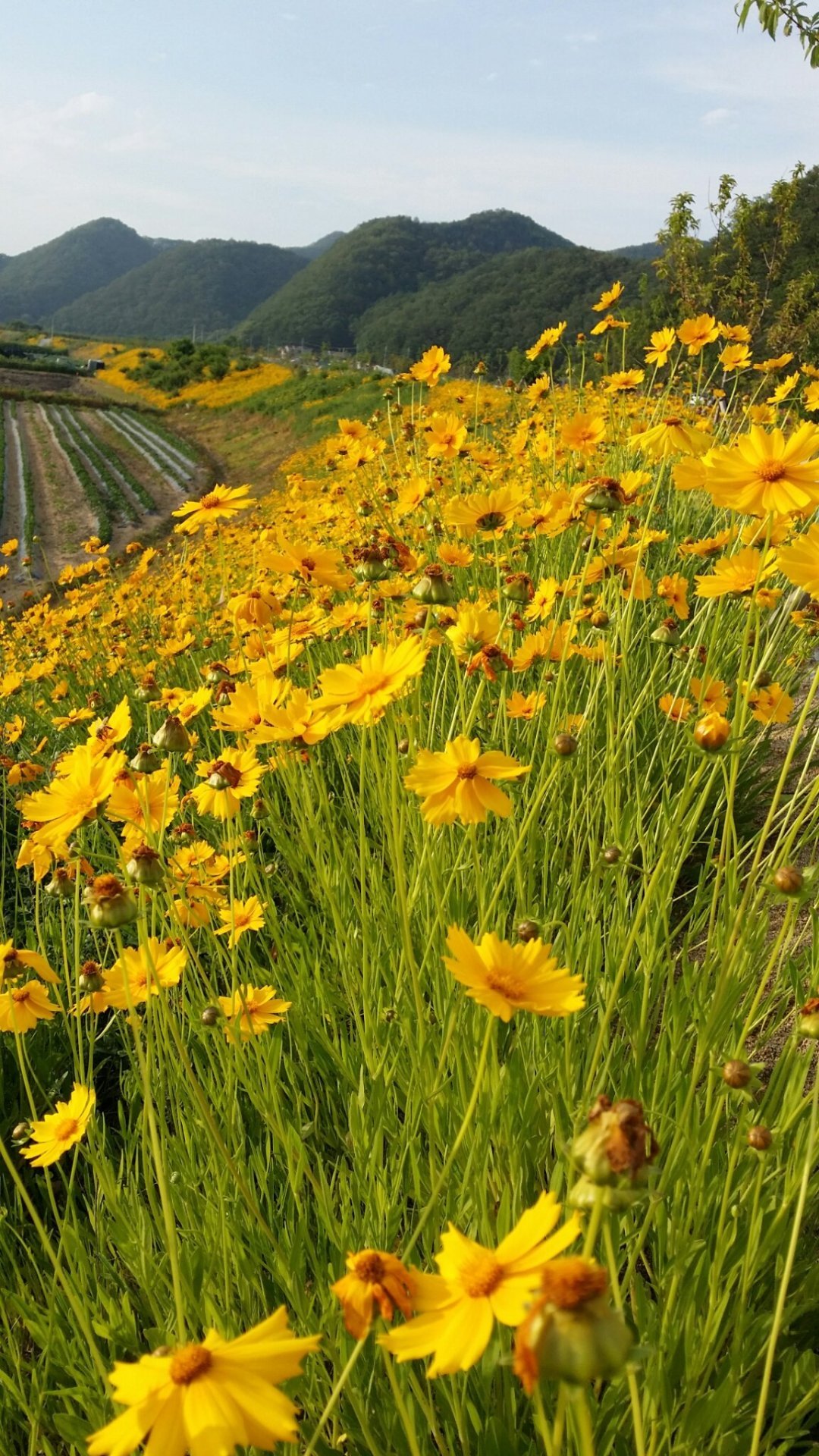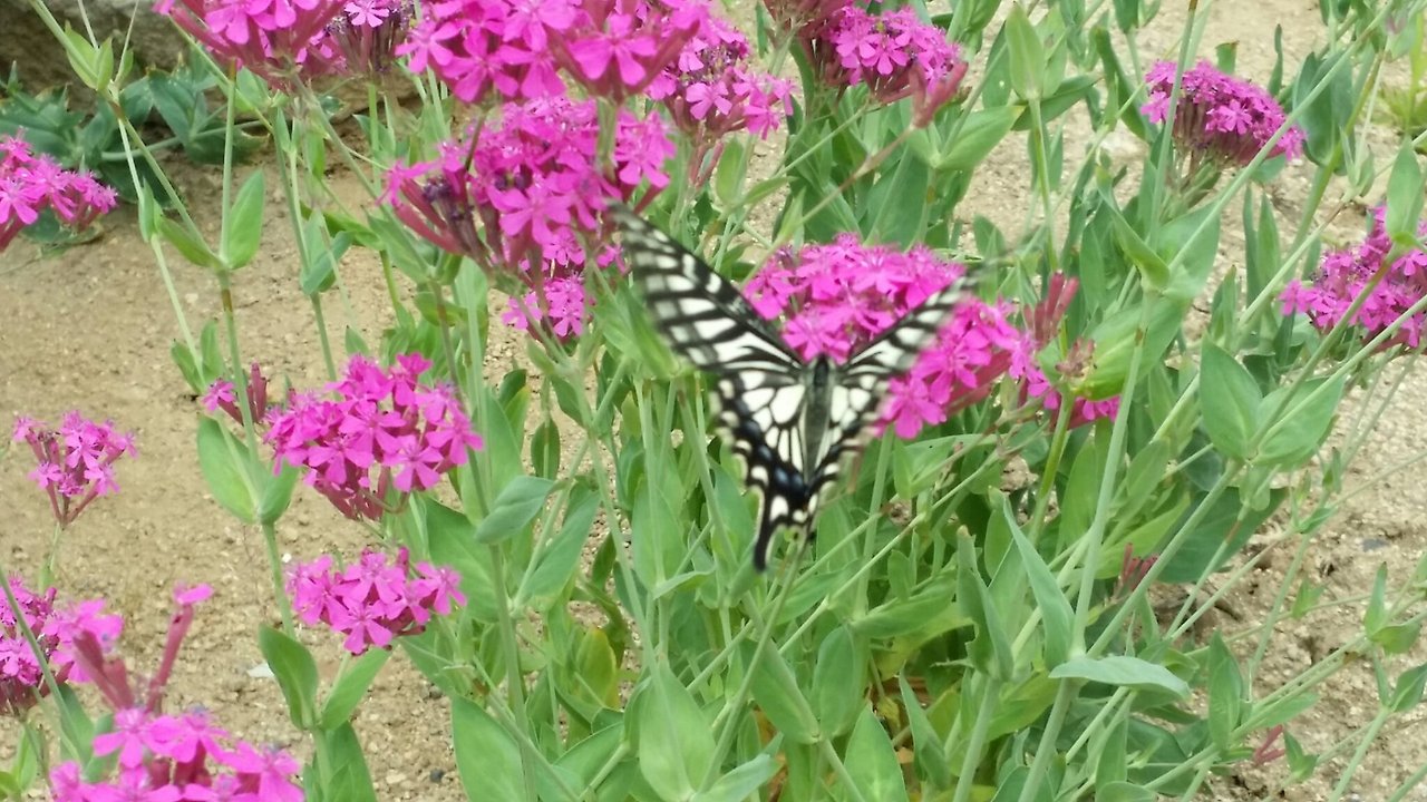 수줍게 활짝 핀 그대는 나비가 날아들어