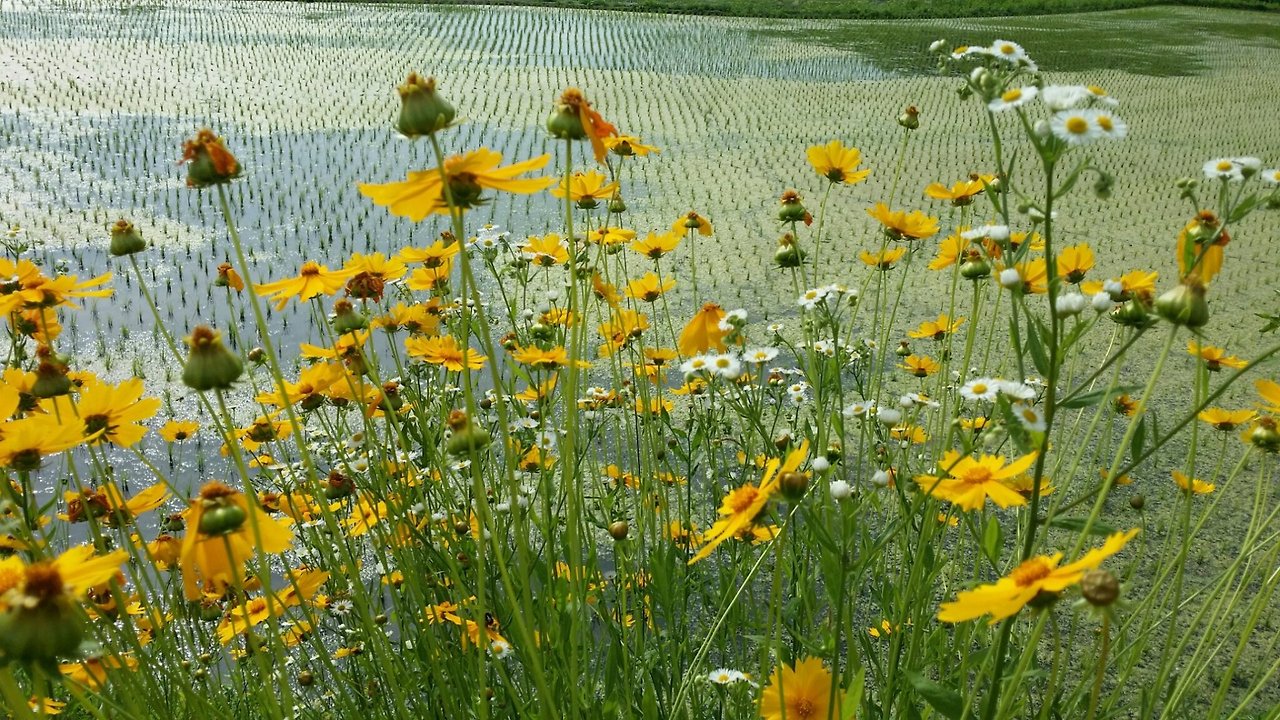 꽃에 날아 앉아 그 꽃잎을 수놓으니