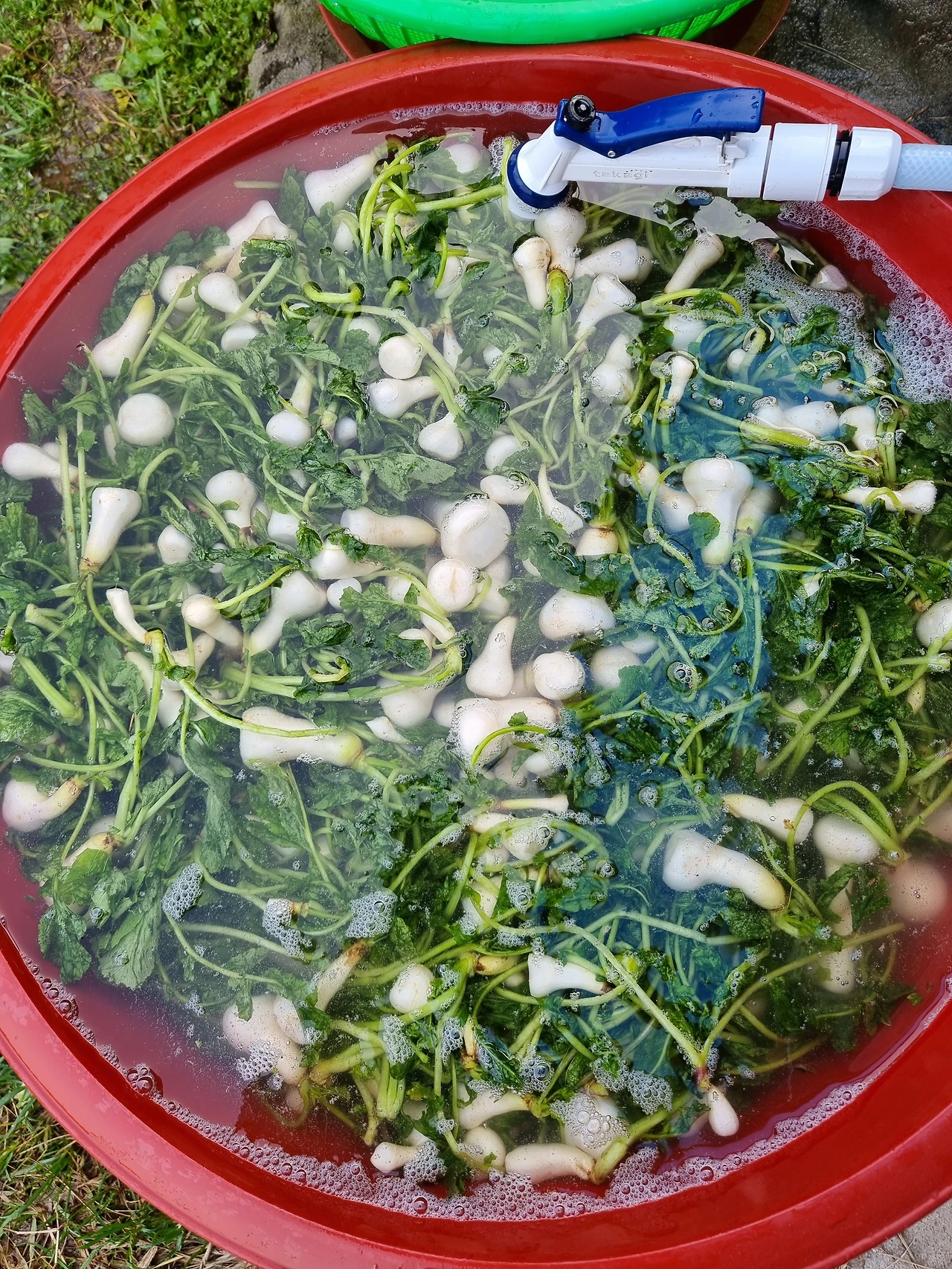 커다란 알타리 무 덥석 한 잎 베어 물어 보네