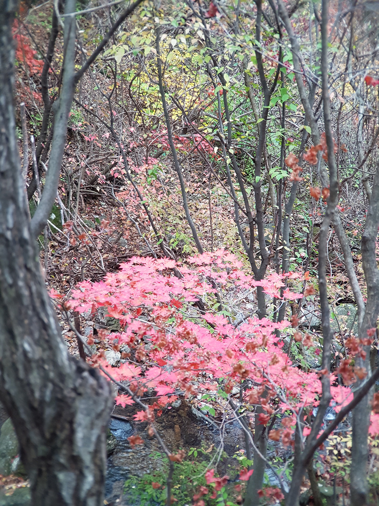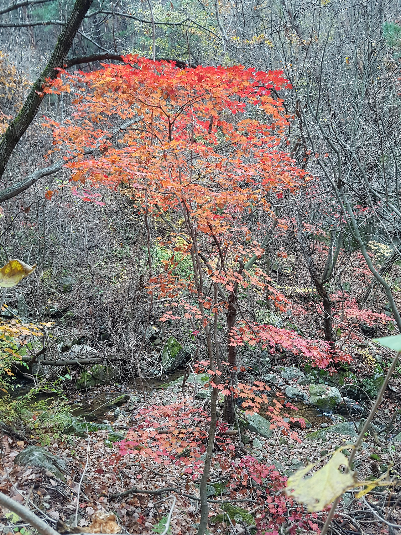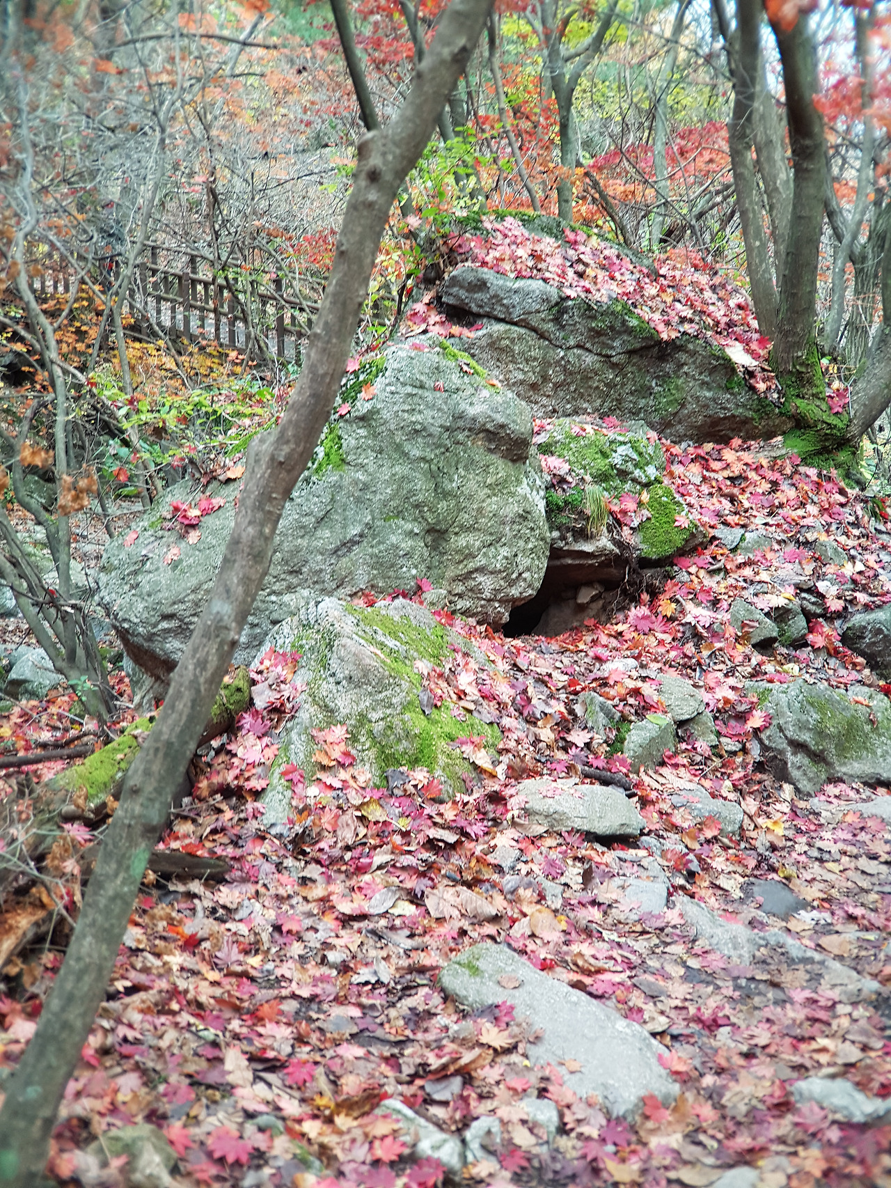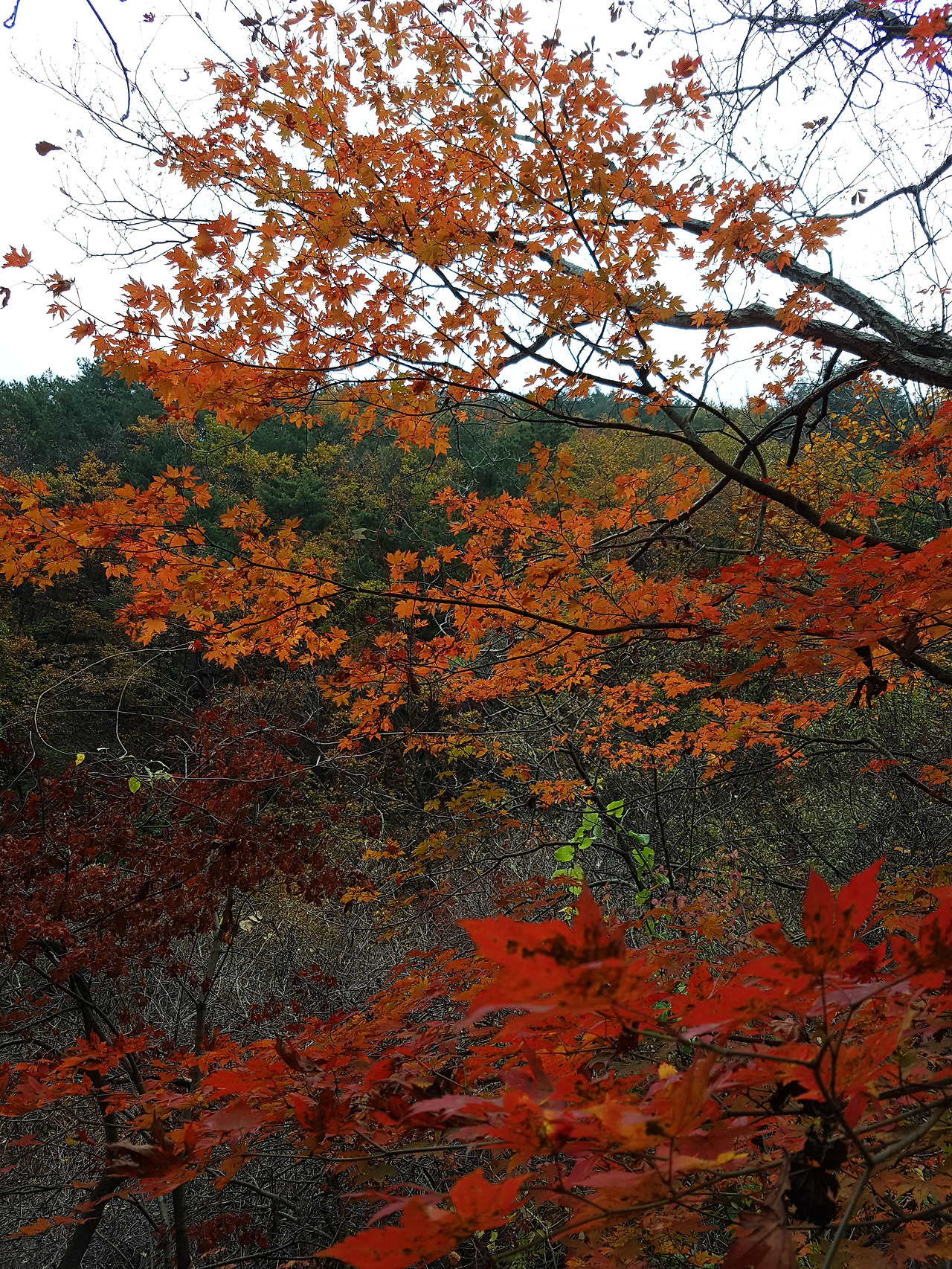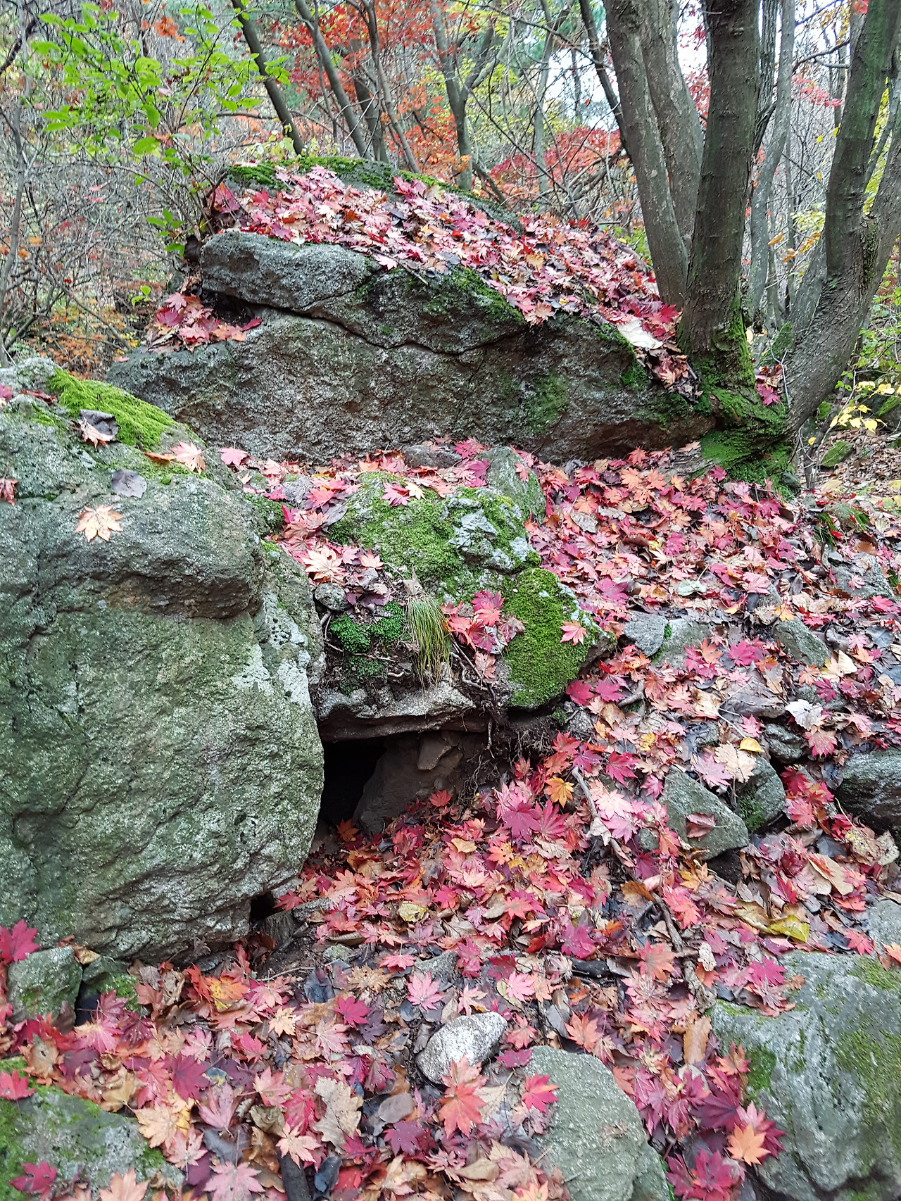 간간히 단풍 계곡 숲 사이의 고운 햇살이 두 마음이요