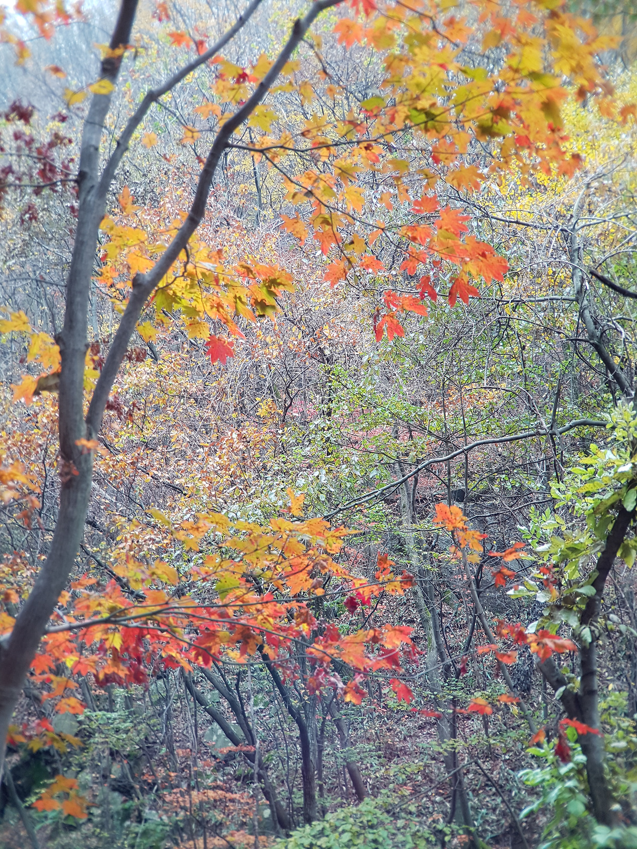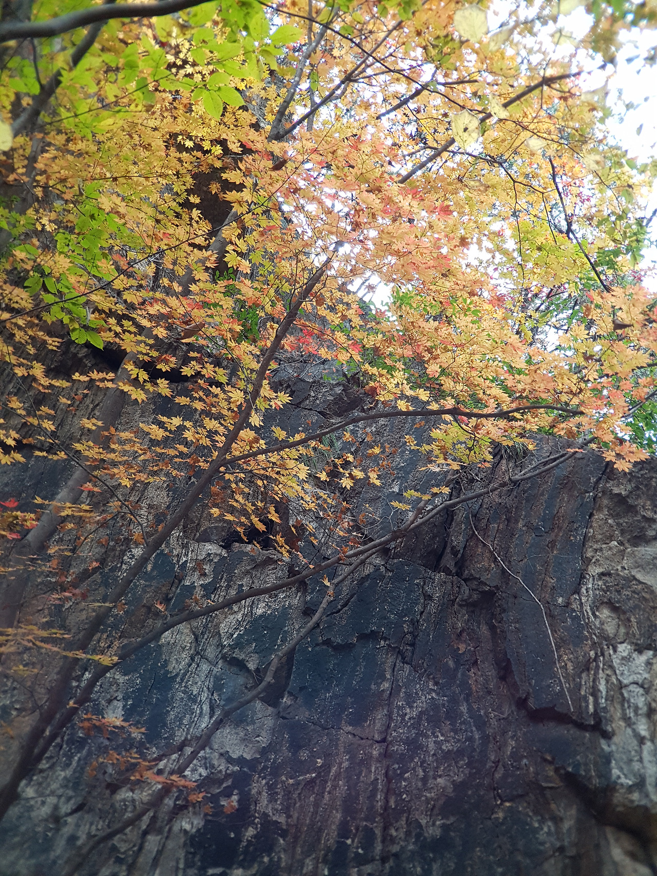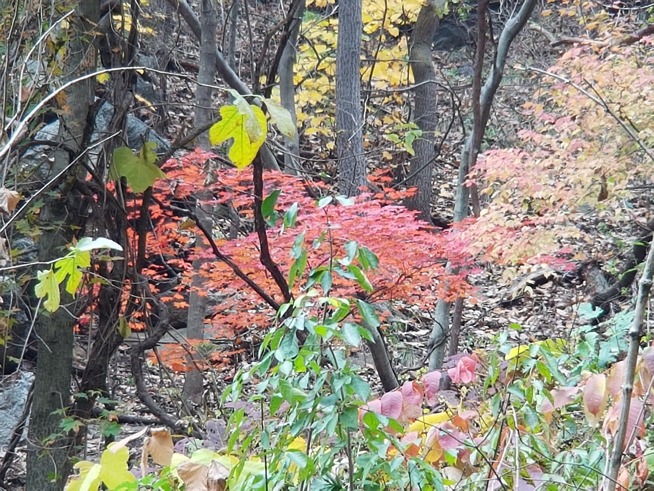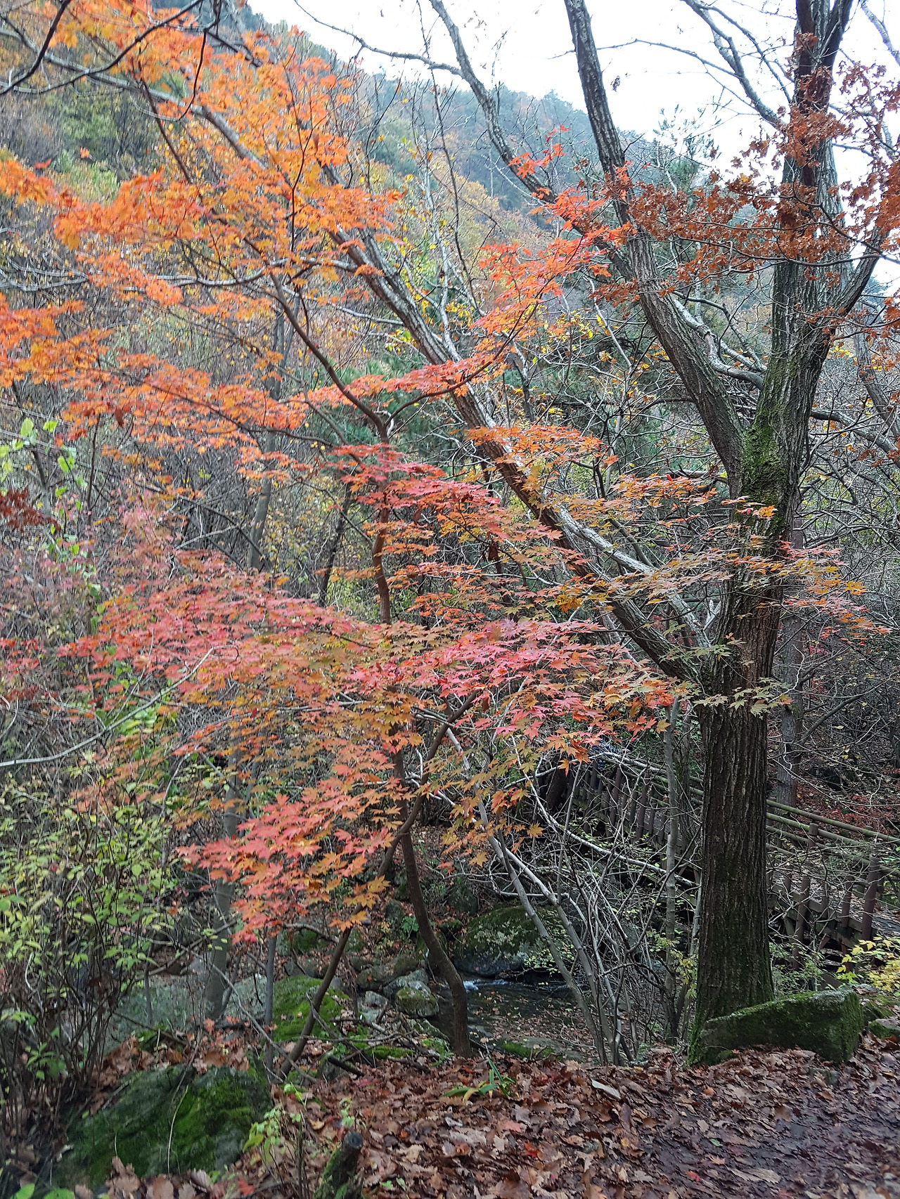 간간히 단풍 계곡 숲 사이의 고운 햇살이 두 마음이요