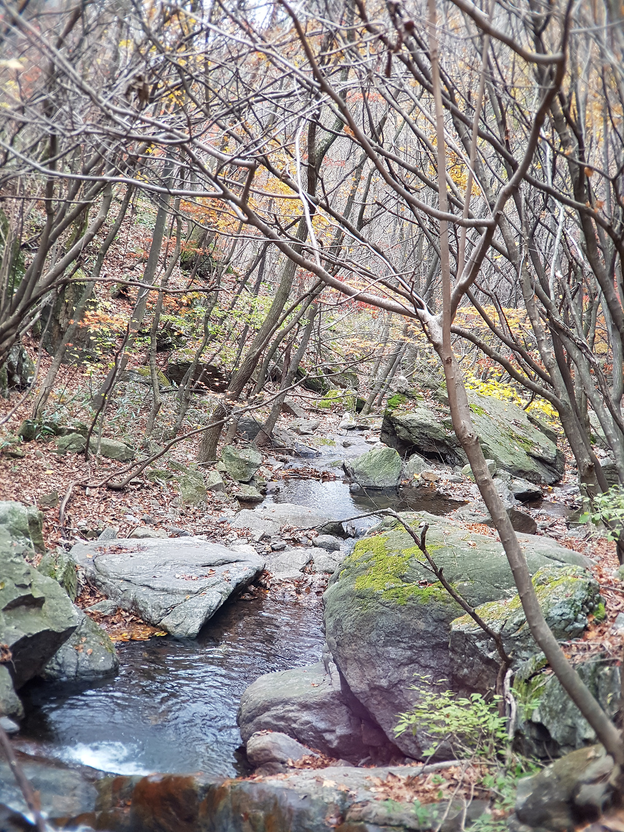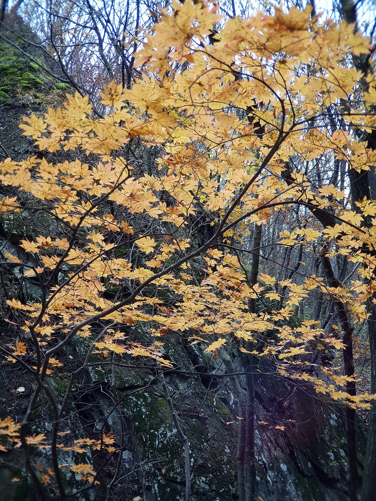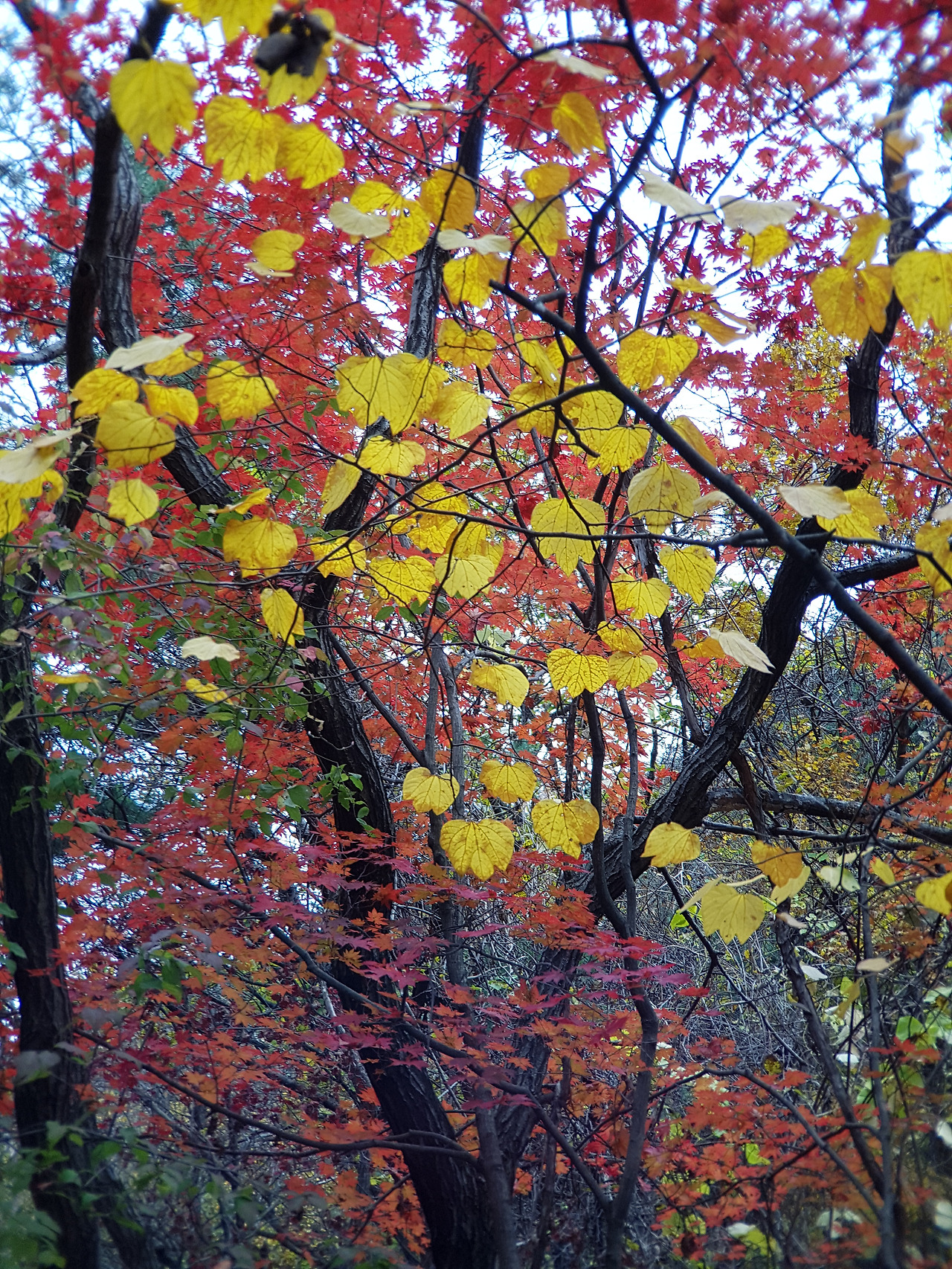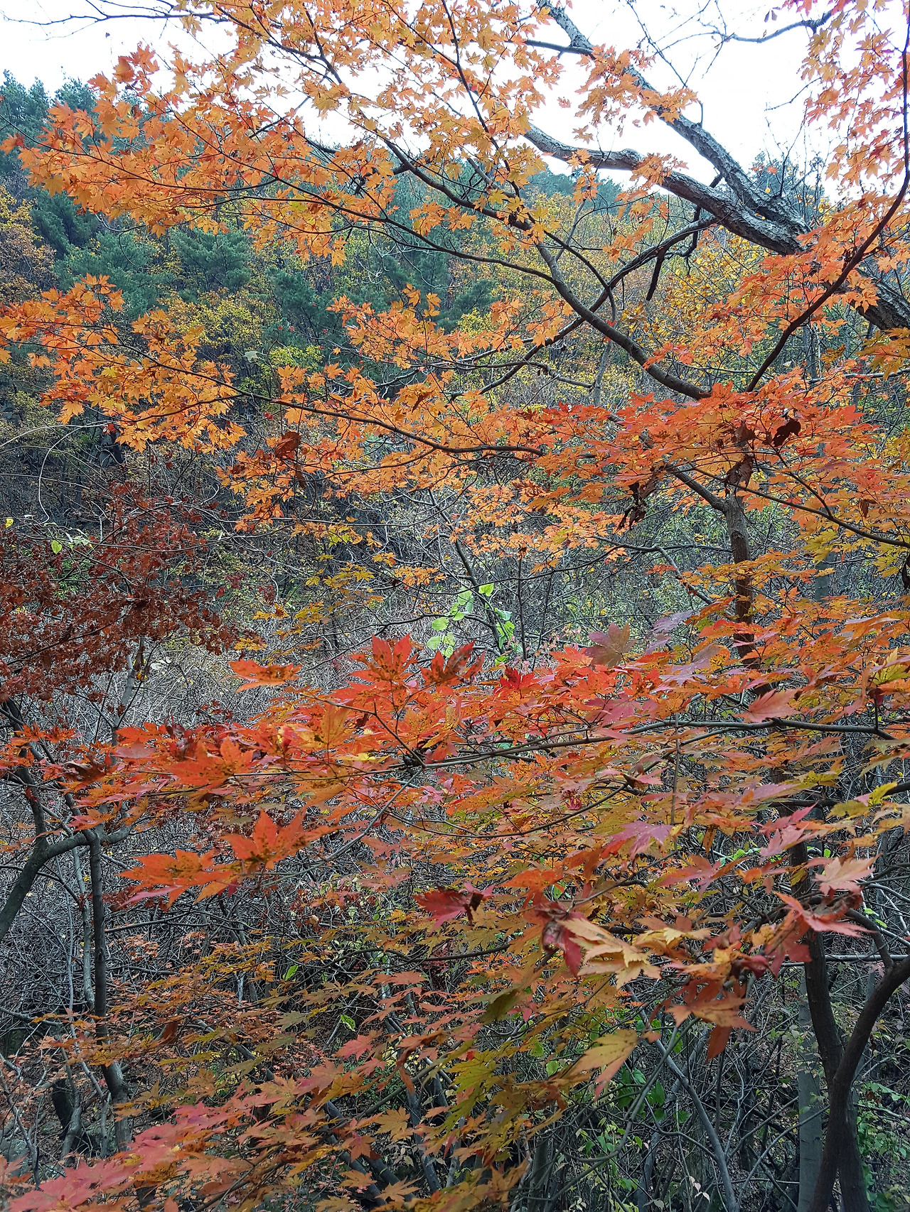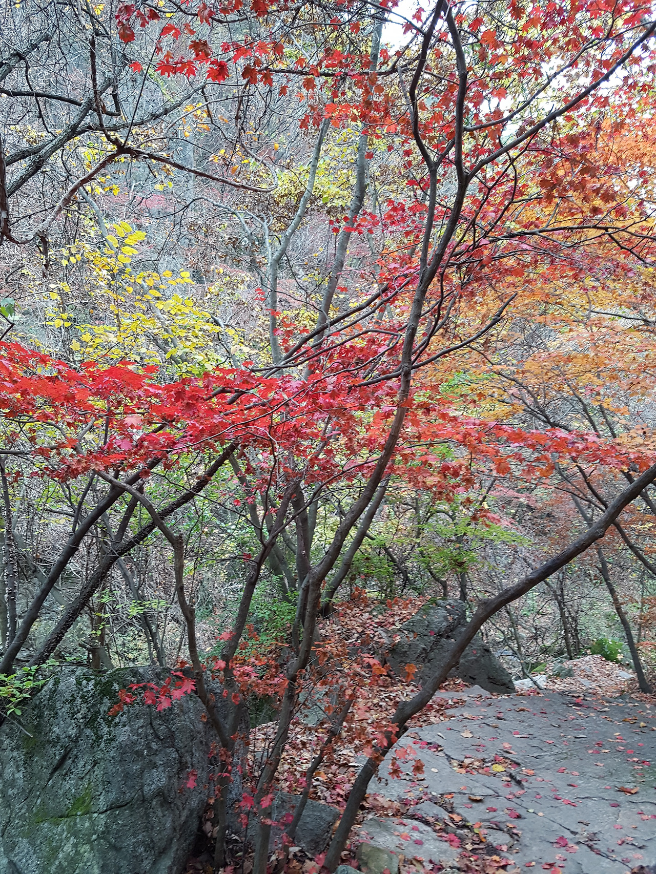 간간히 단풍 계곡 숲 사이의 고운 햇살이 두 마음이요