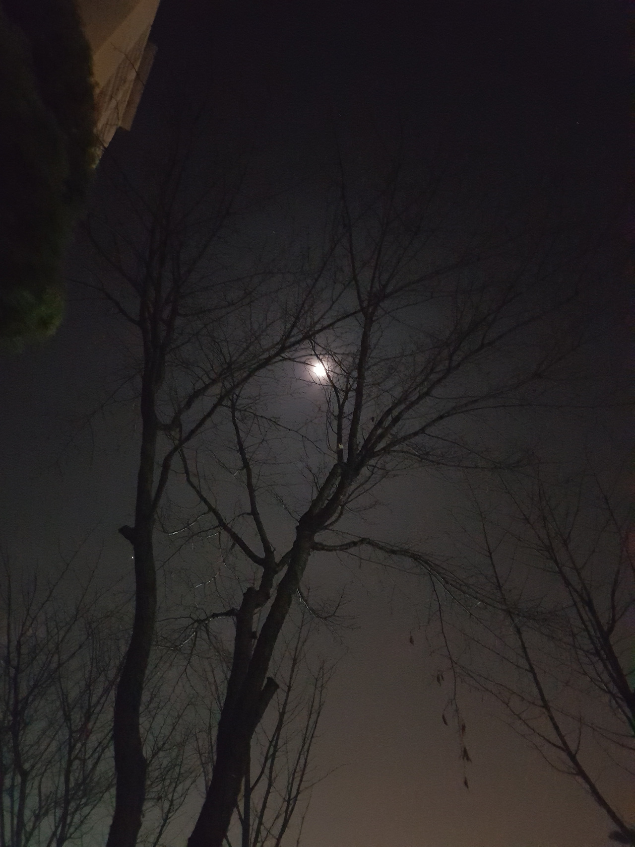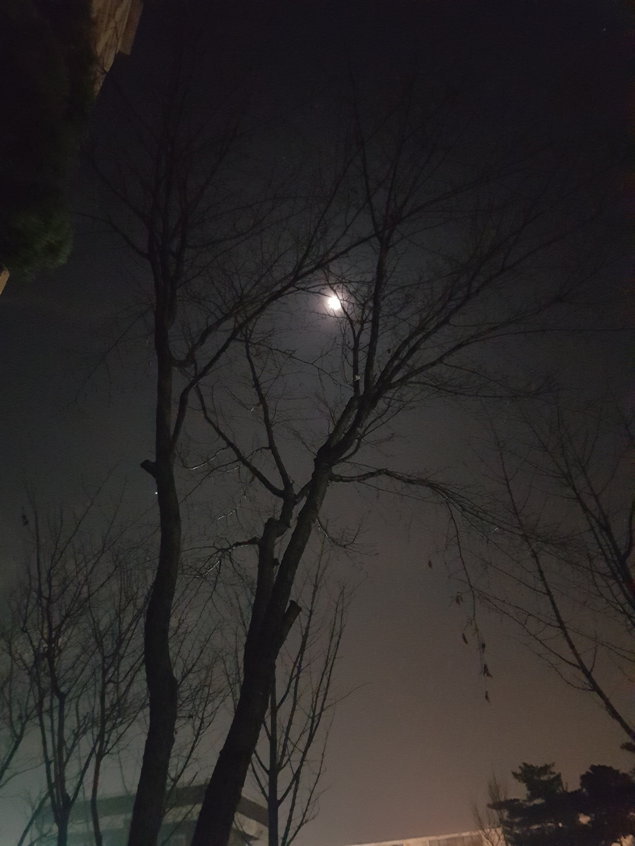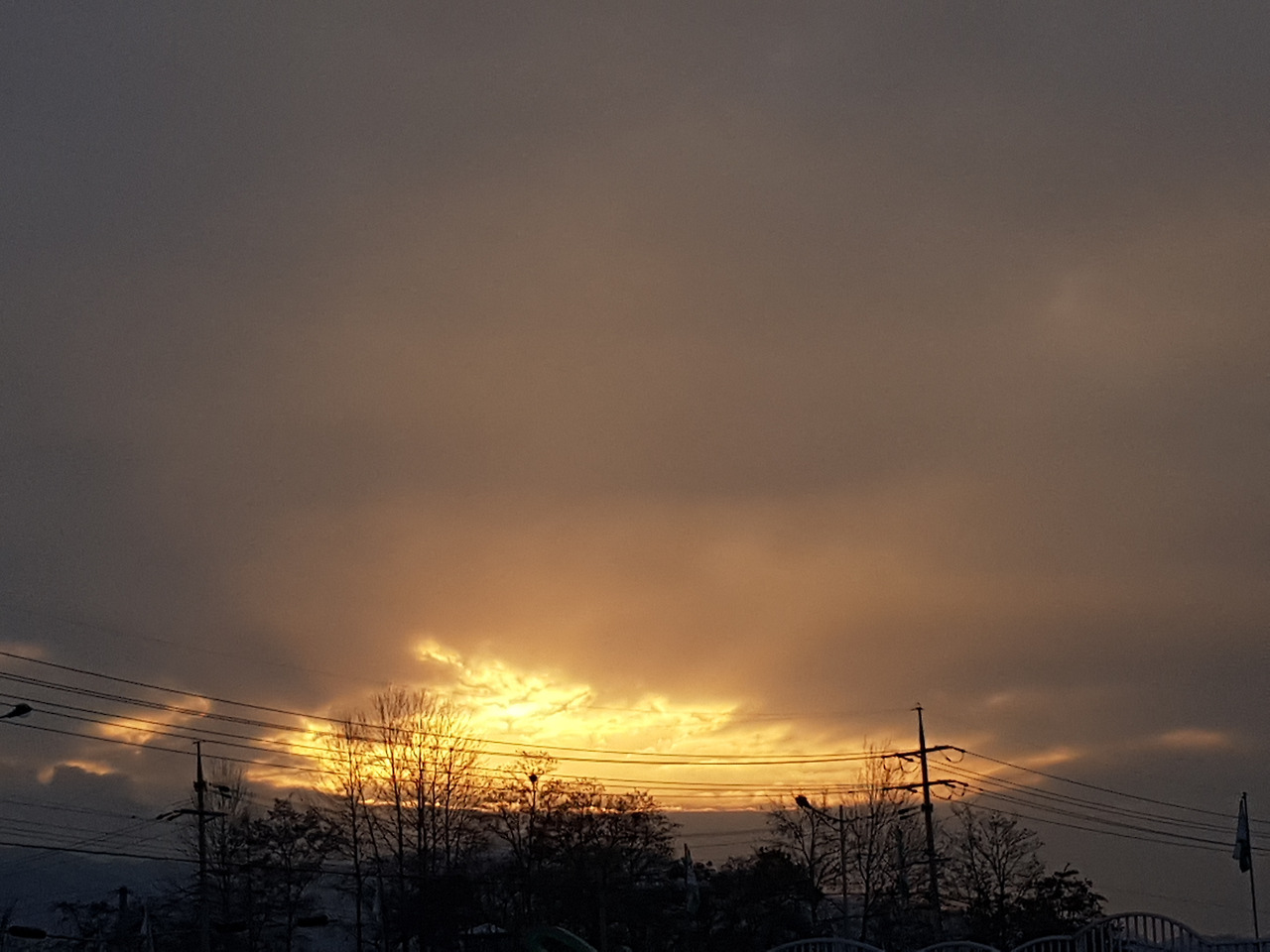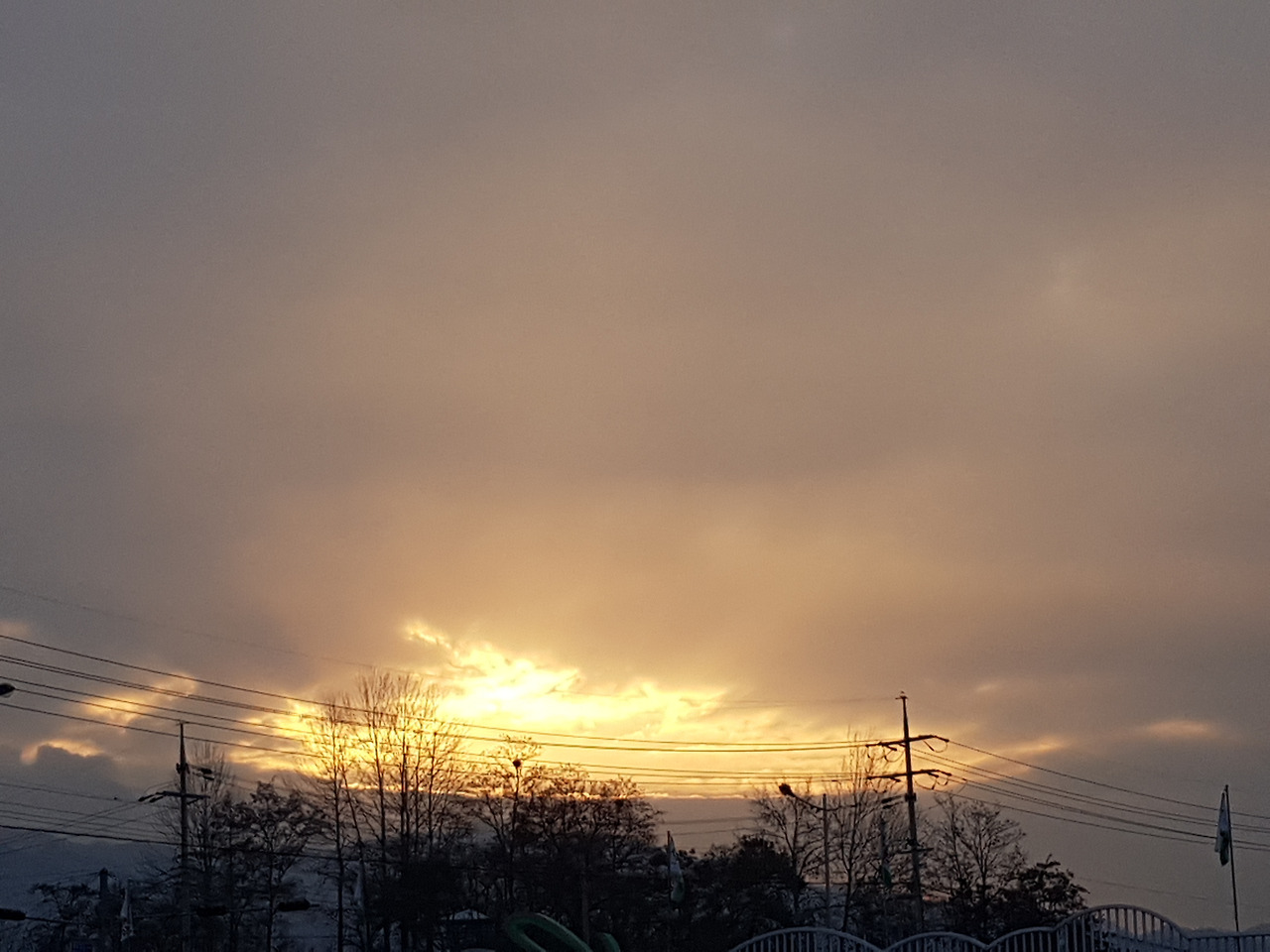 여명따라 형형색색 빈 전라의 나목 앞에서는