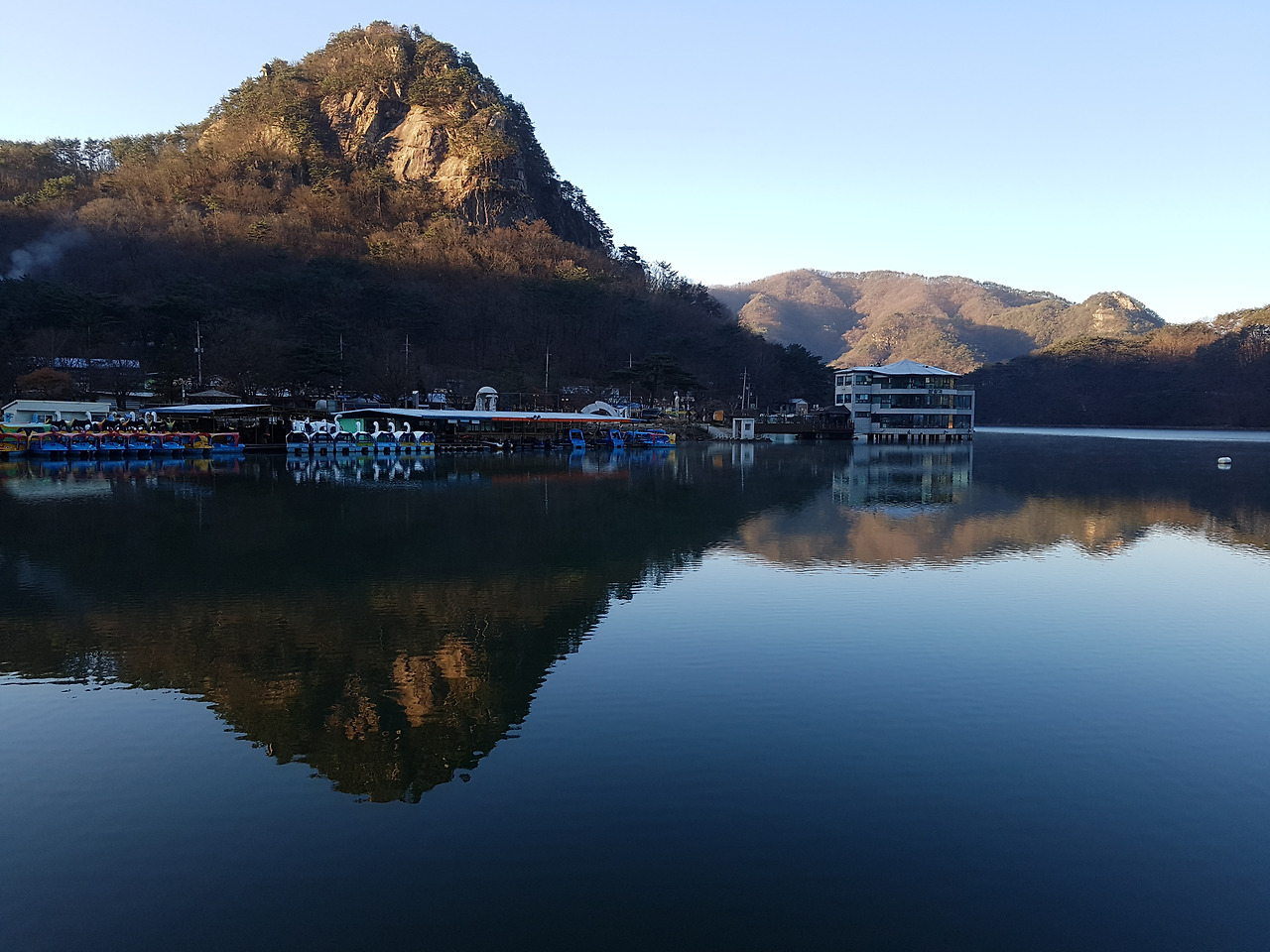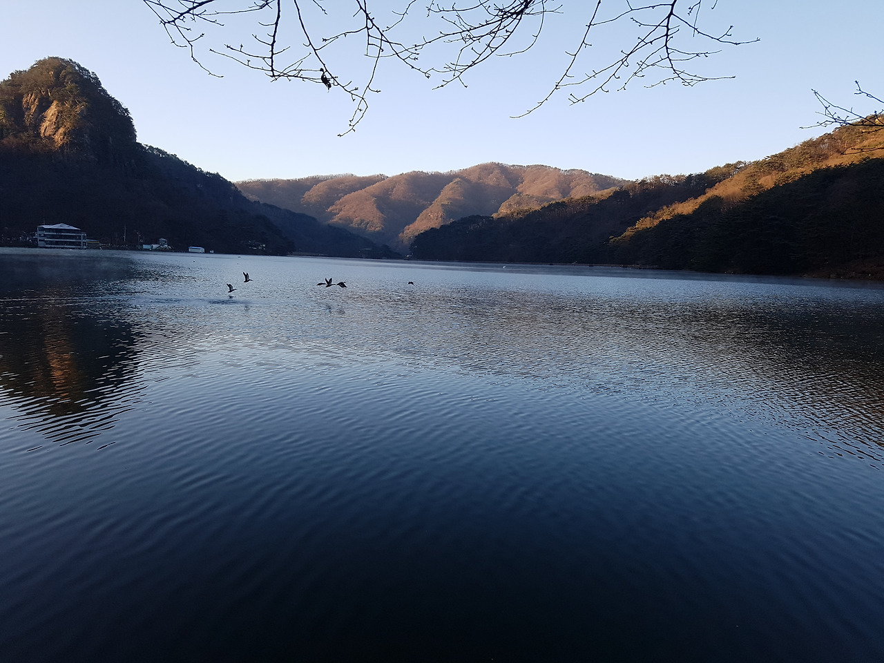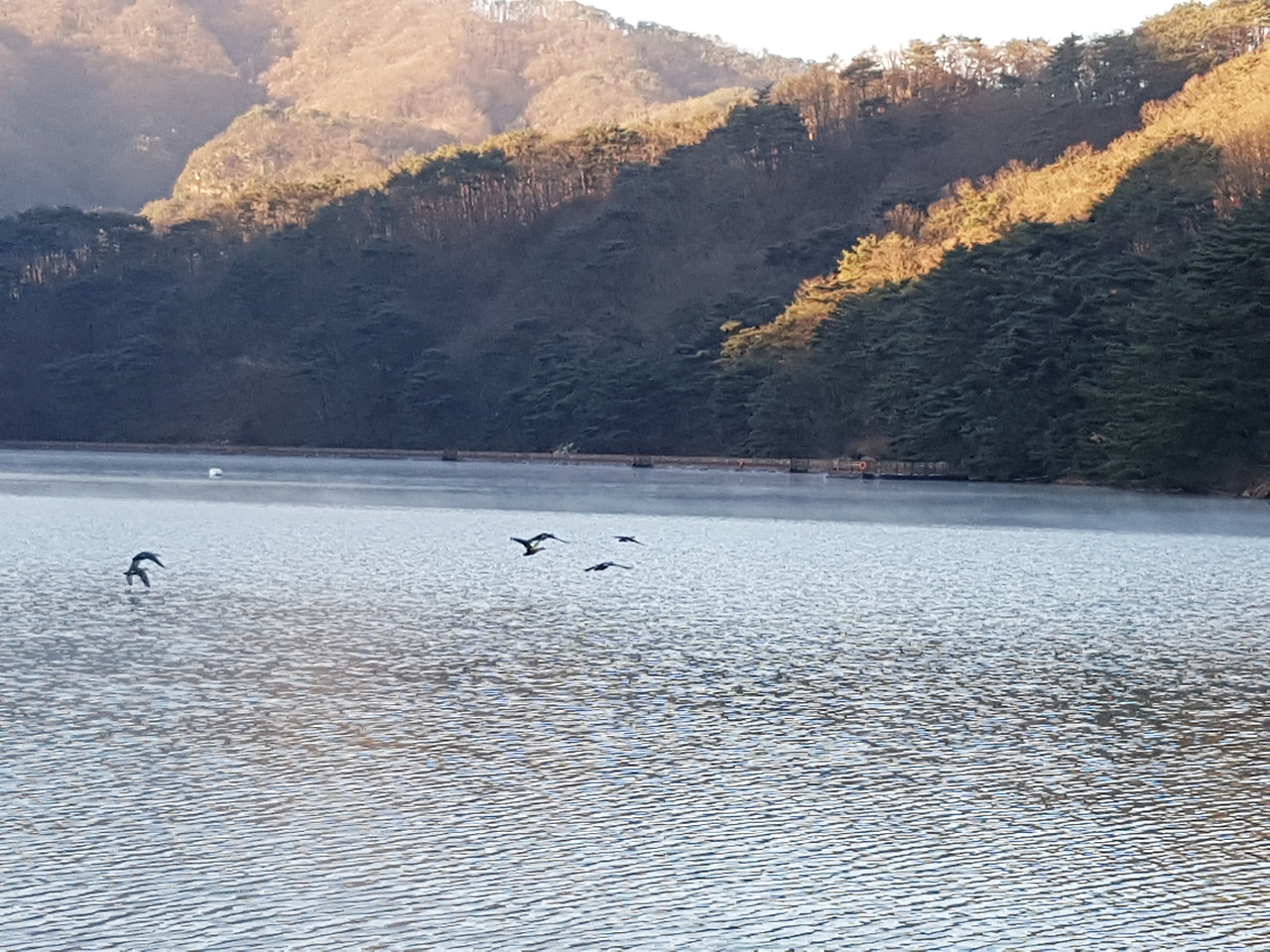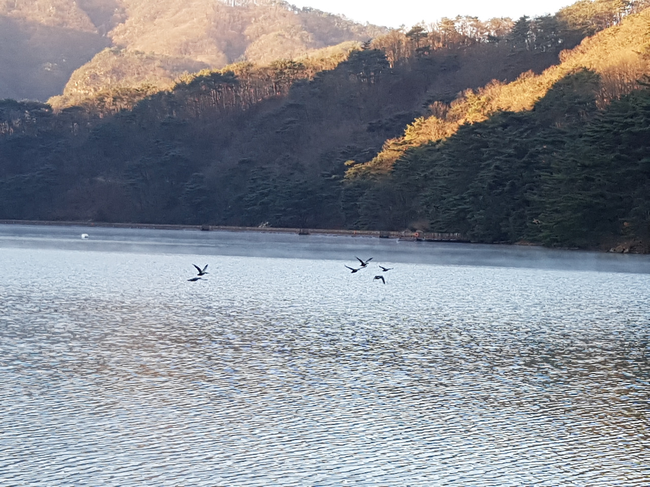 호수에 내려앉아 수를 놓은 자리에는