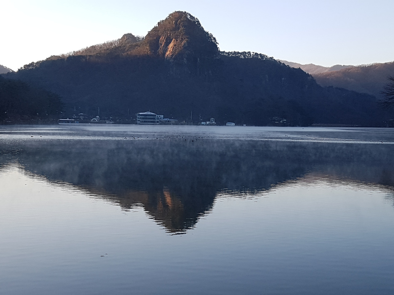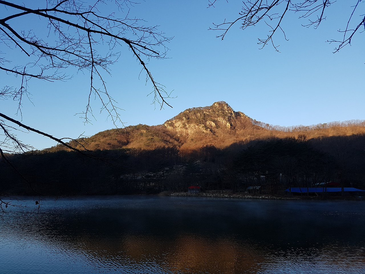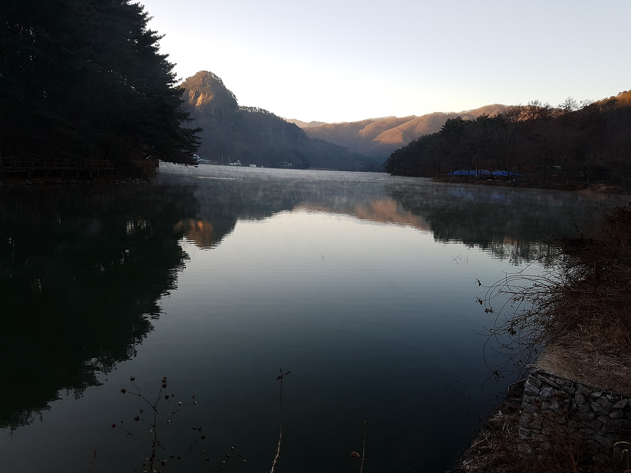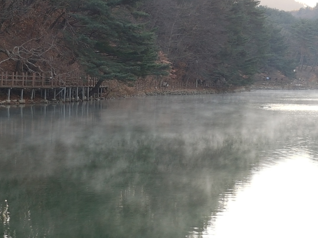 산정호수 위에 하얗게 피어 오른