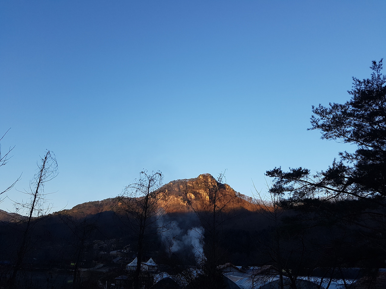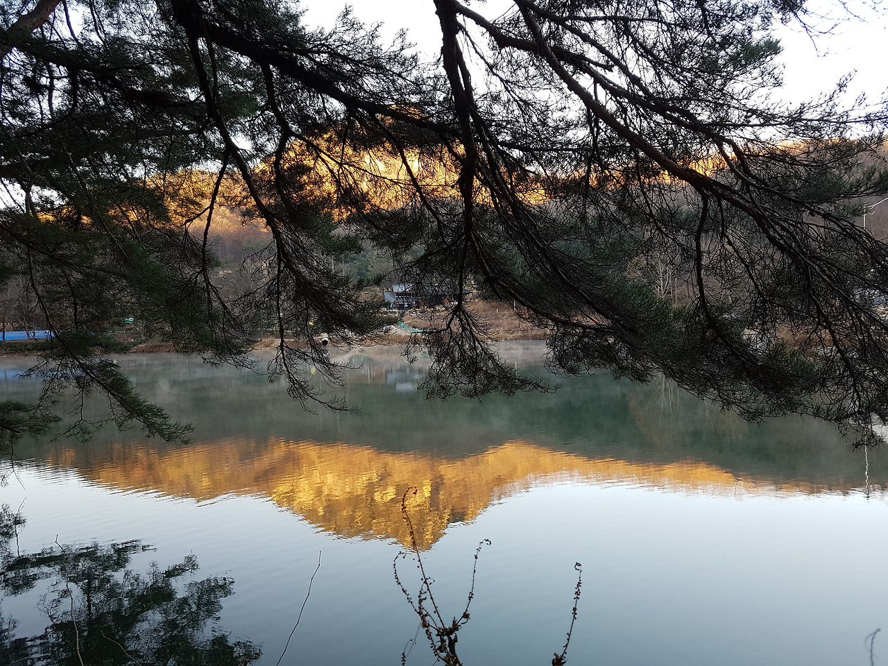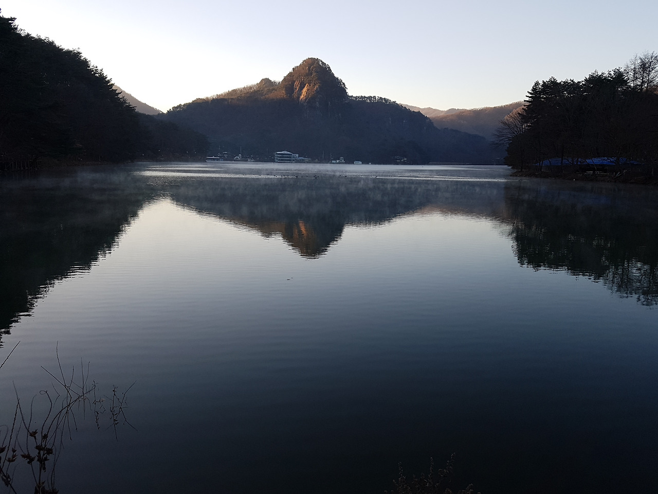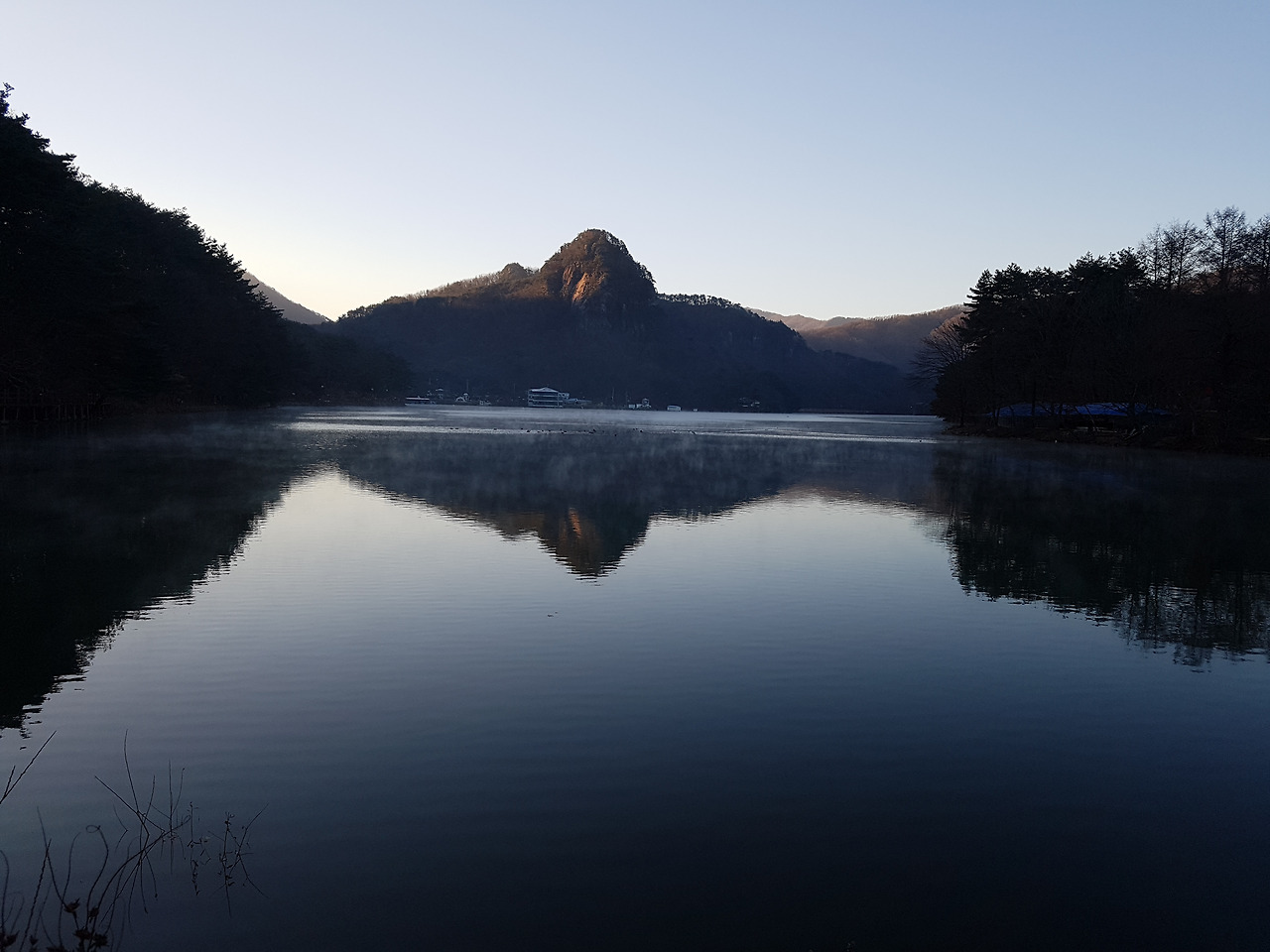 산정호수 위에 하얗게 피어 오른