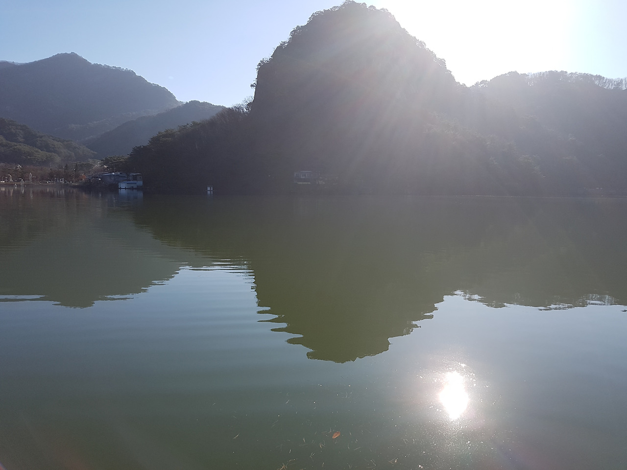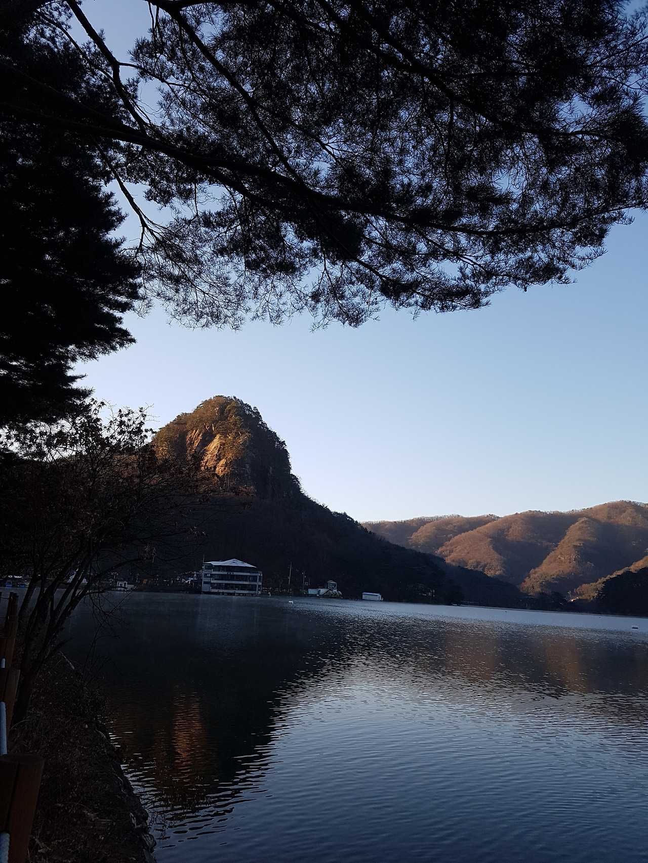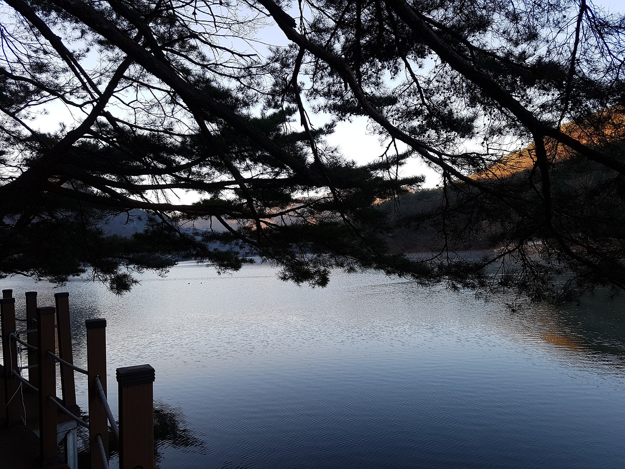 고스란히 호수 위에 드리워 지나