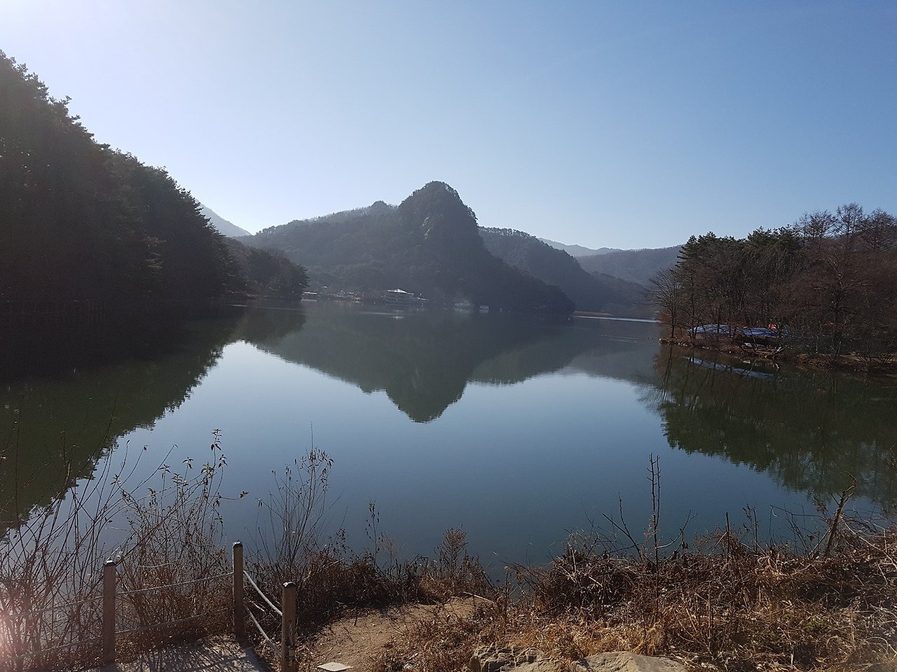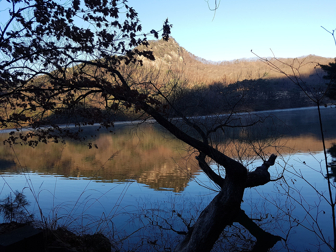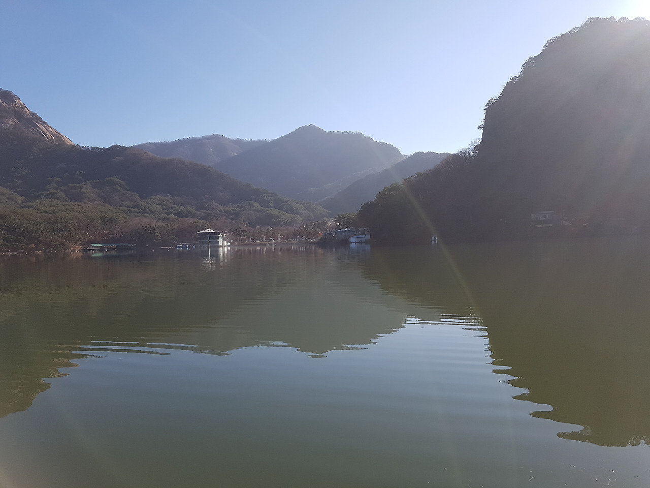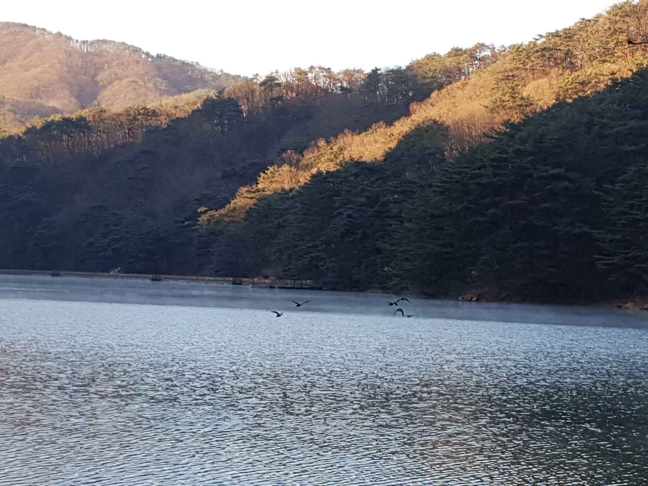고스란히 호수 위에 드리워 지나