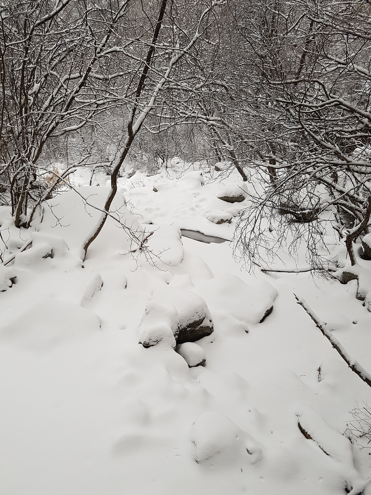 이 봄의 전달자인 계곡의 물소리도 눈에 갇혀