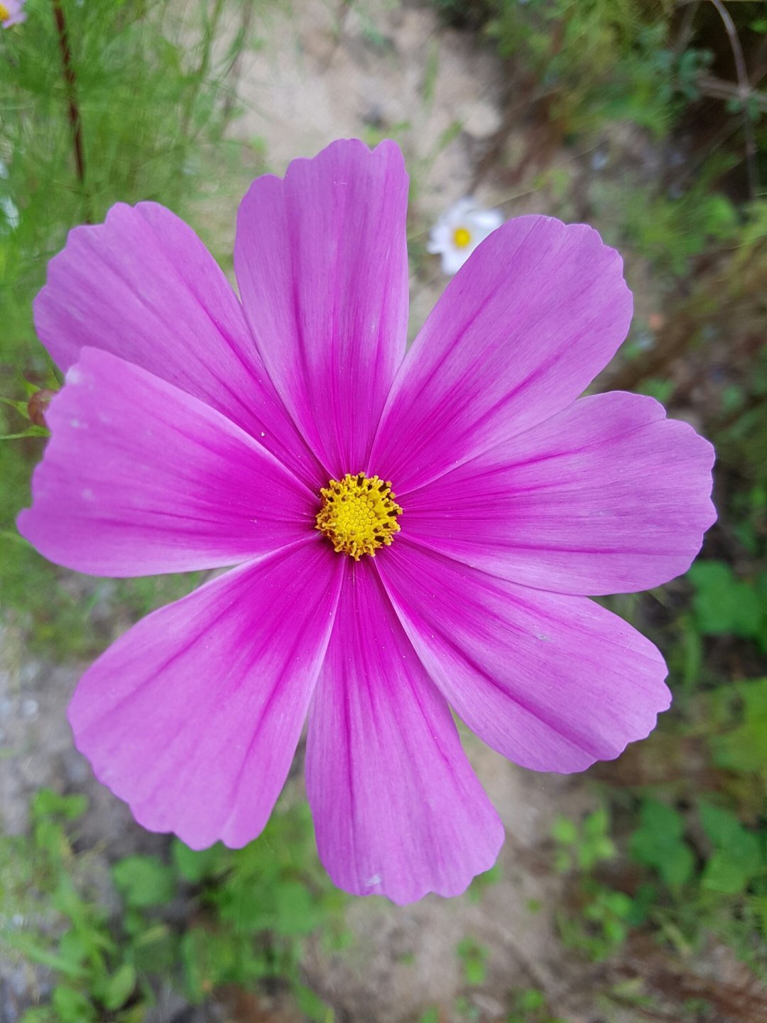 길가에 하얀 웃음을 건네는 코스모스를 찍었다