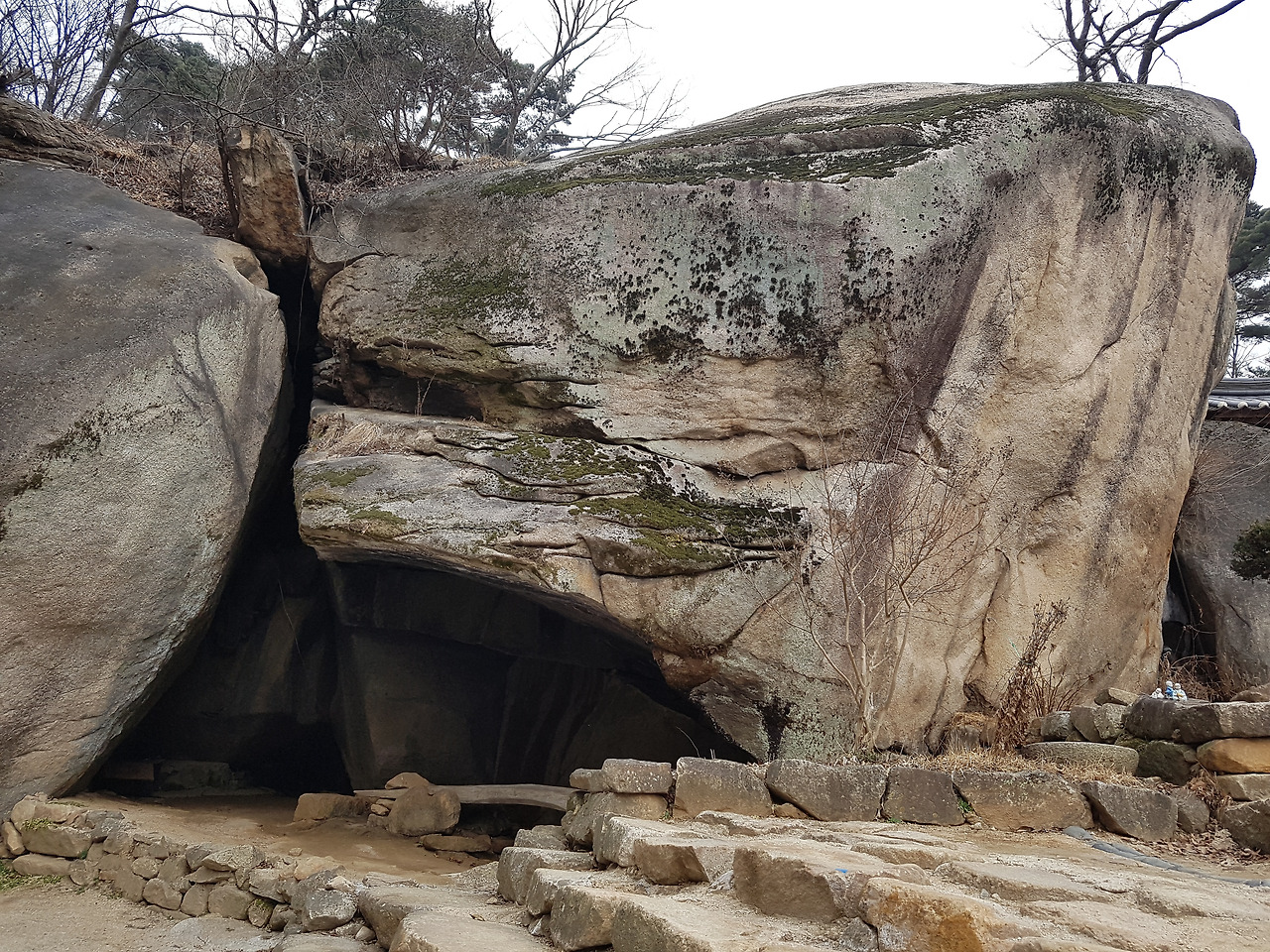 오랜 세월과 바위의 인연을 사이에 두고