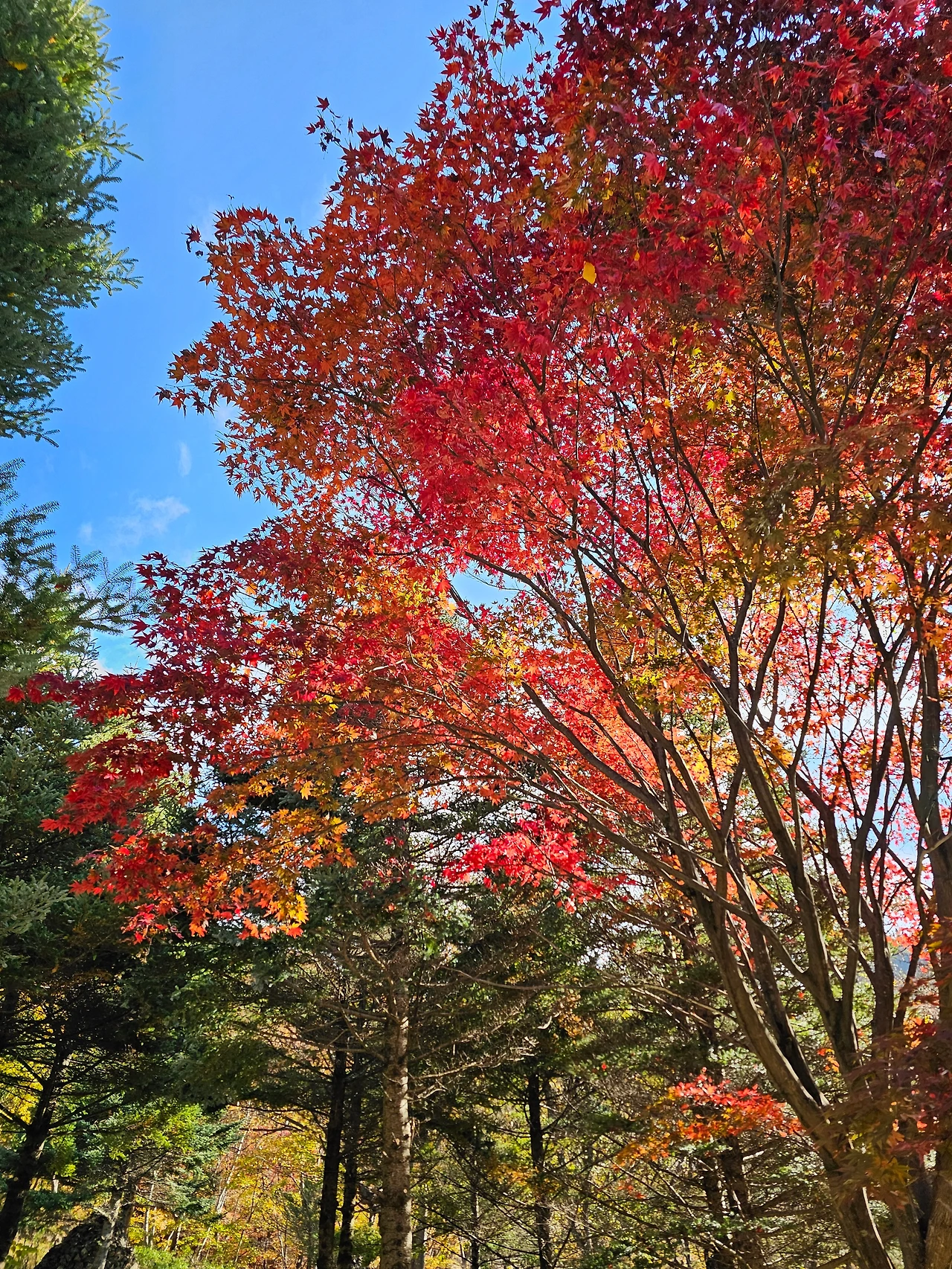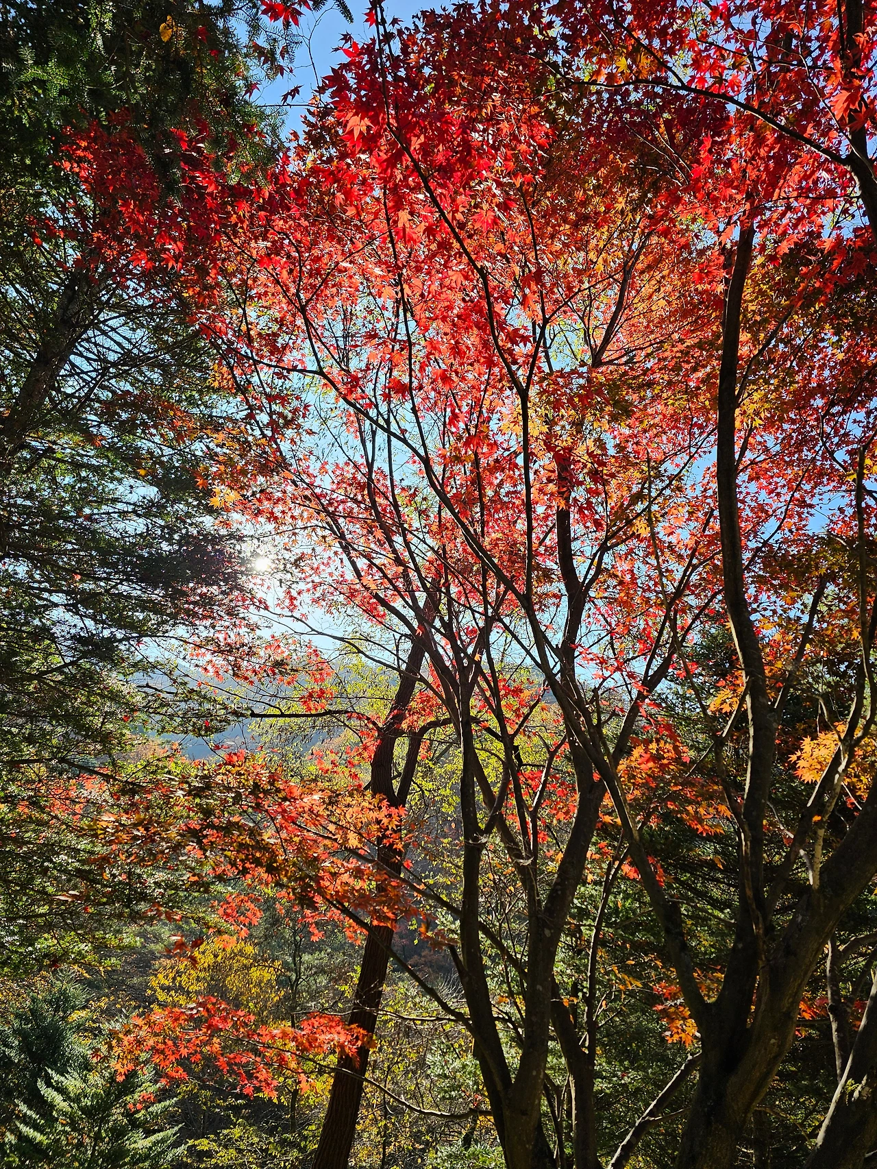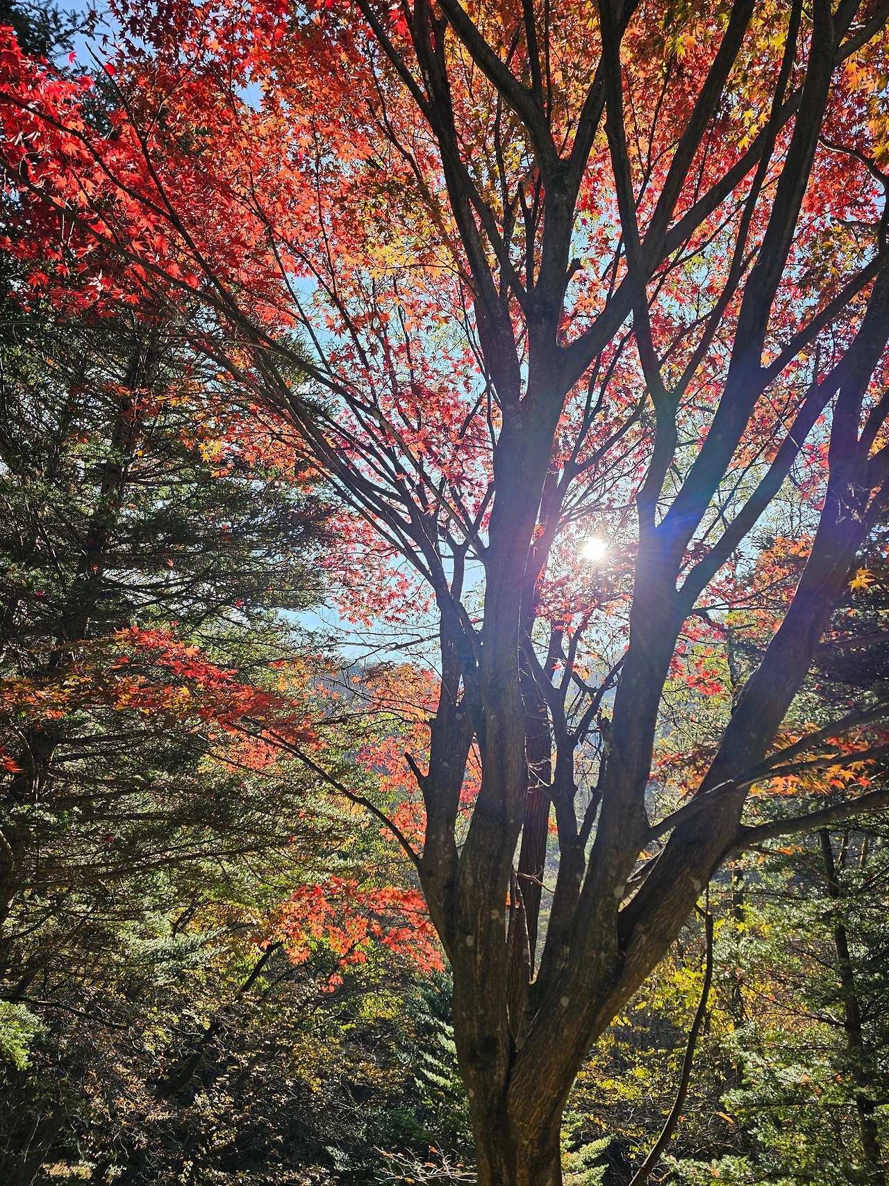 마치 단풍이 햇살에
