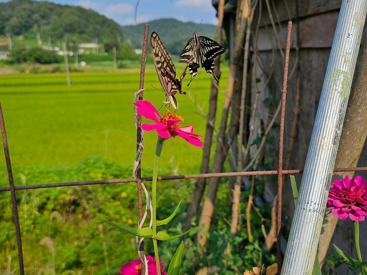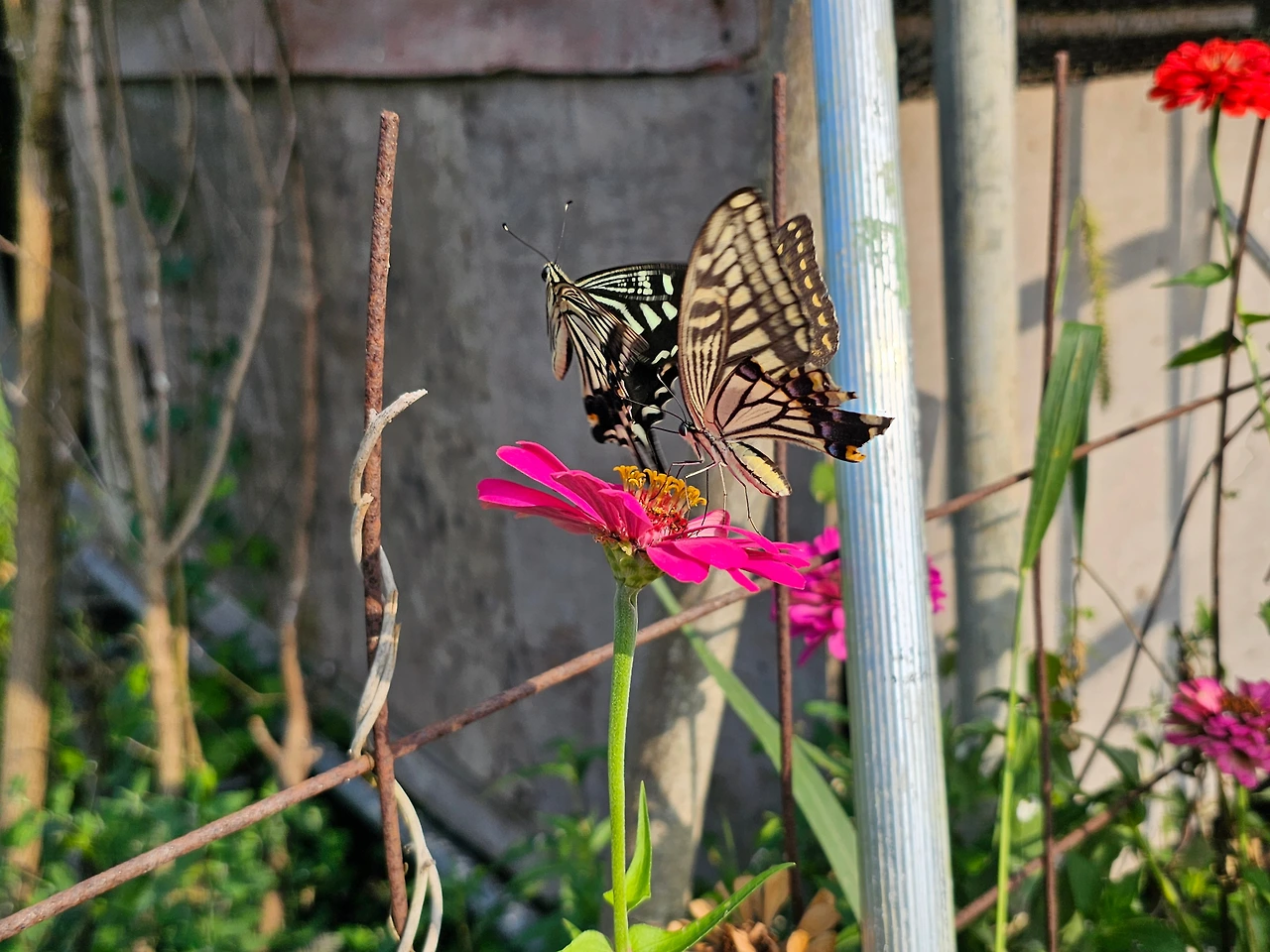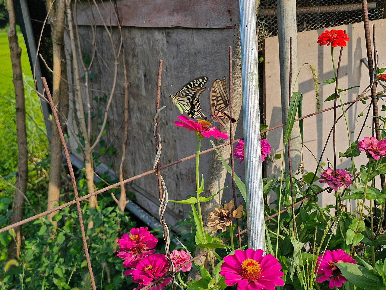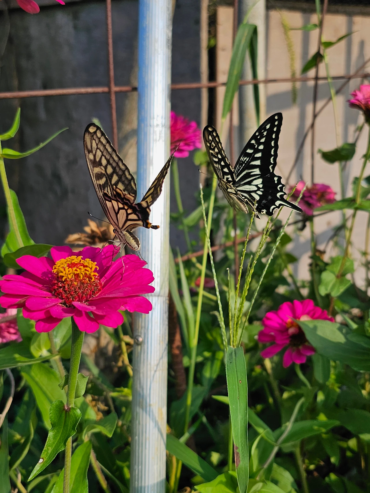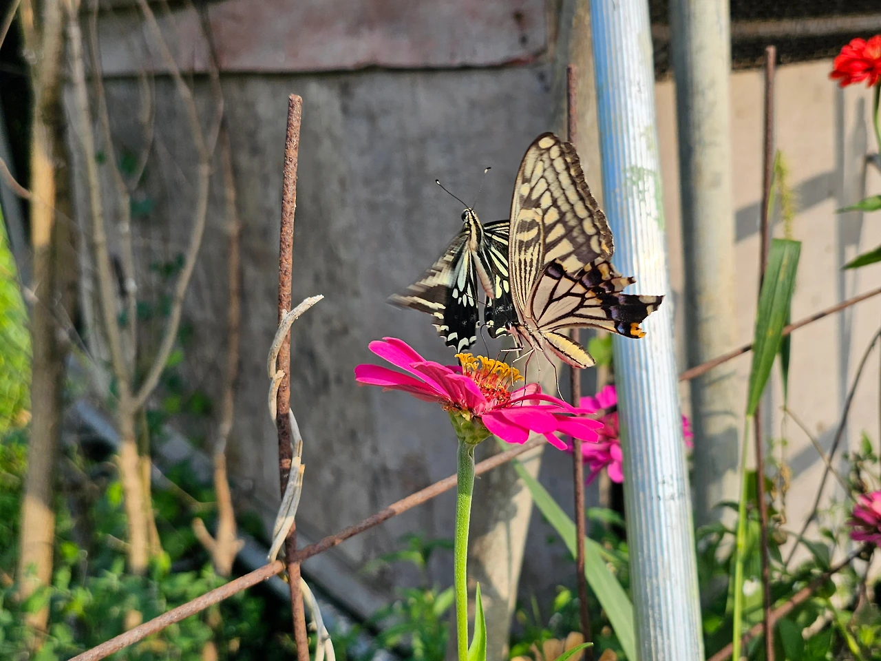 - 백일홍 꽃 위에 노니는 호랑나비 한쌍