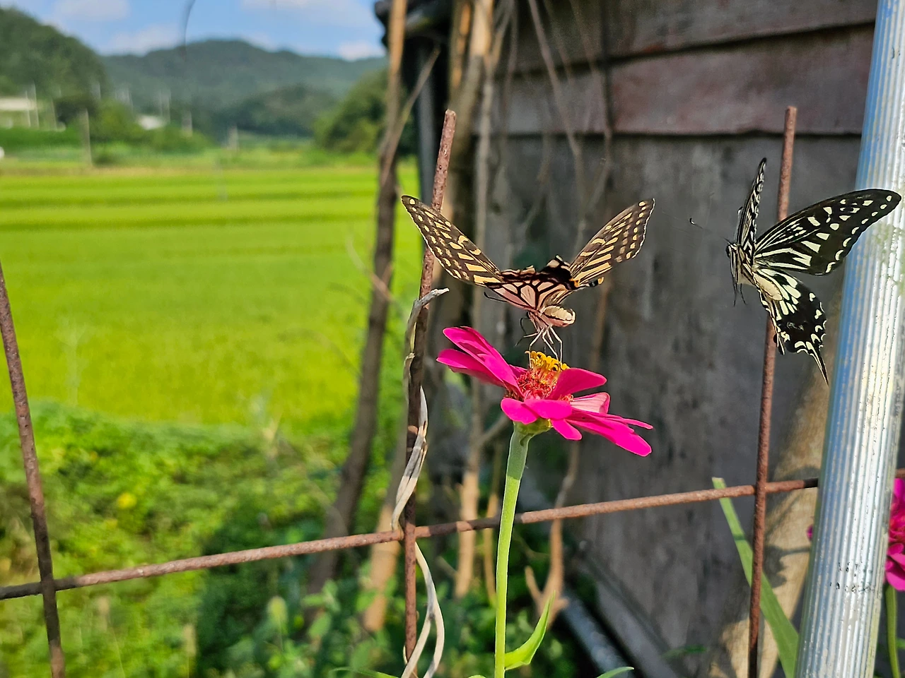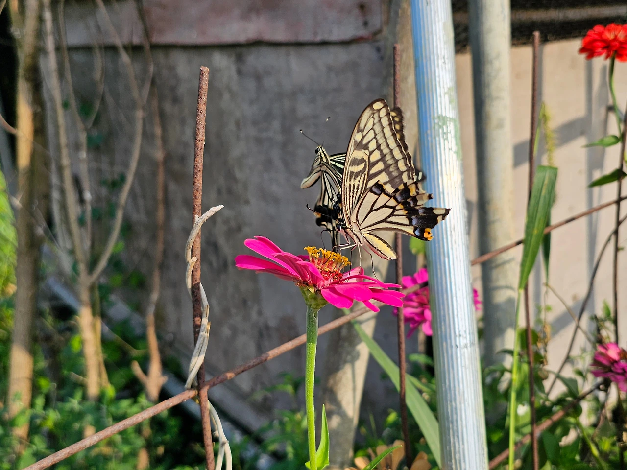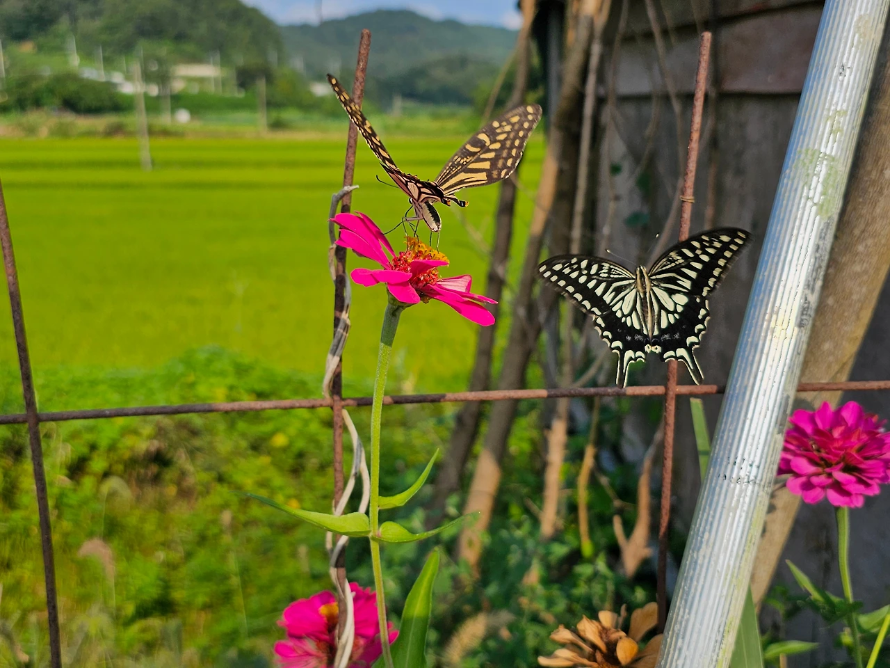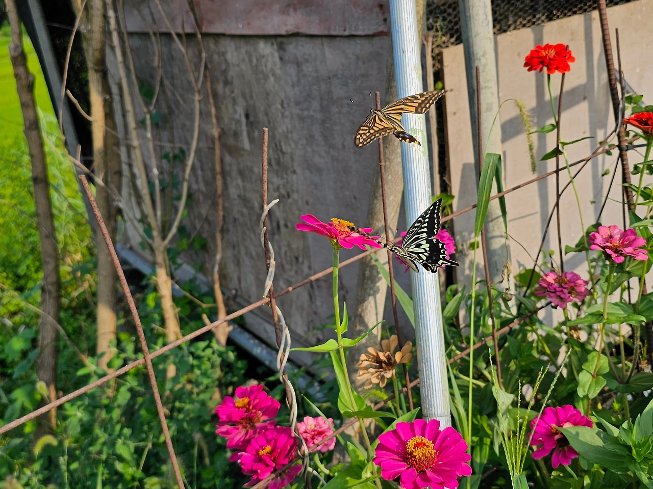 - 백일홍 꽃 위에 노니는 호랑나비 한쌍