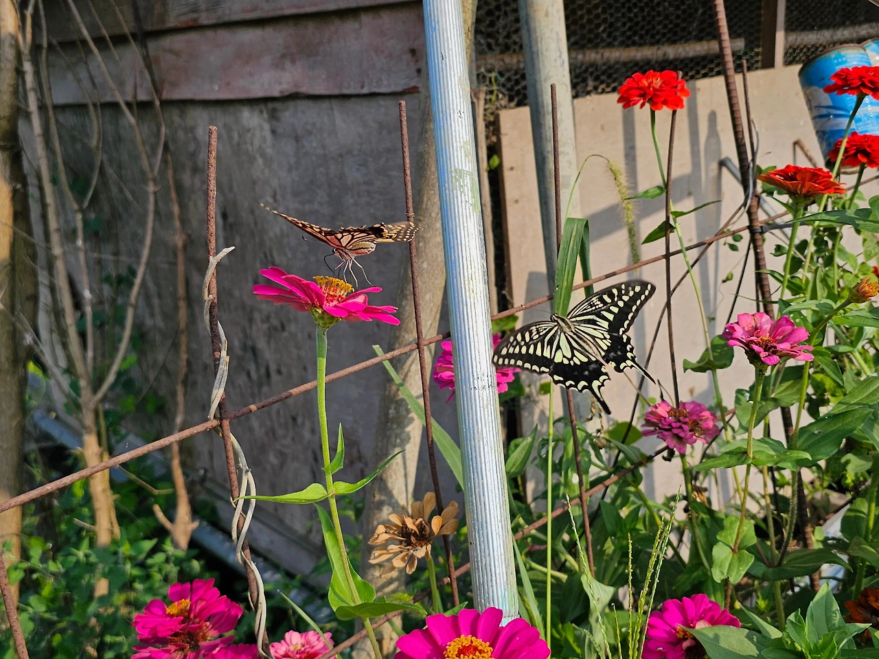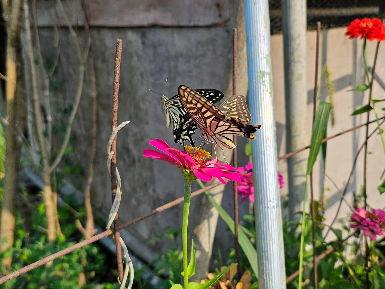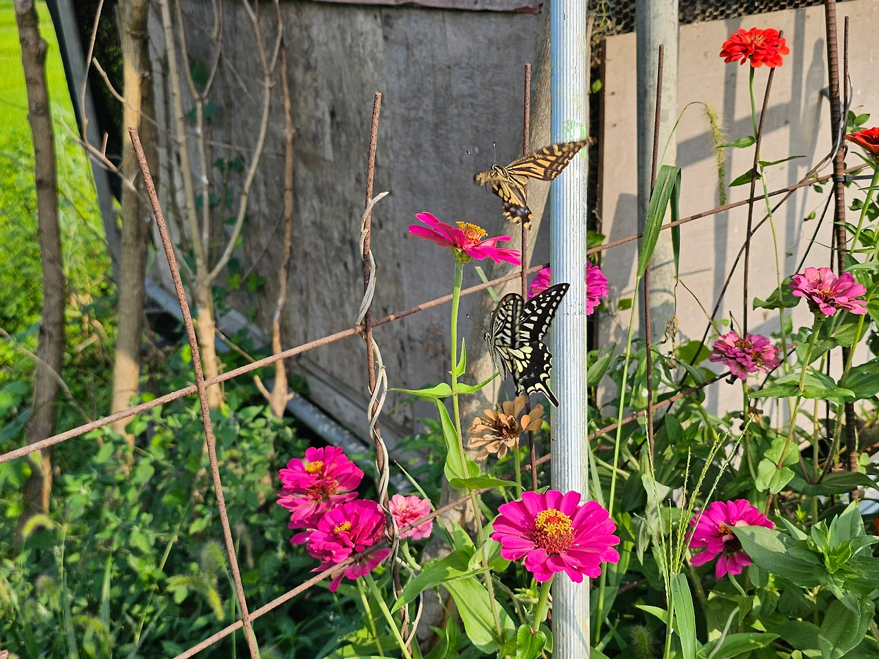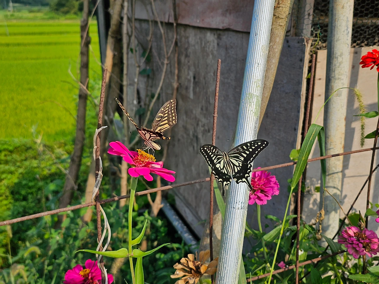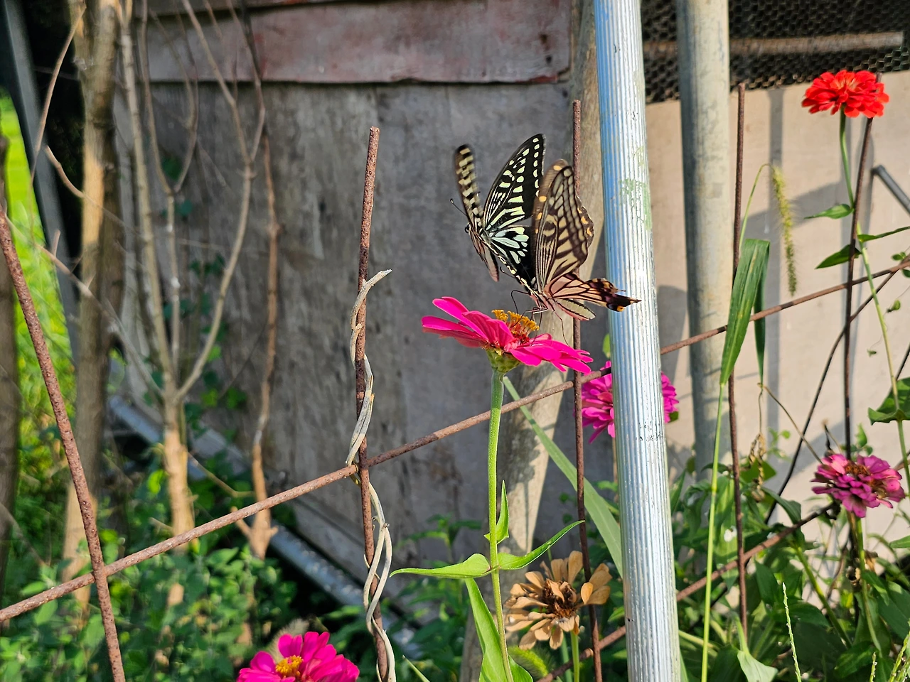 - 백일홍 꽃 위에 노니는 호랑나비 한쌍