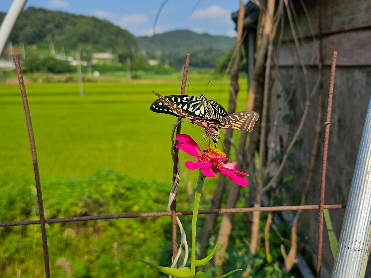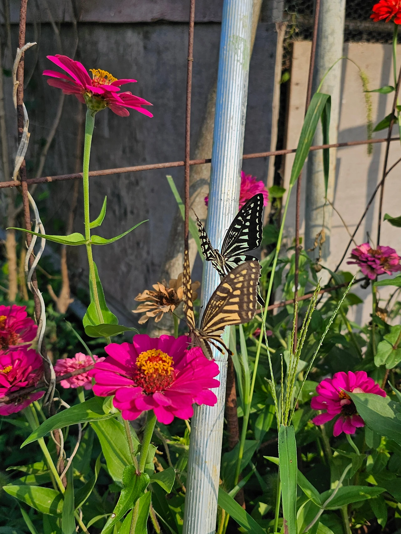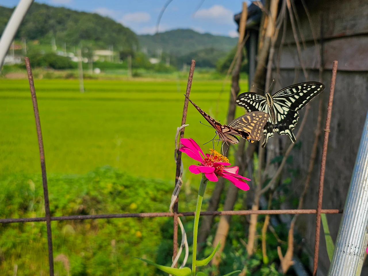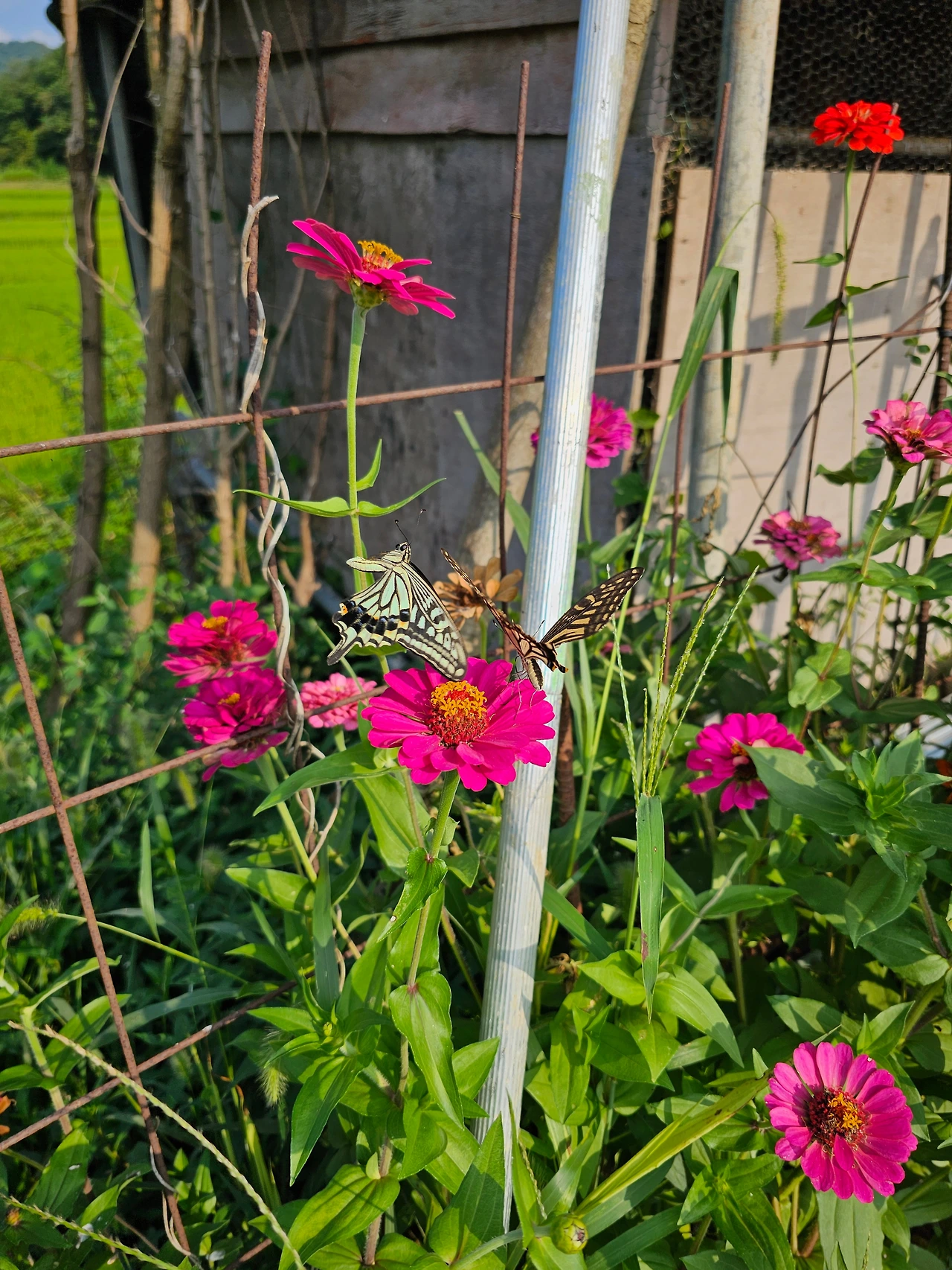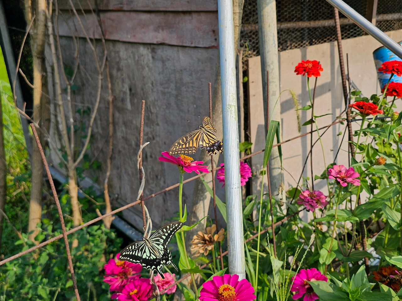 - 백일홍 꽃 위에 노니는 호랑나비 한쌍