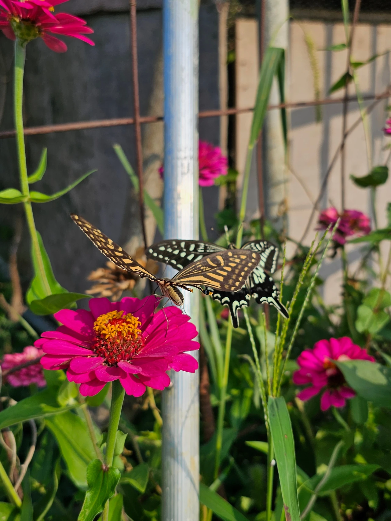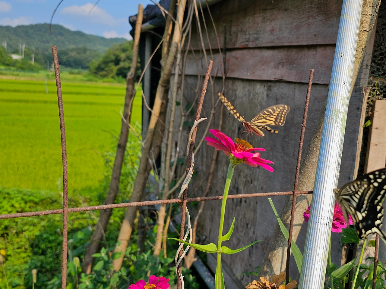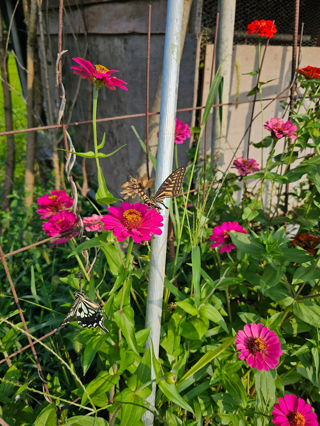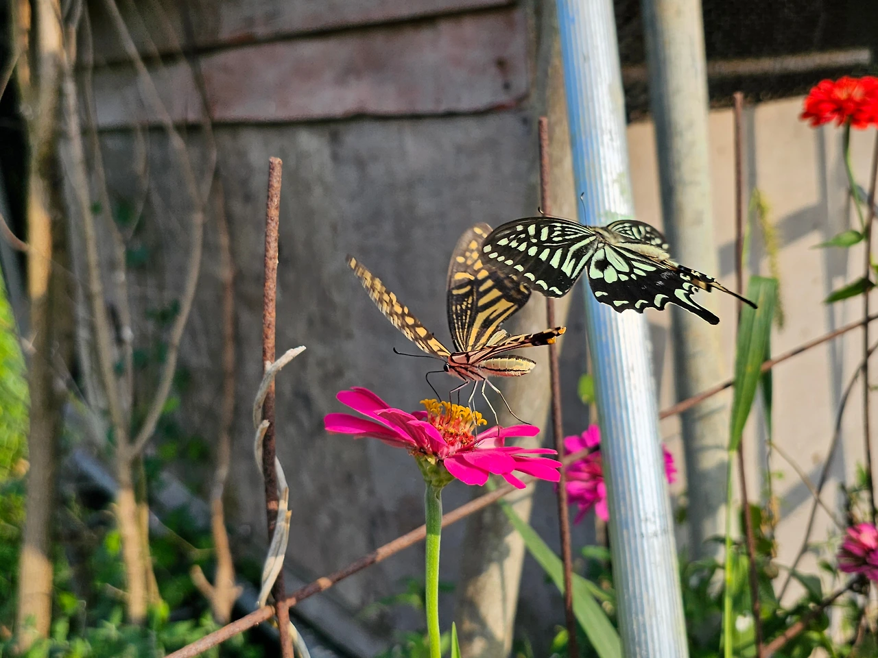 - 백일홍 꽃 위에 노니는 호랑나비 한쌍
