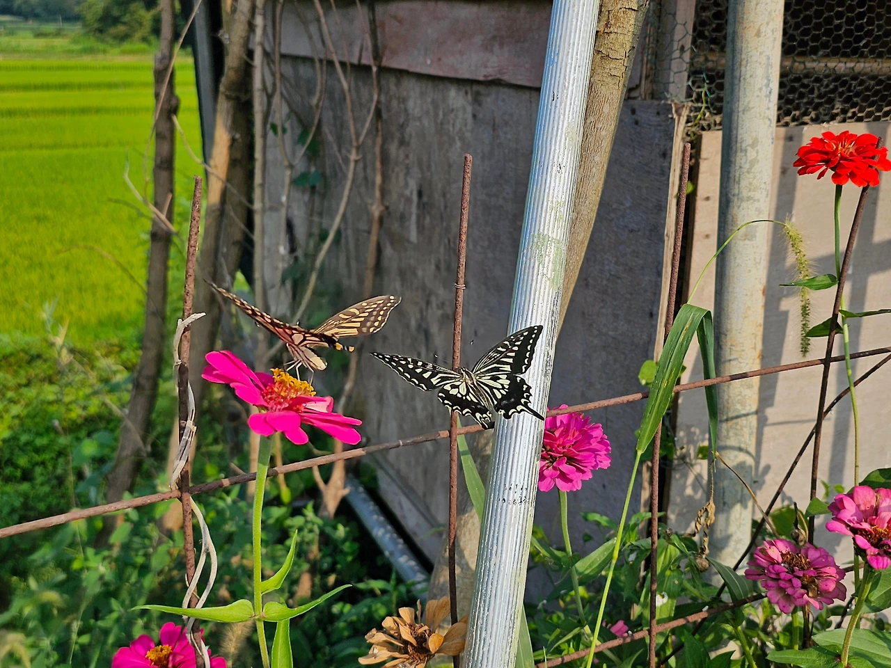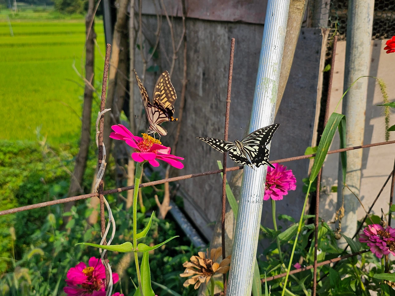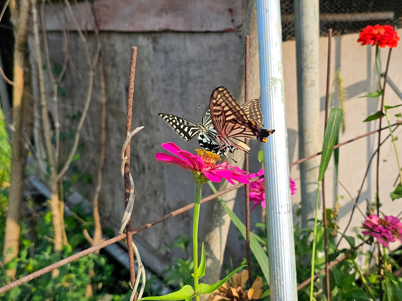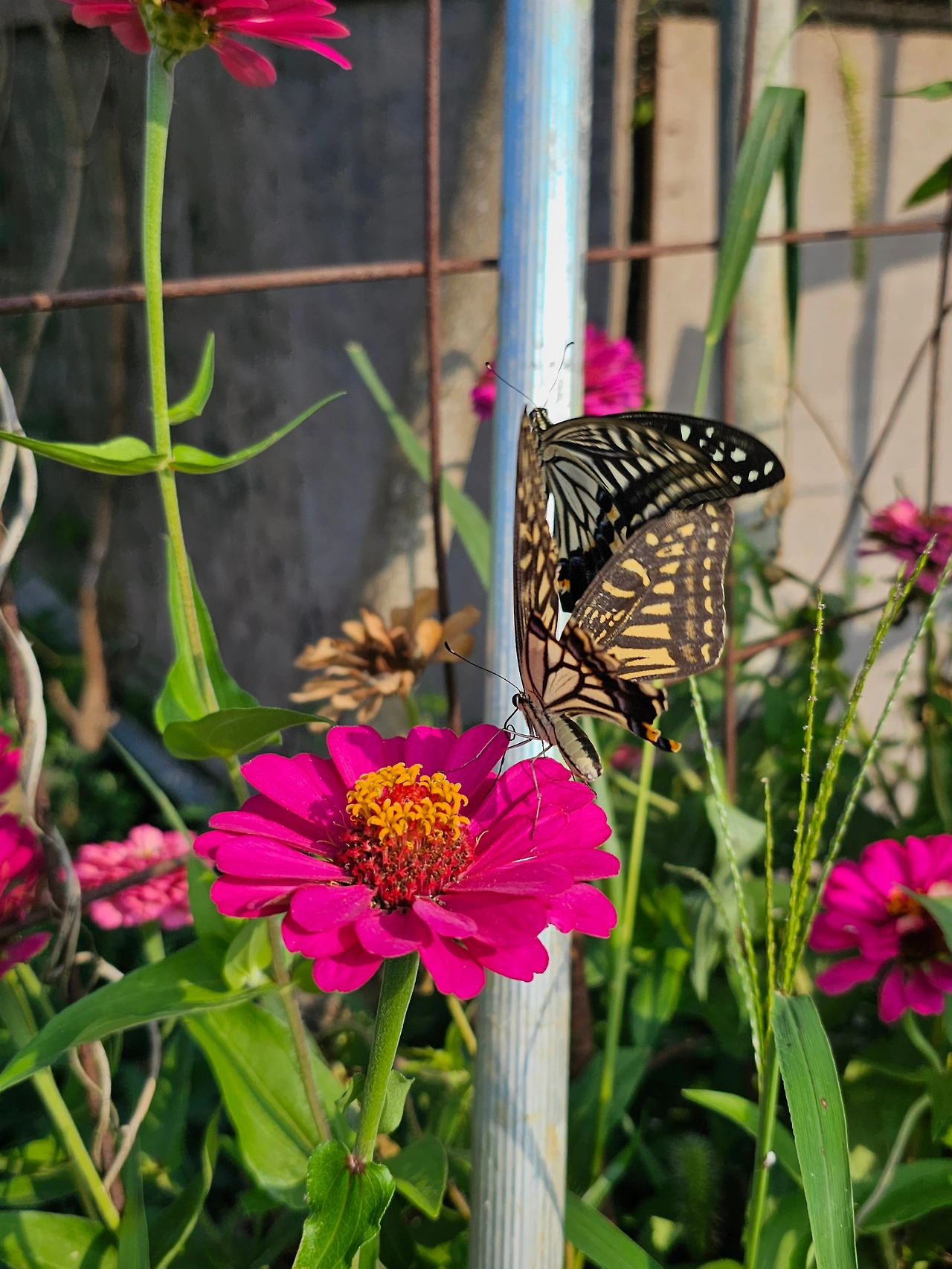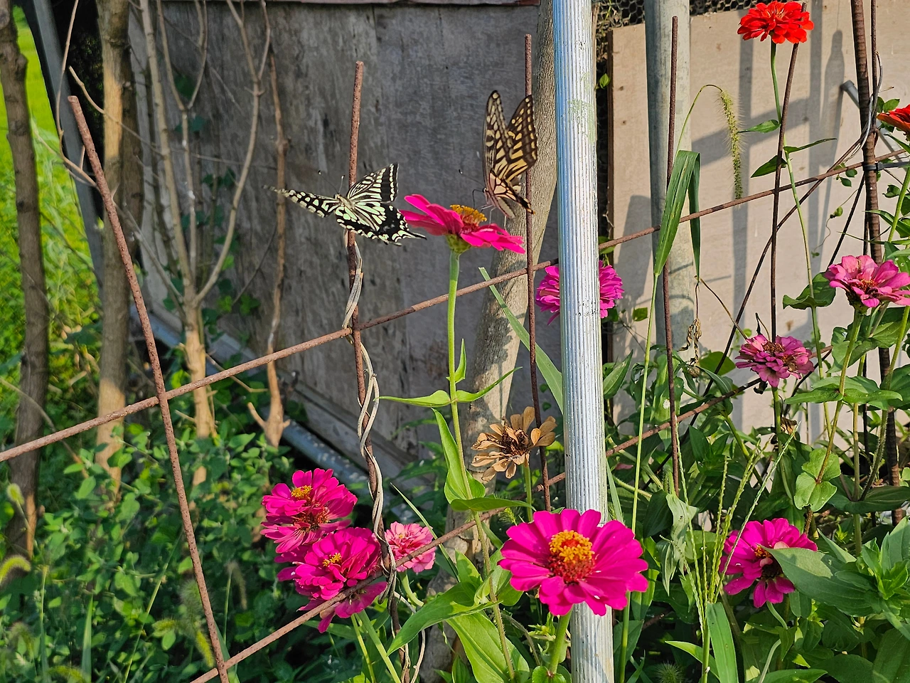 - 백일홍 꽃 위에 노니는 호랑나비 한쌍