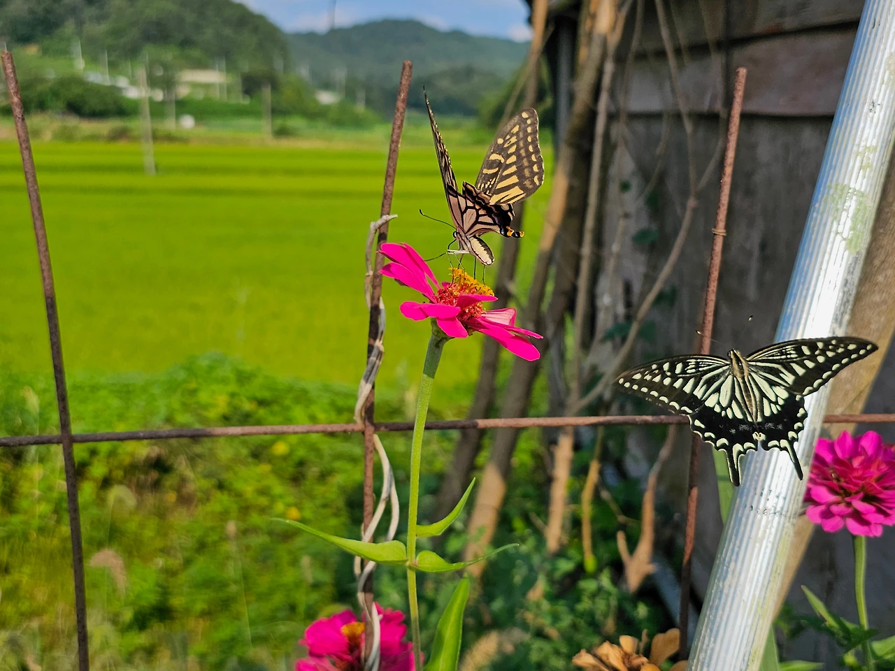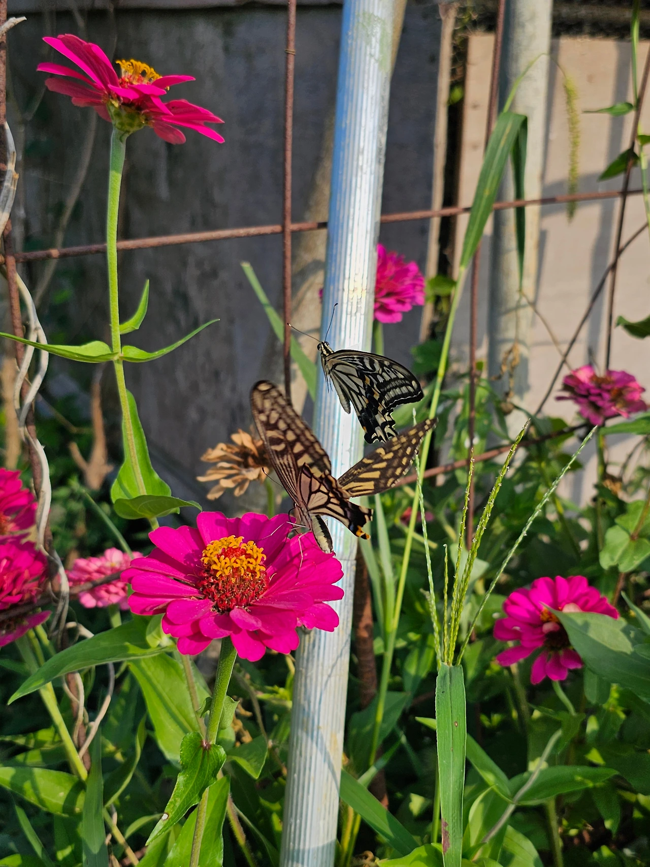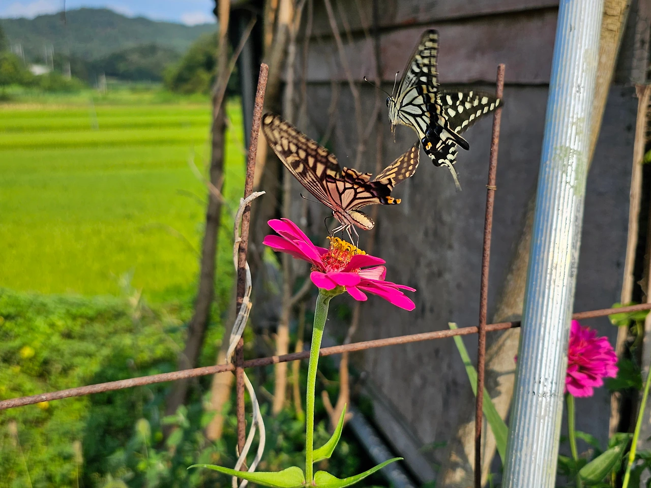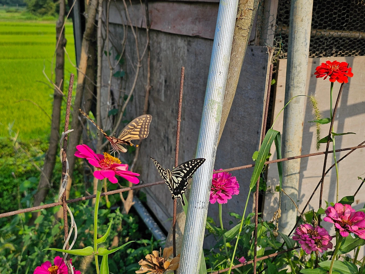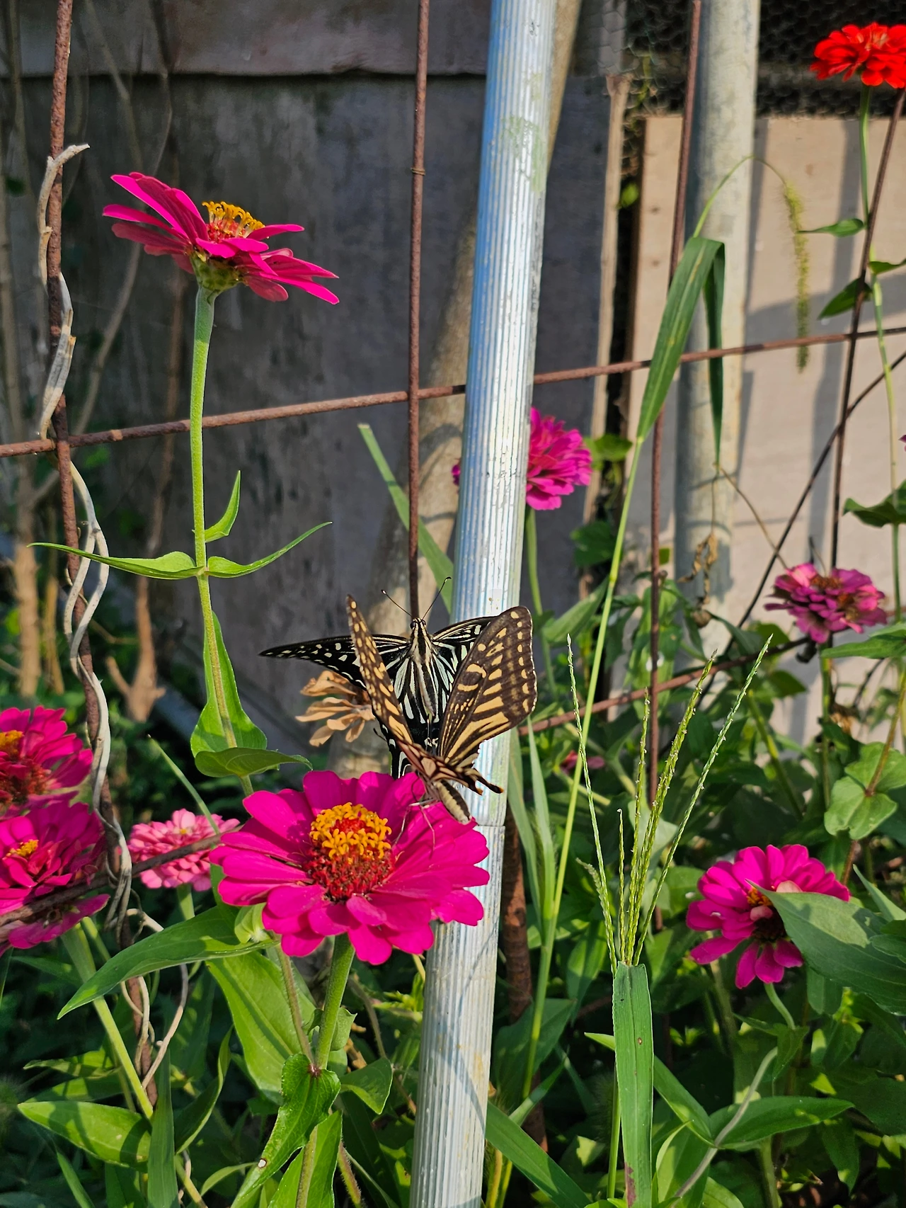 - 백일홍 꽃 위에 노니는 호랑나비 한쌍