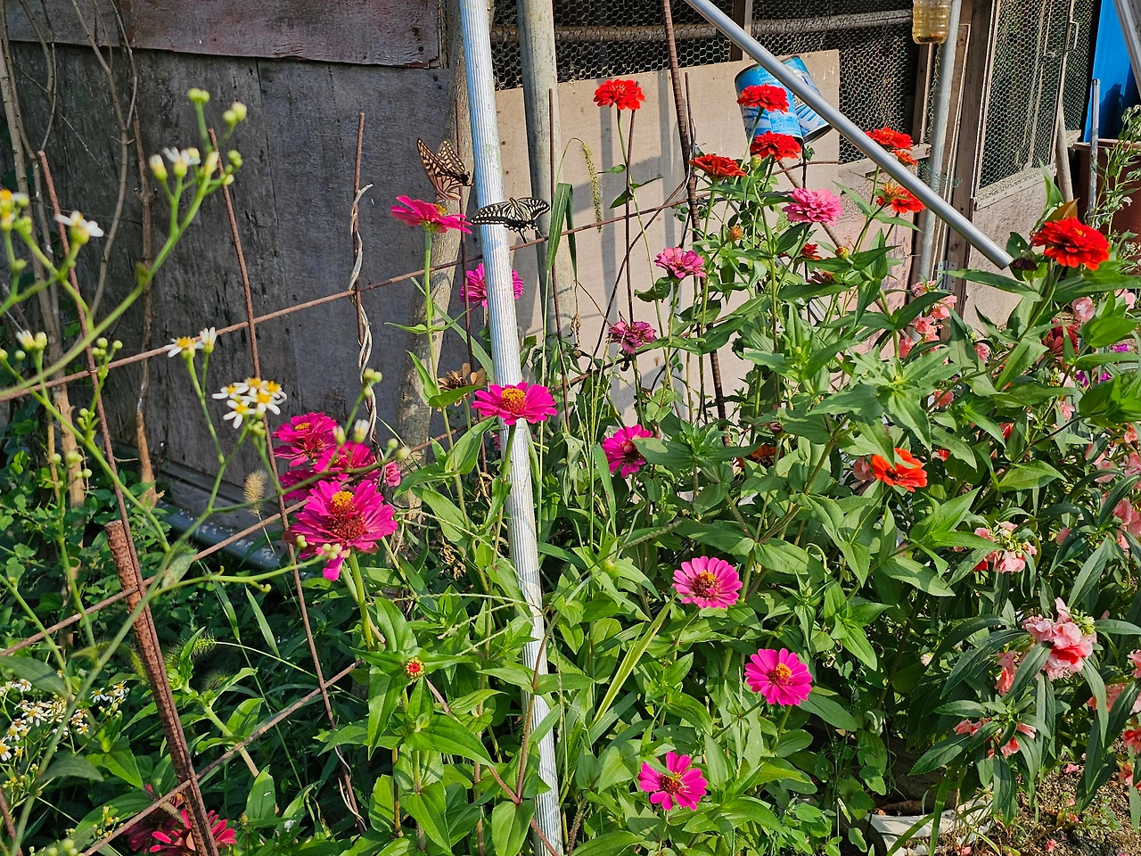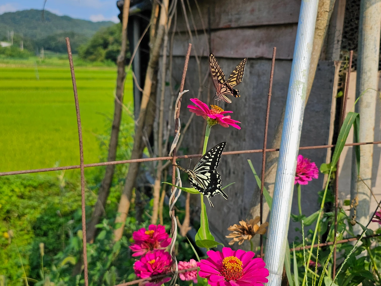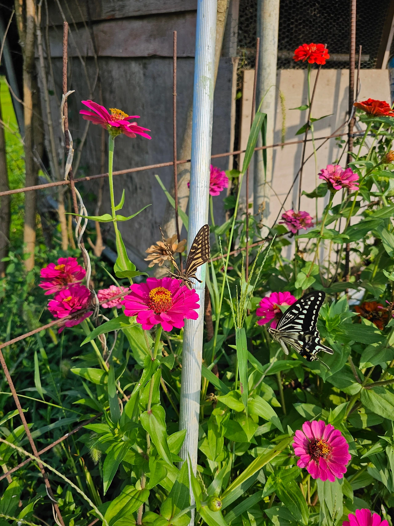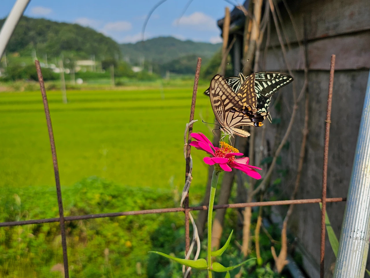 - 백일홍 꽃 위에 노니는 호랑나비 한쌍