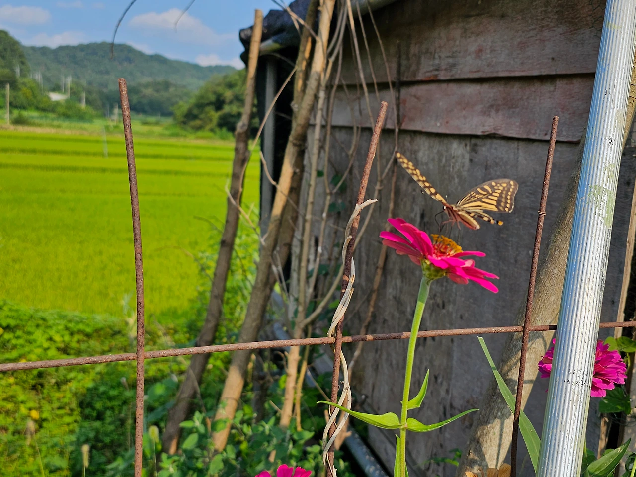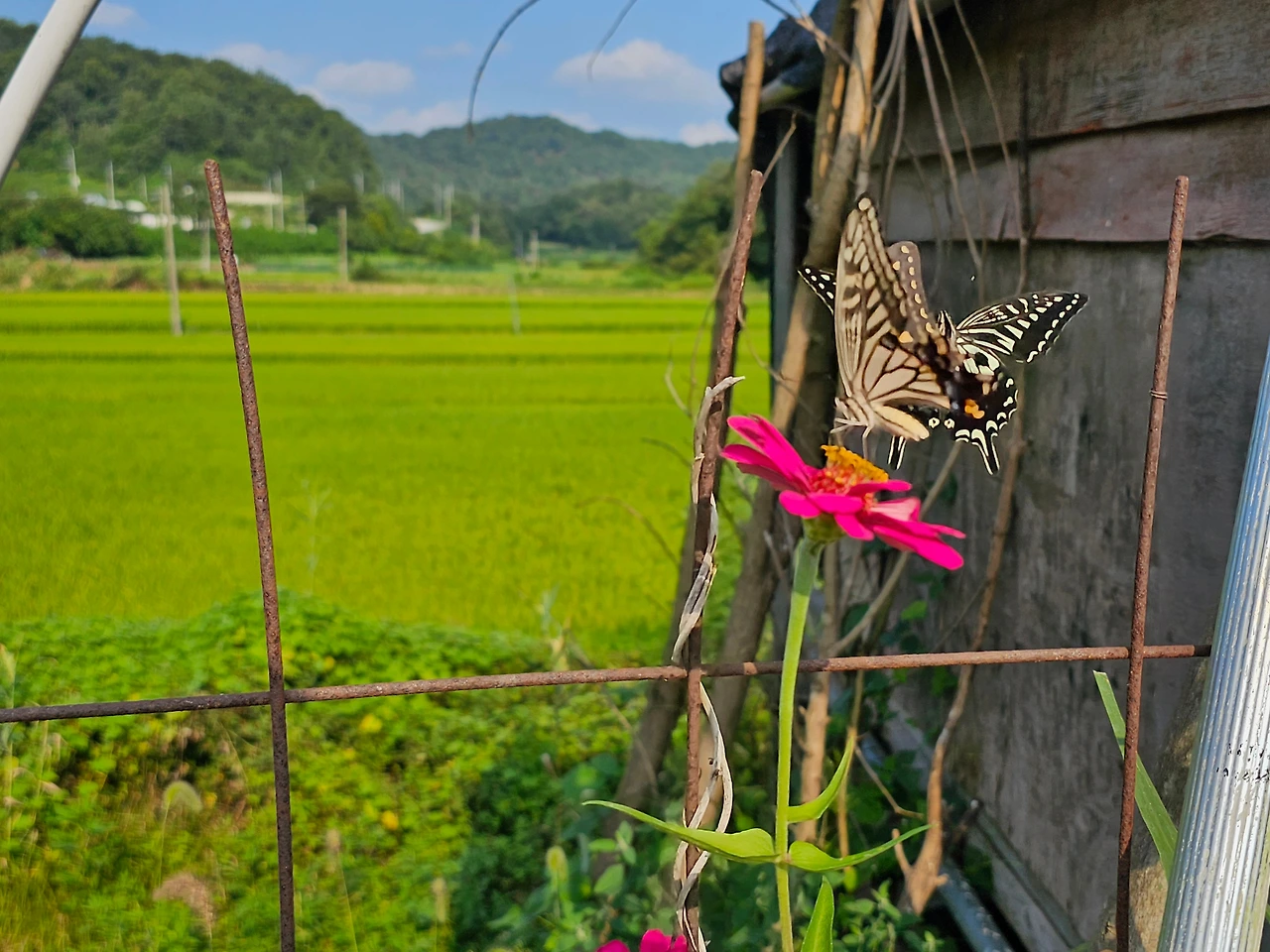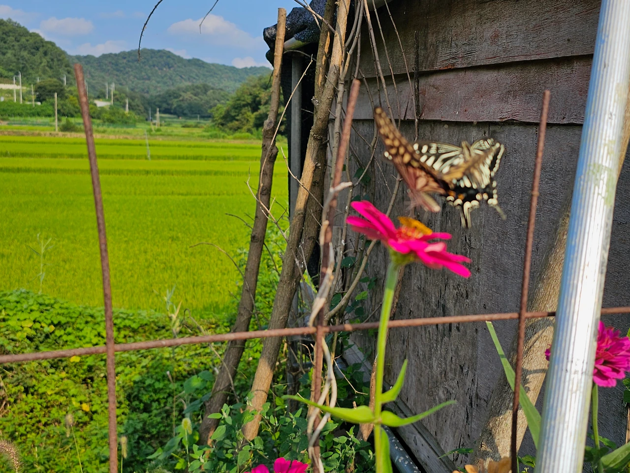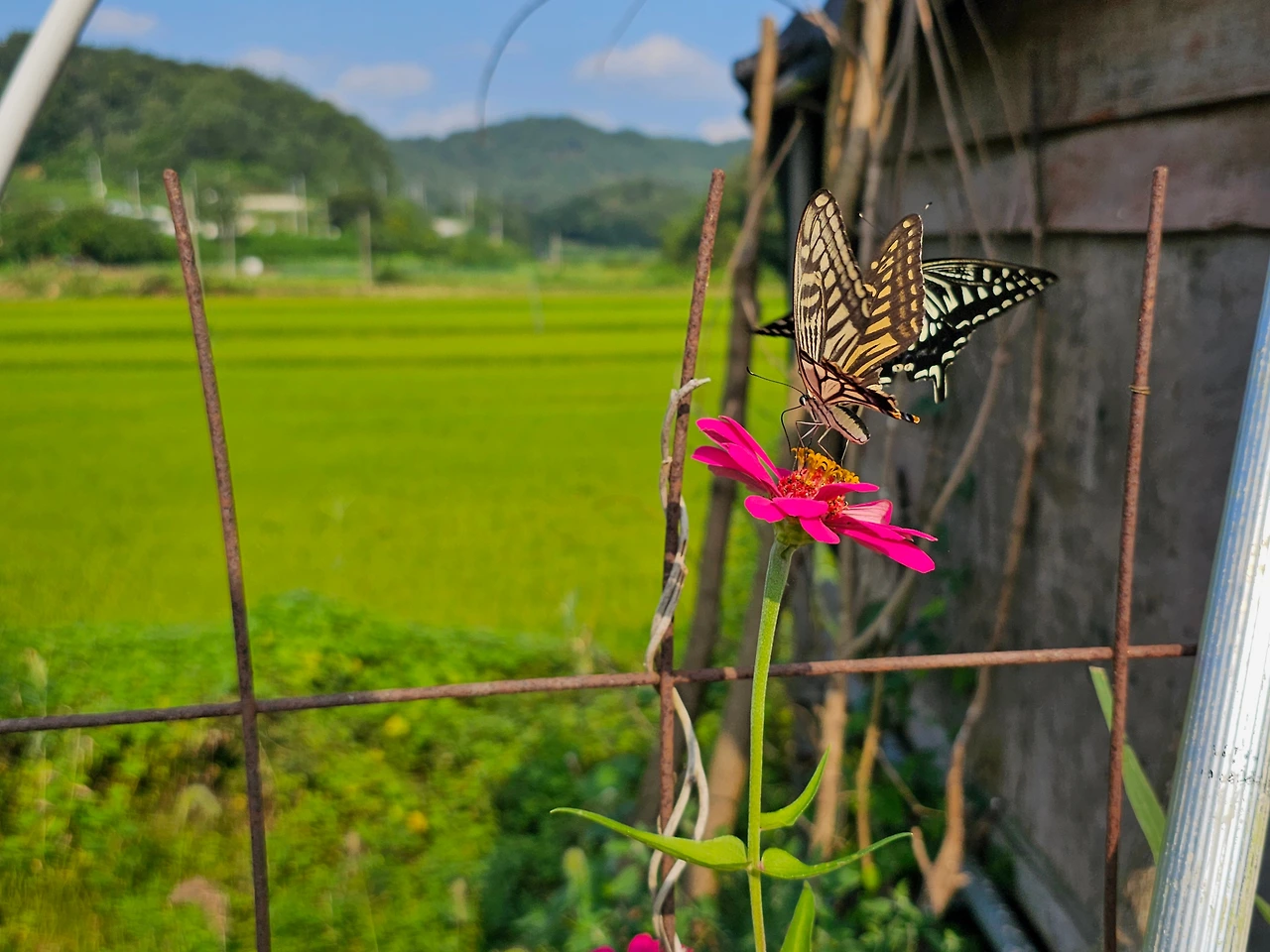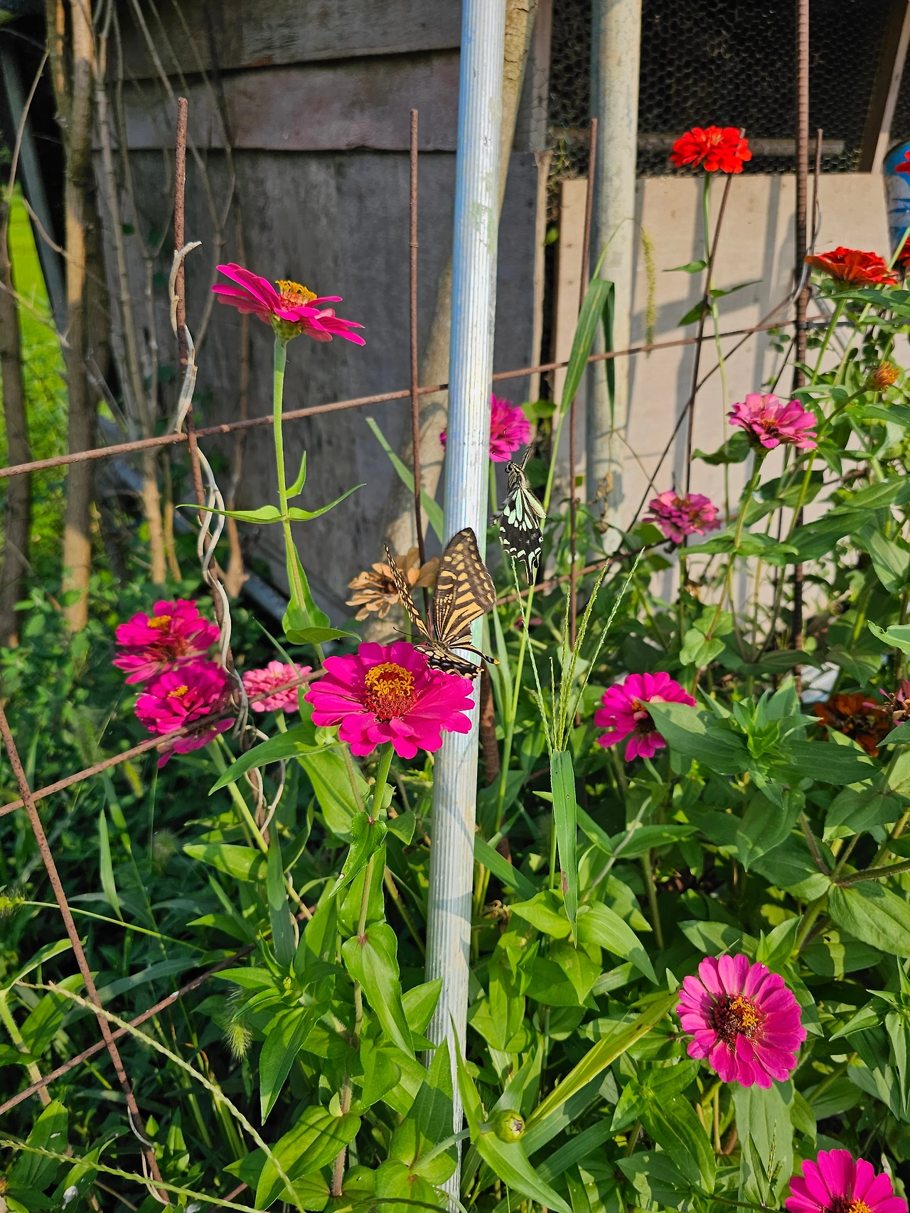 - 백일홍 꽃 위에 노니는 호랑나비 한쌍