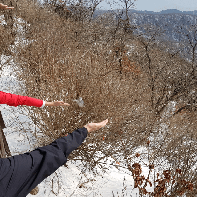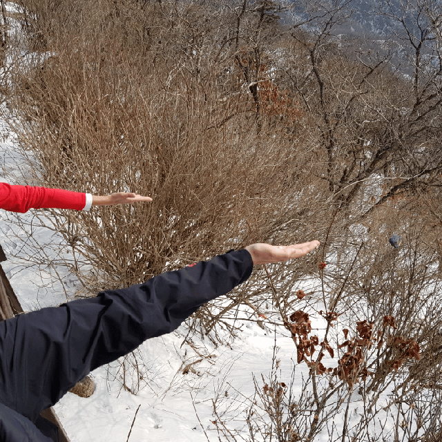 손 내민 손 먹이 쫒고