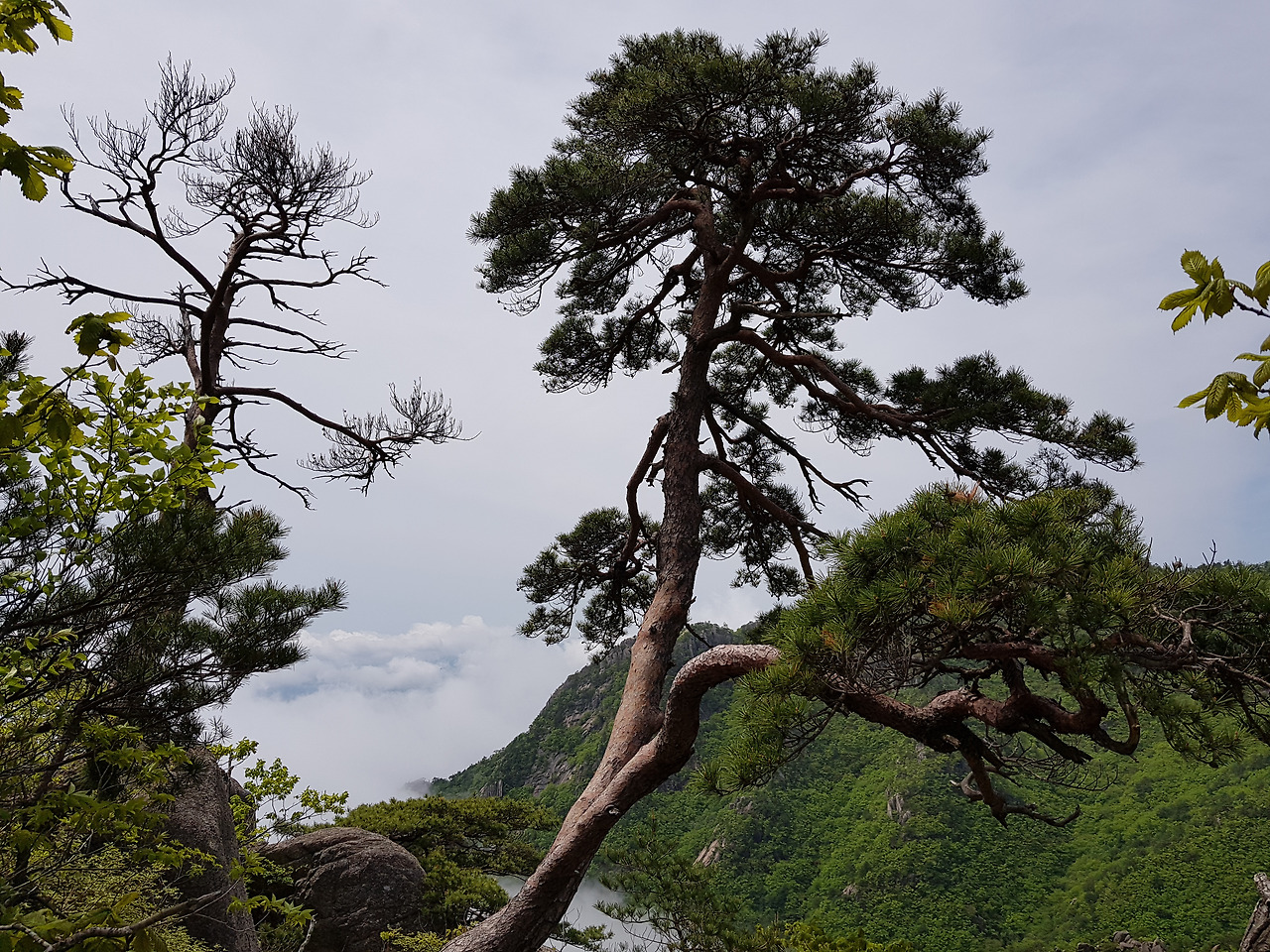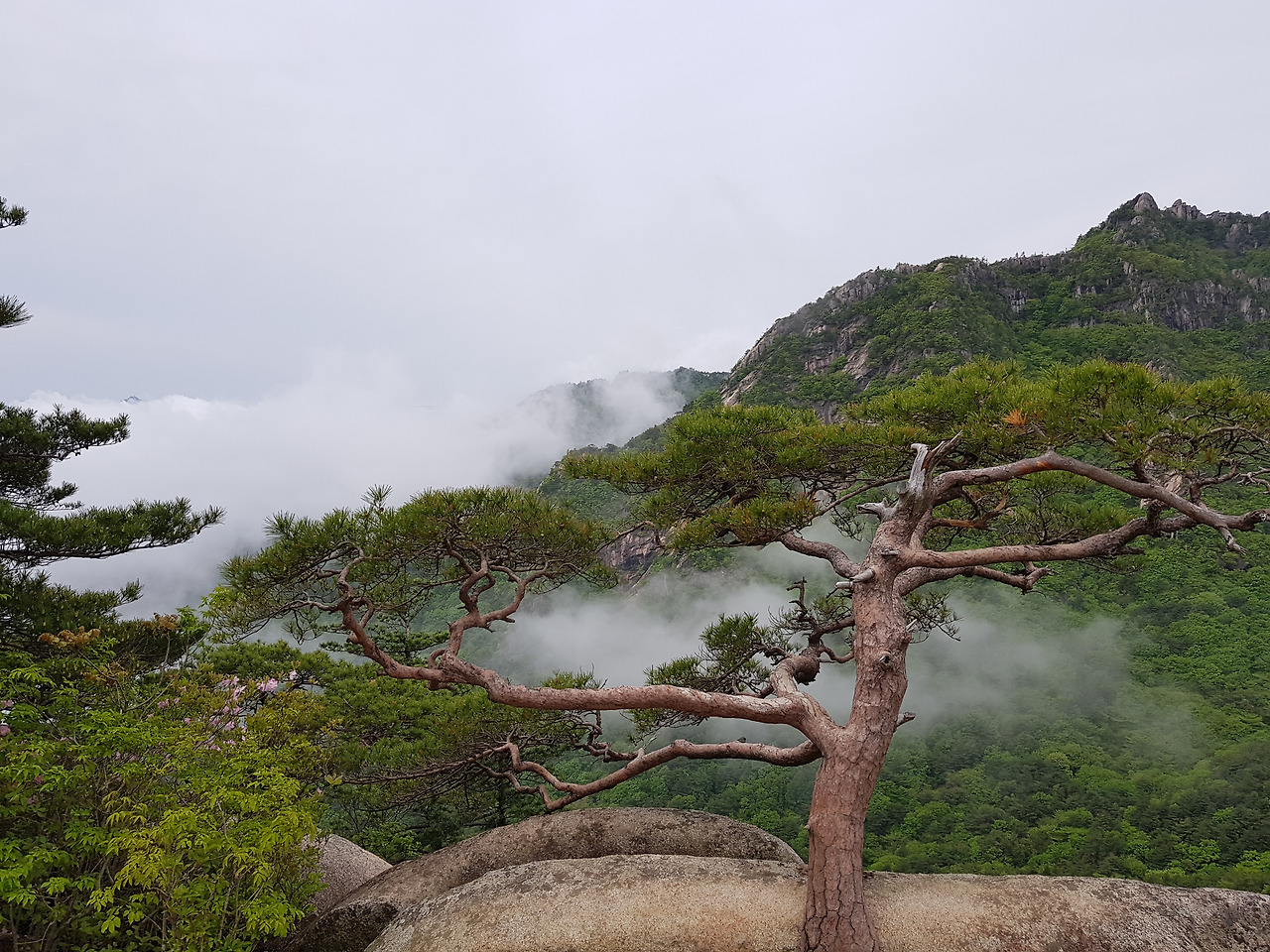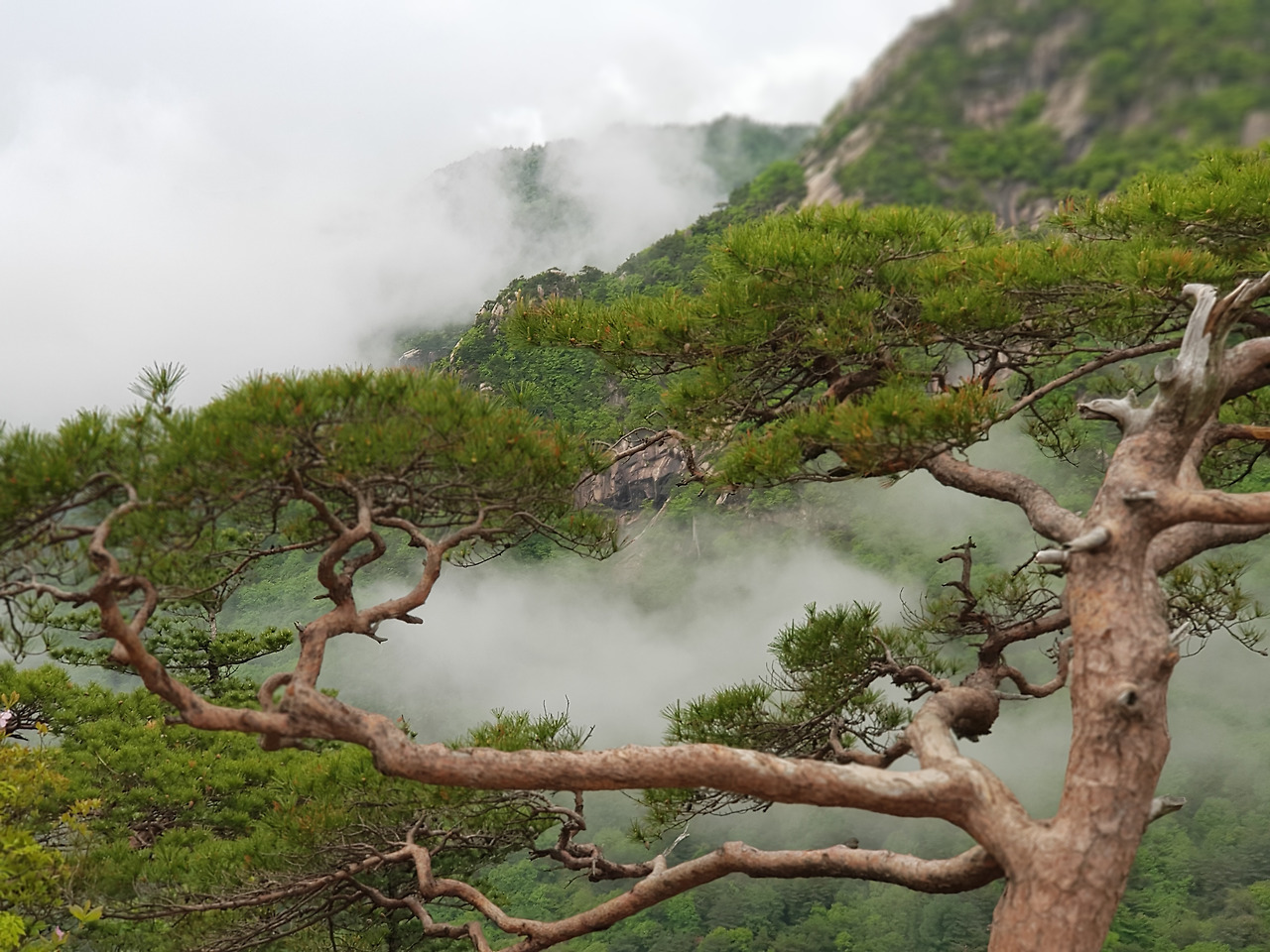 운해 흰 옷을 걸쳐 입은 낙락장송에