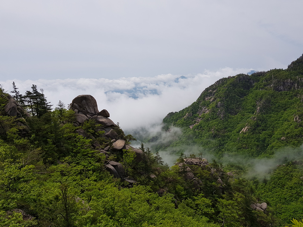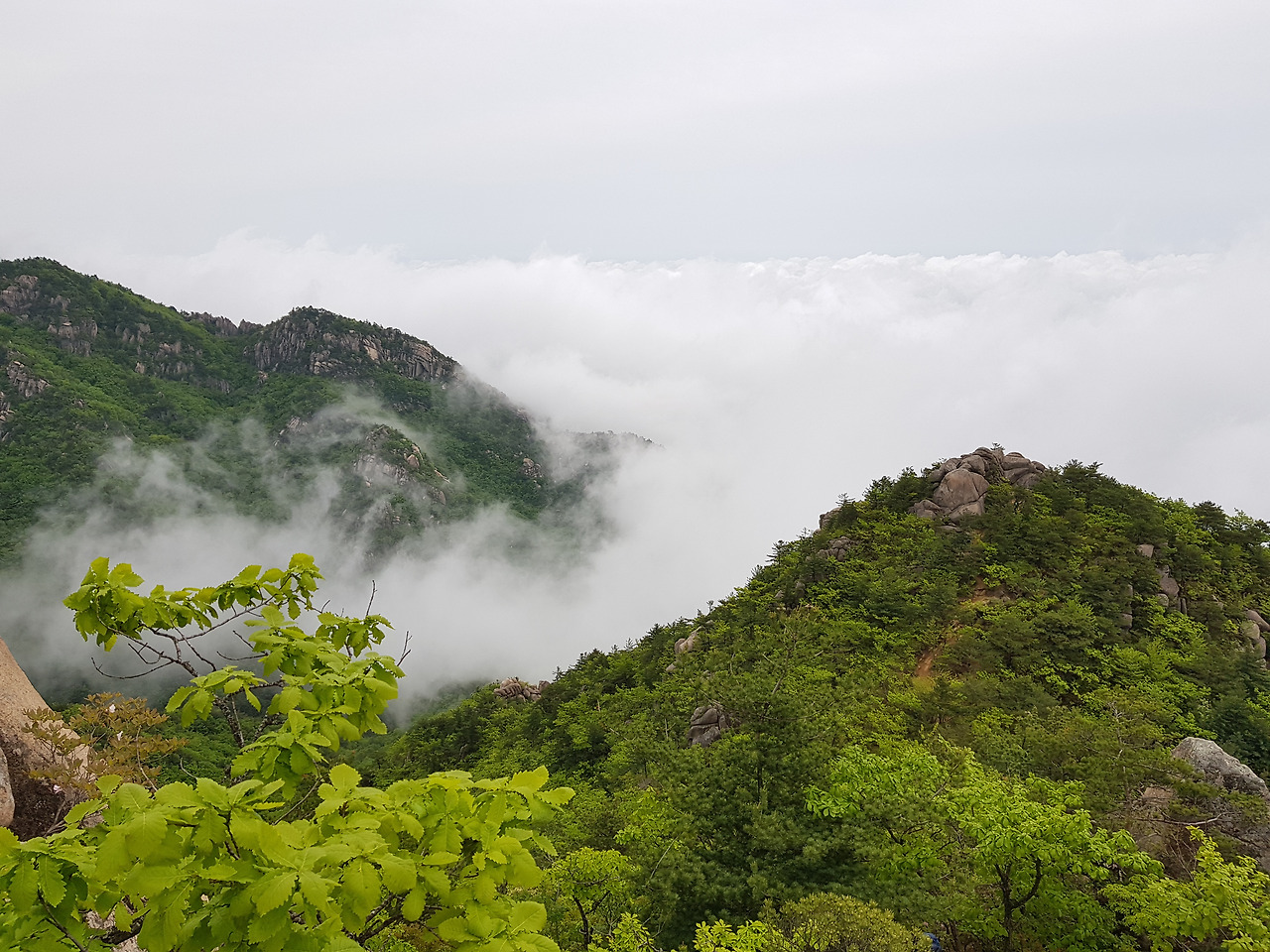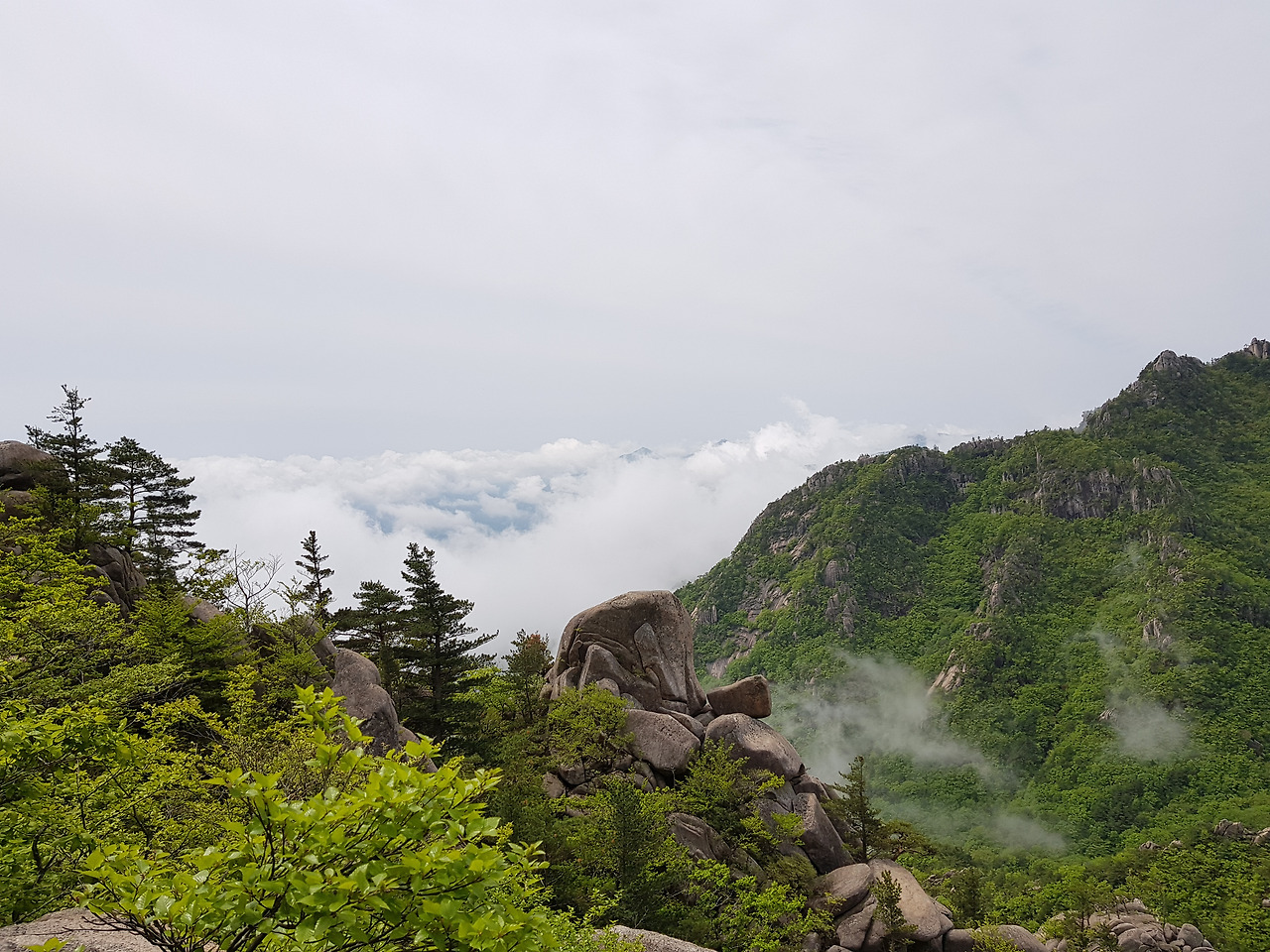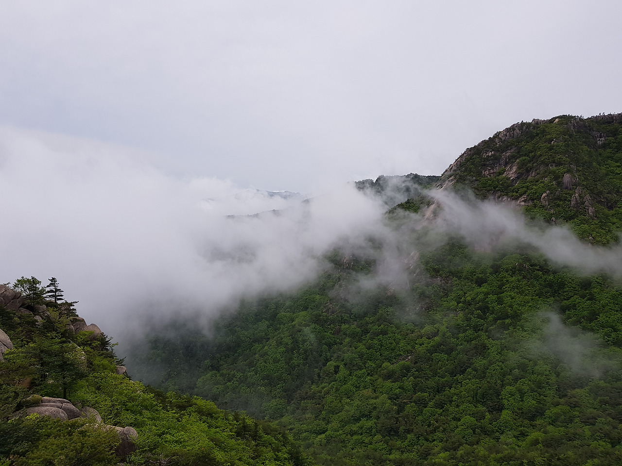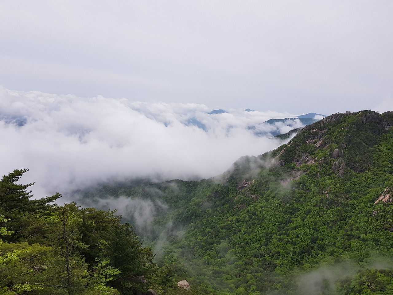 만물상에 출렁져 오는 운해의 물결에 맡기려오