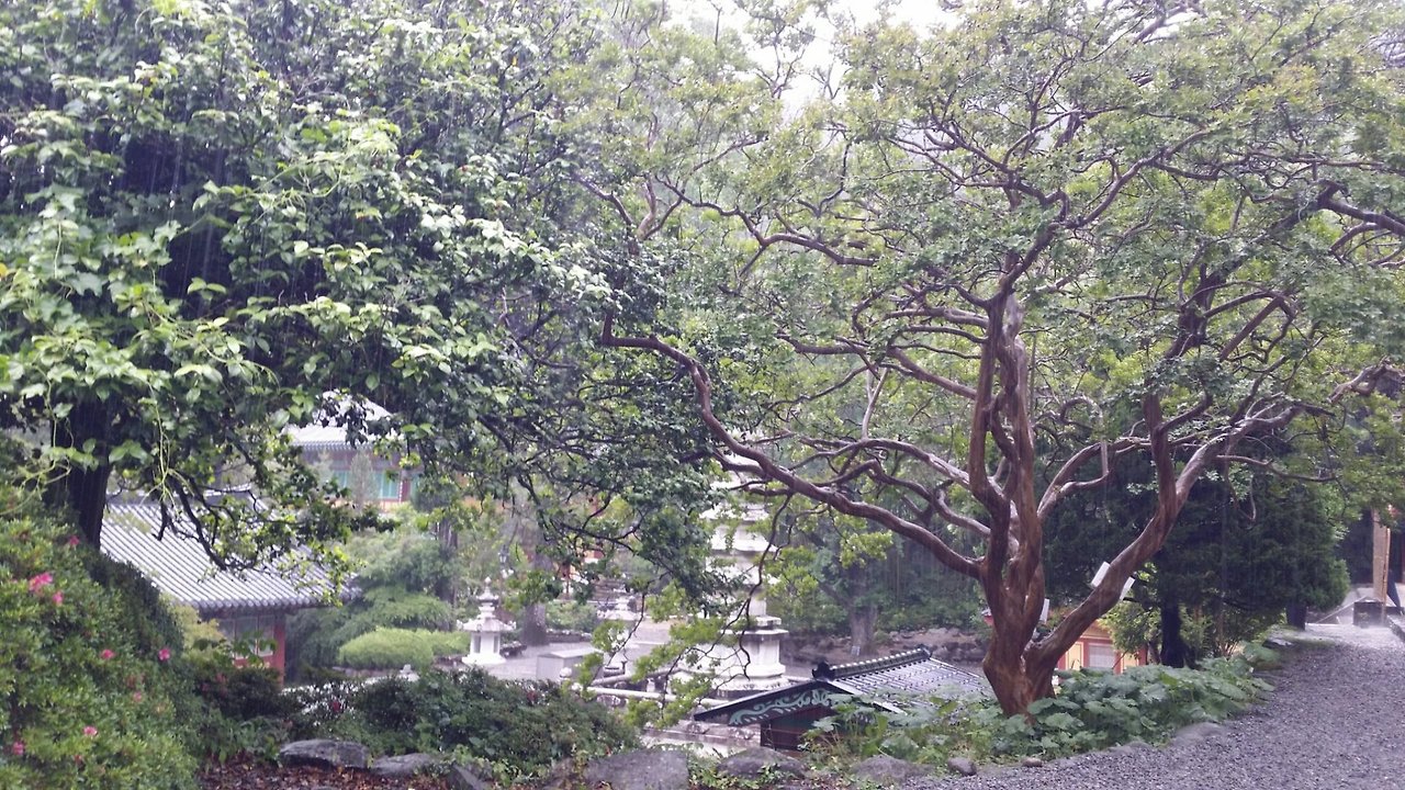 말없이 내리는 빗속을 아무 음악 소리도 없이