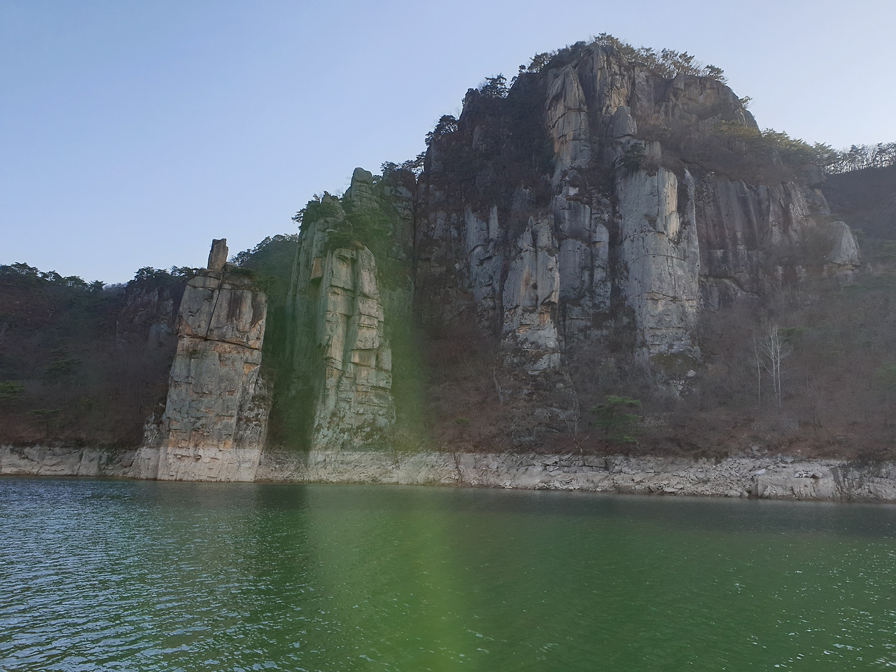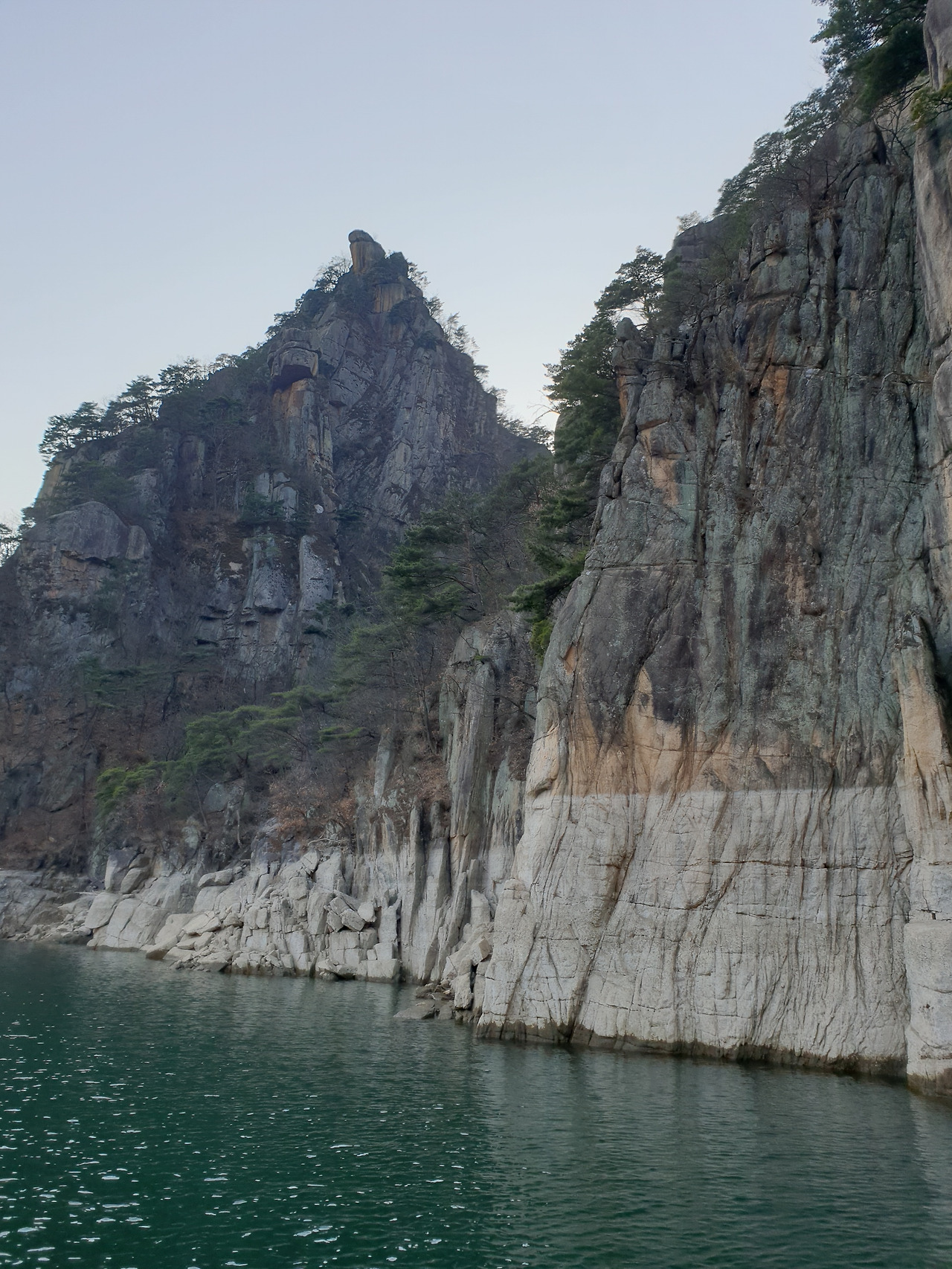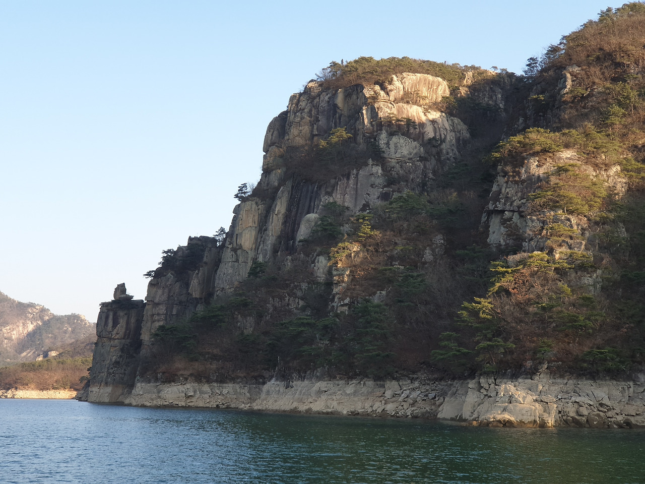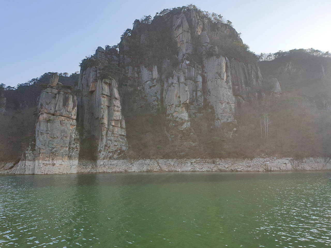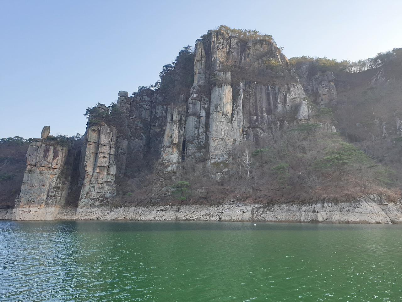 옥순봉의 빼어난 절벽 아래 뉘인
